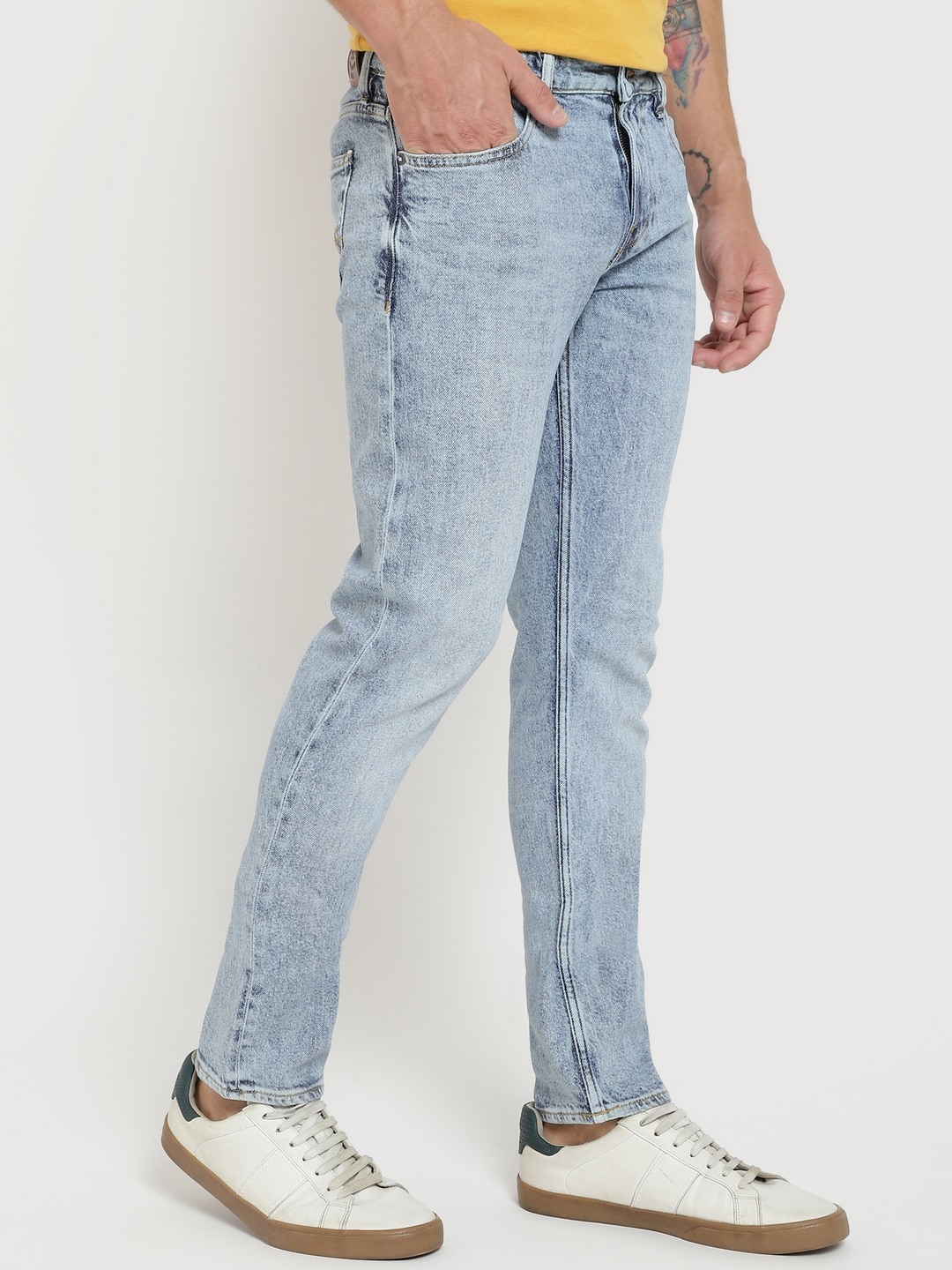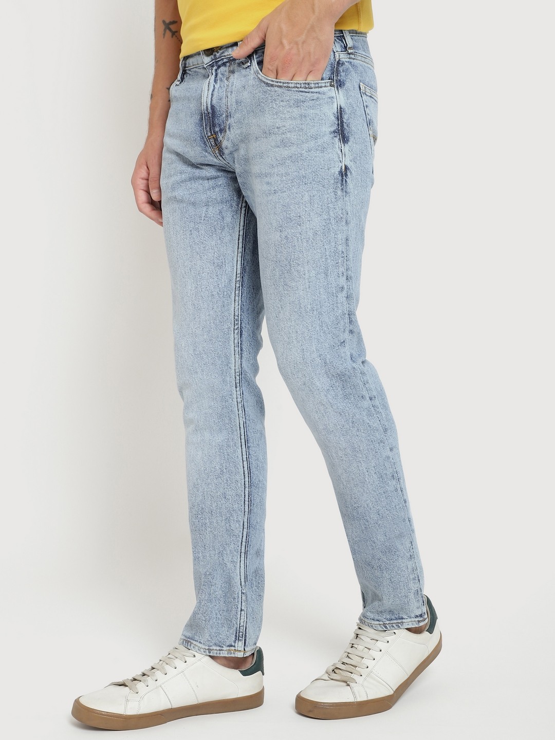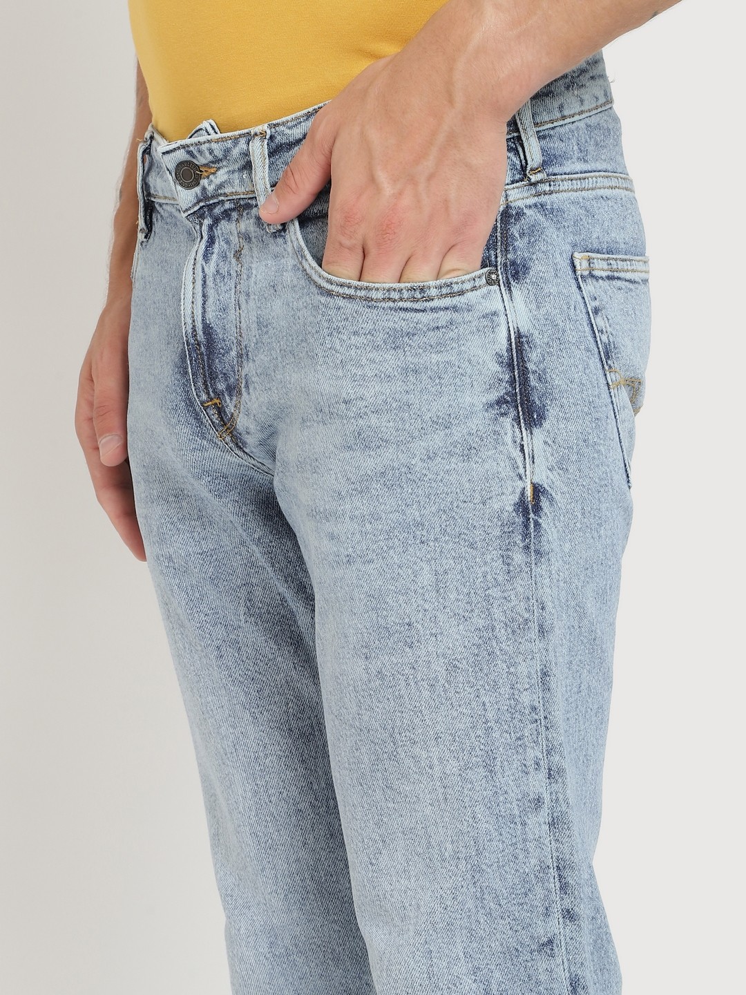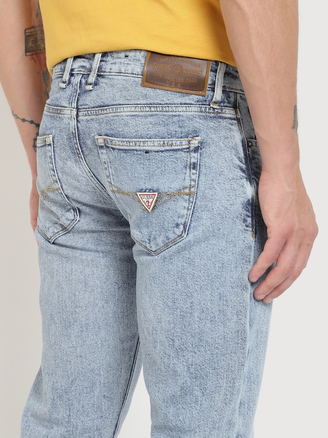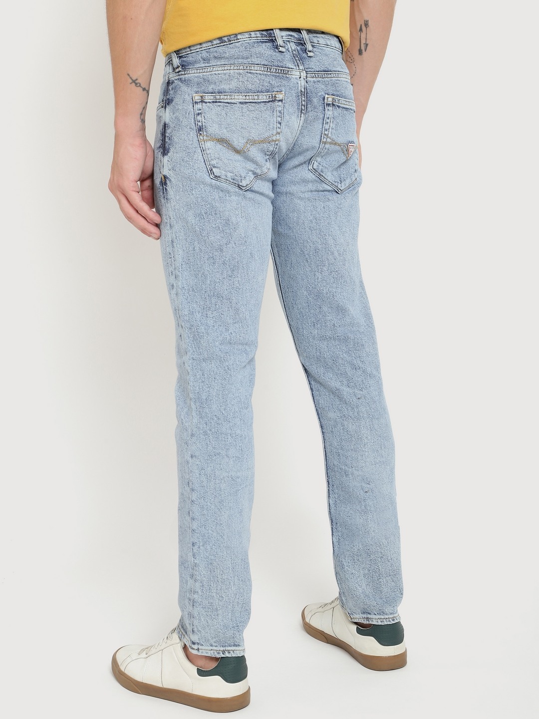 • Guess Men Blue Washed Mid-Rise Full Length Jeans
