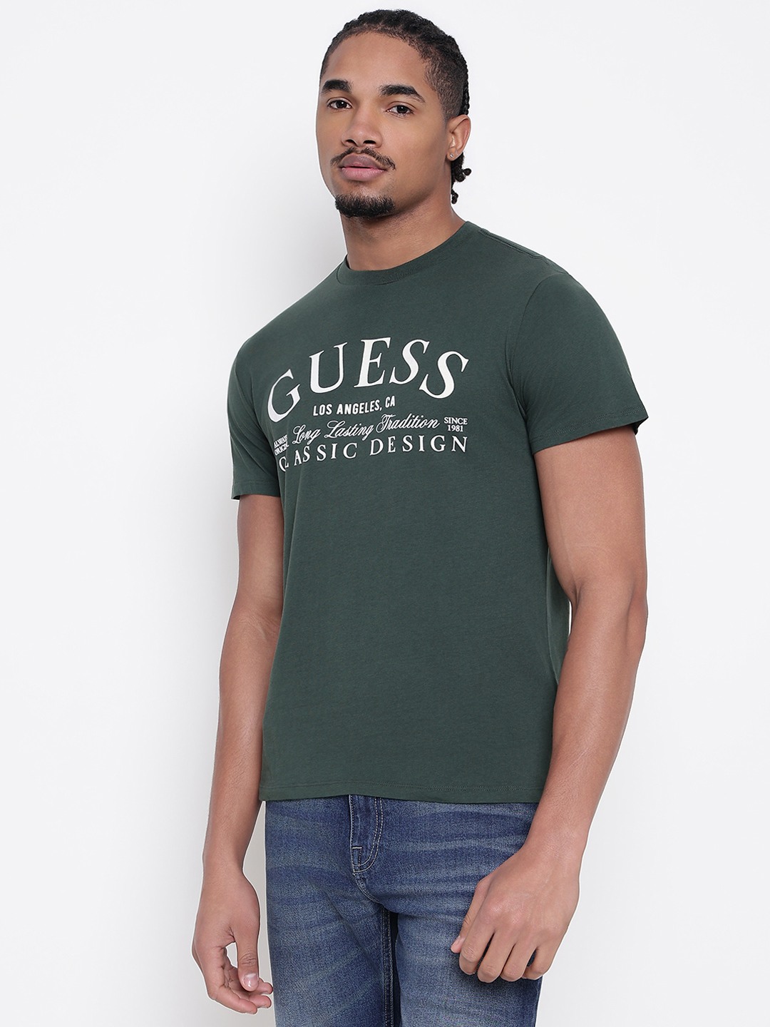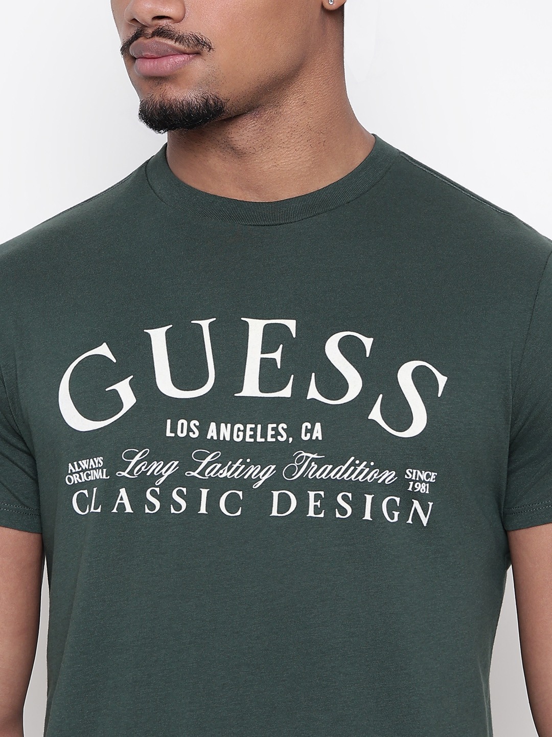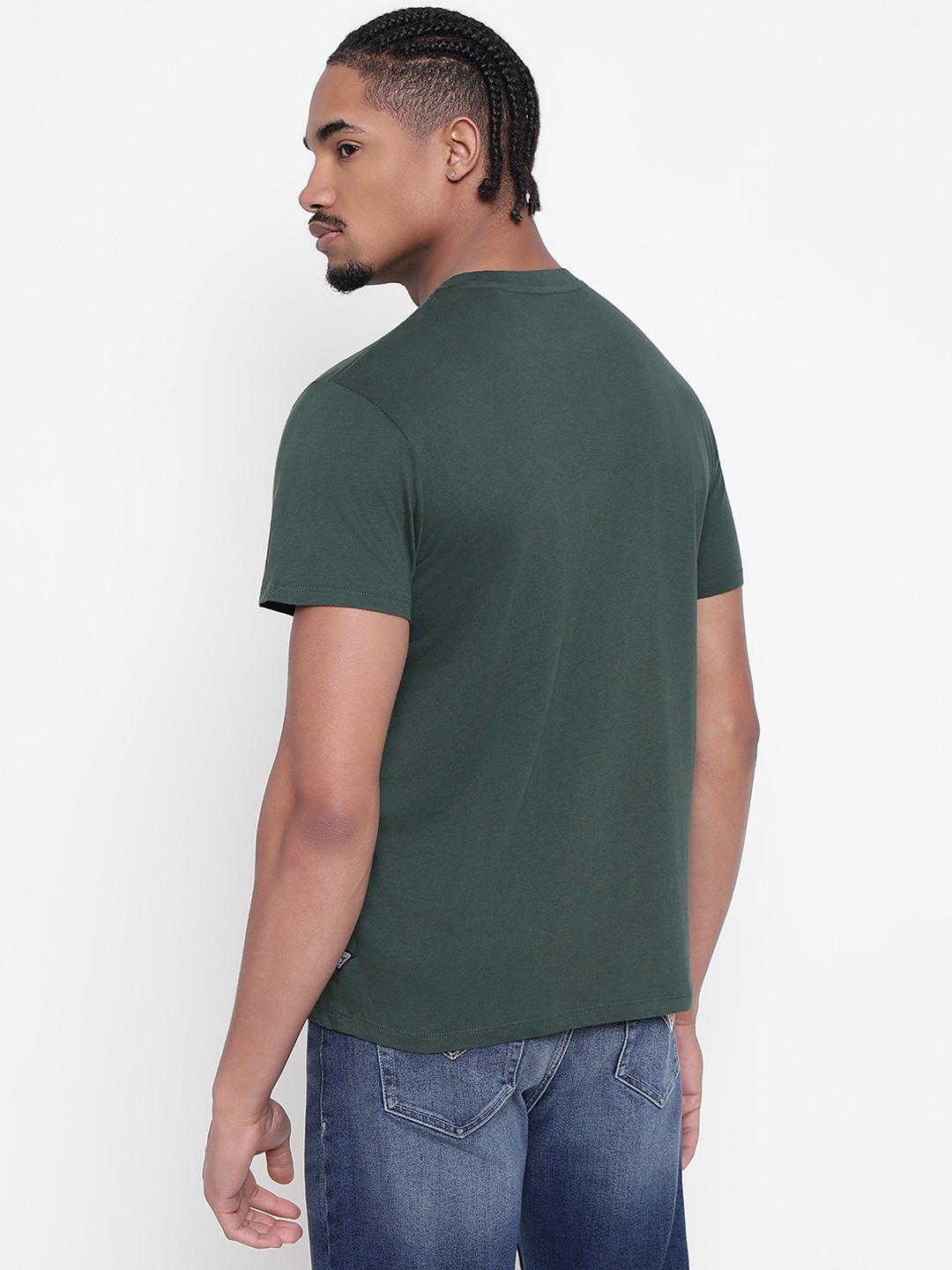 Men Dark Green Printed Round Neck T-shirt