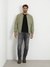 Men Green Solid Stand Collar Full Sleeves Bomber Jacket