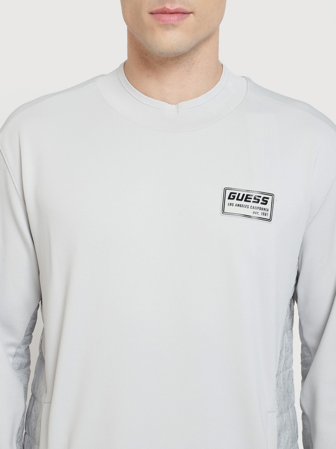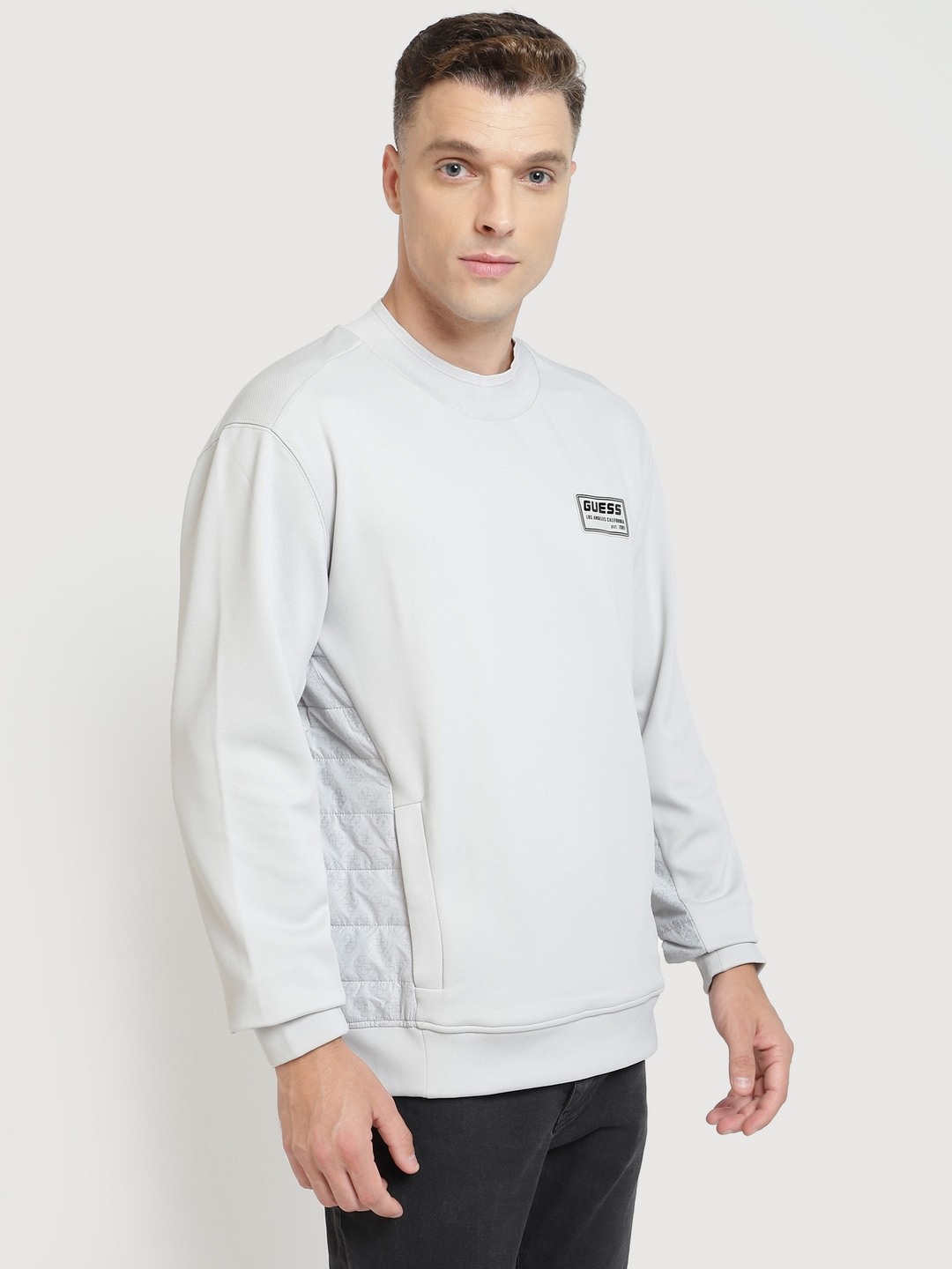 • Guess Men Grey Solid Round Neck Full Sleeves Pullover Style Sweatshirt