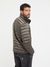Men Grey Solid Stand Collar Full Sleeves Puffer Jacket