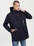 Men Navy Abstract Hooded Long Sleeves Reversible Jacket