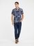 • Guess Men Navy Blue Printed Spread Collar Short Sleeves Shirt