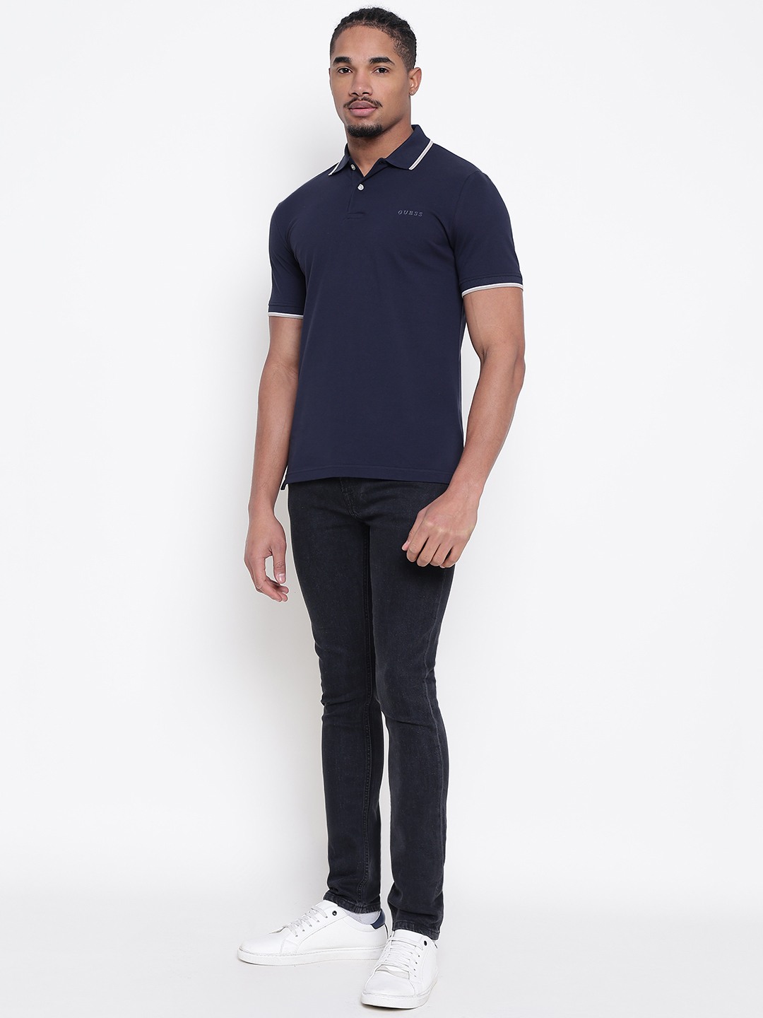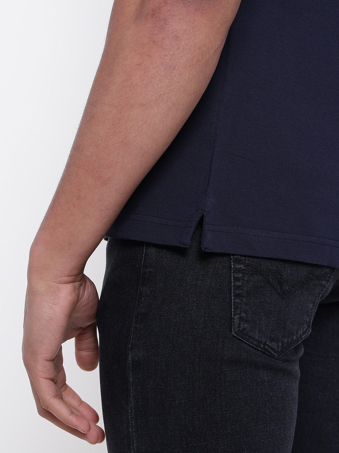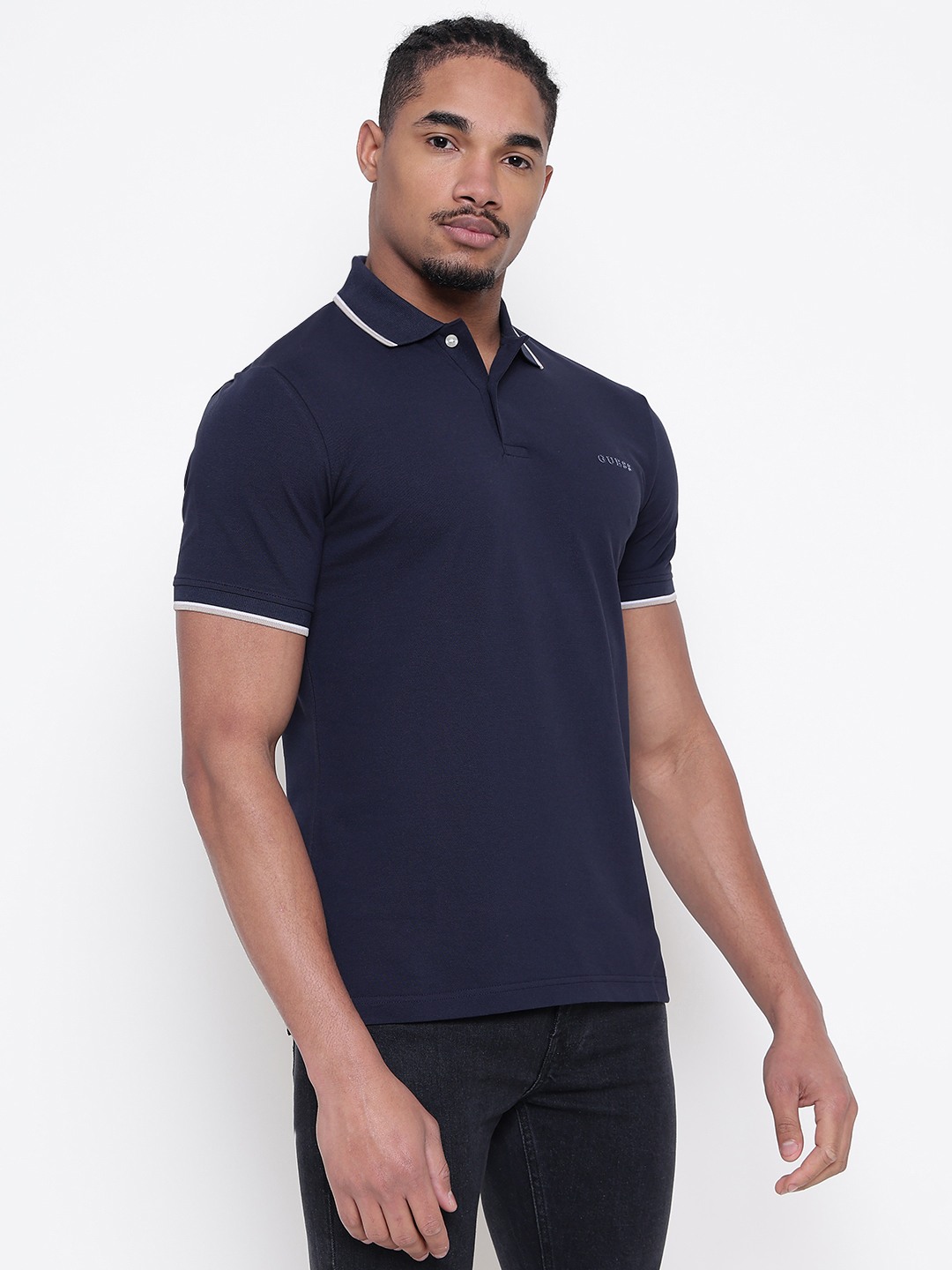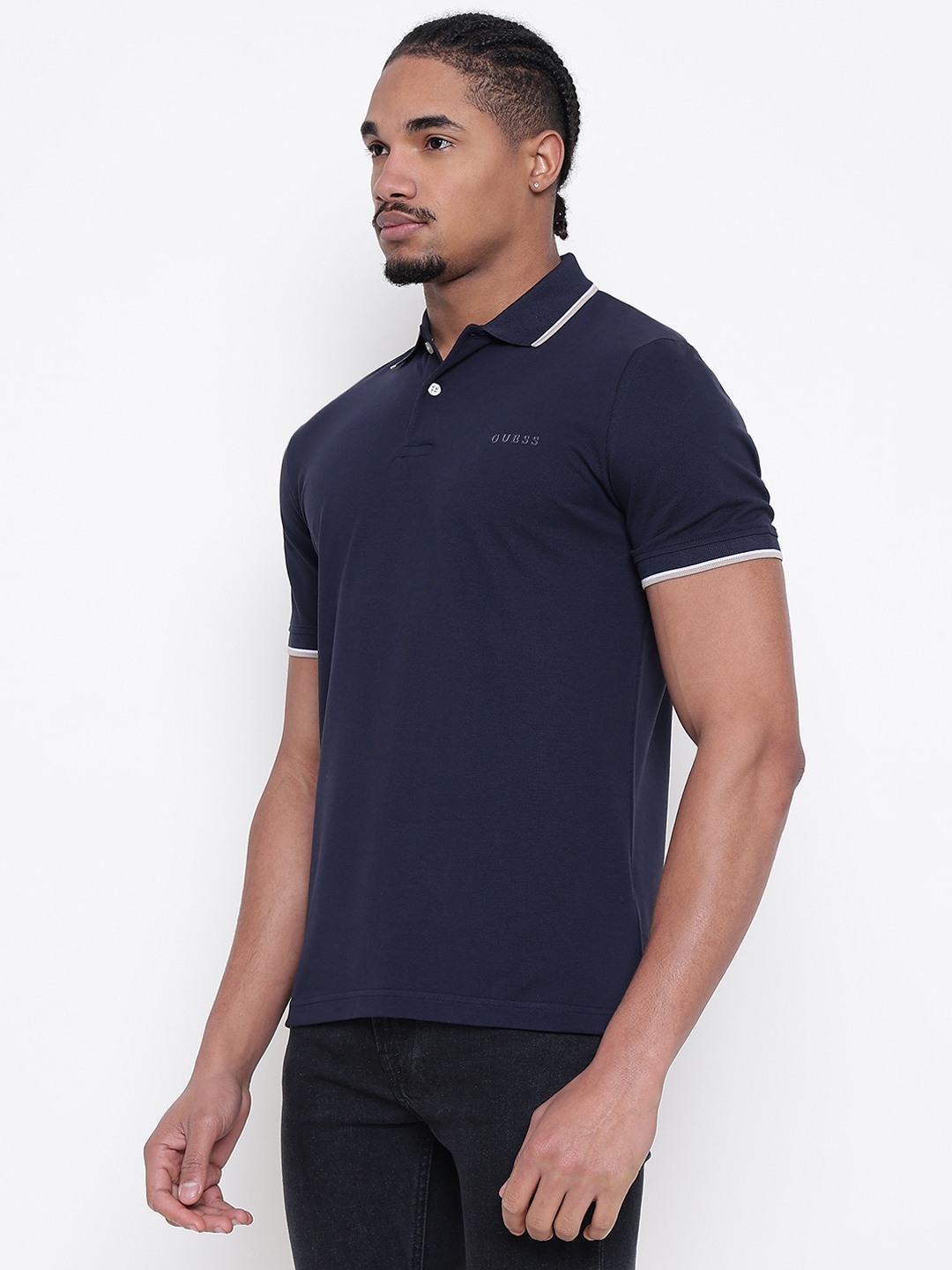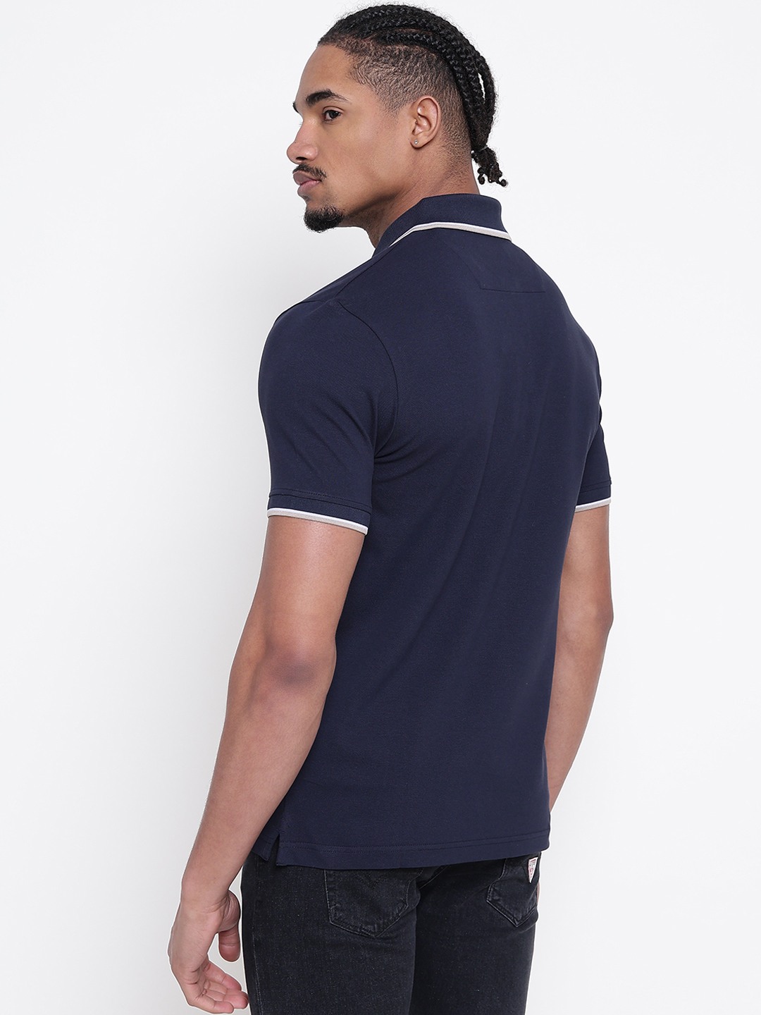 Men Navy Blue Solid Polo Collar T-shirt