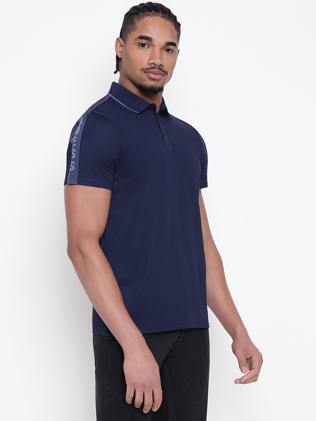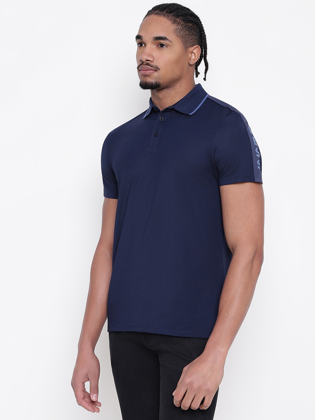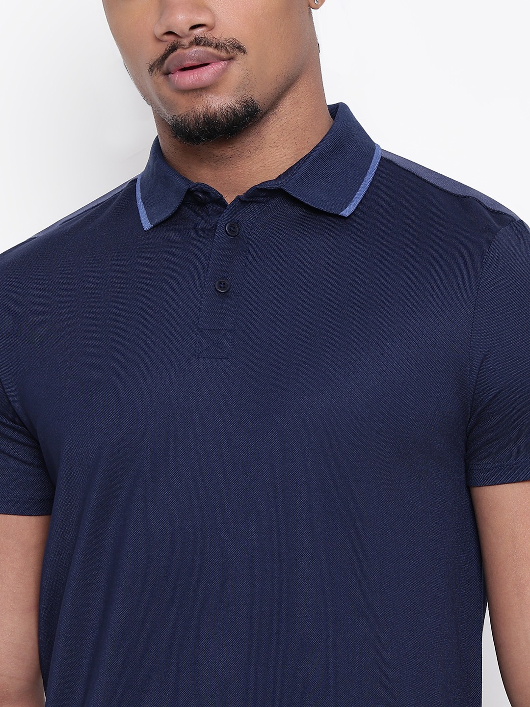 Men Navy Blue Solid Polo Collar T-shirt