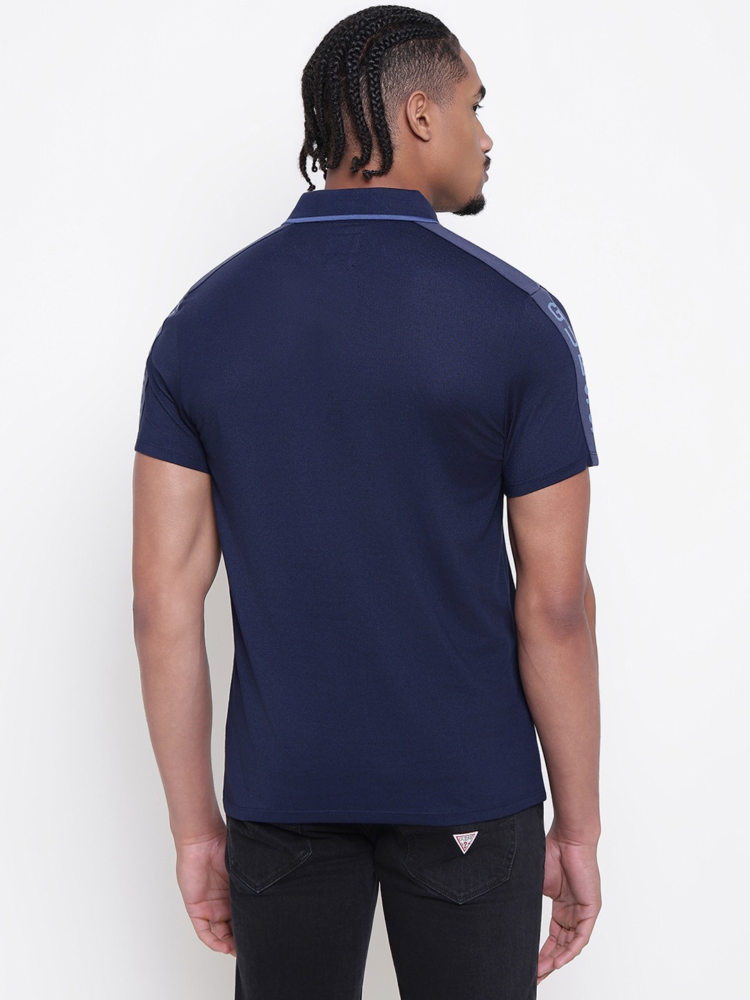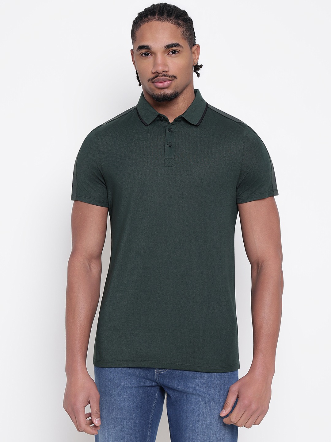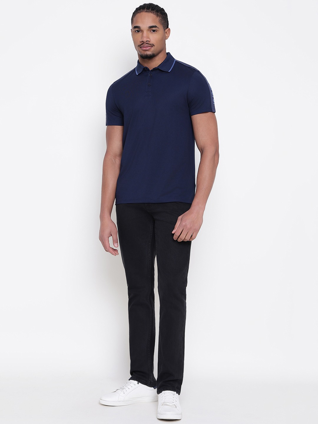 Men Navy Blue Solid Polo Collar T-shirt