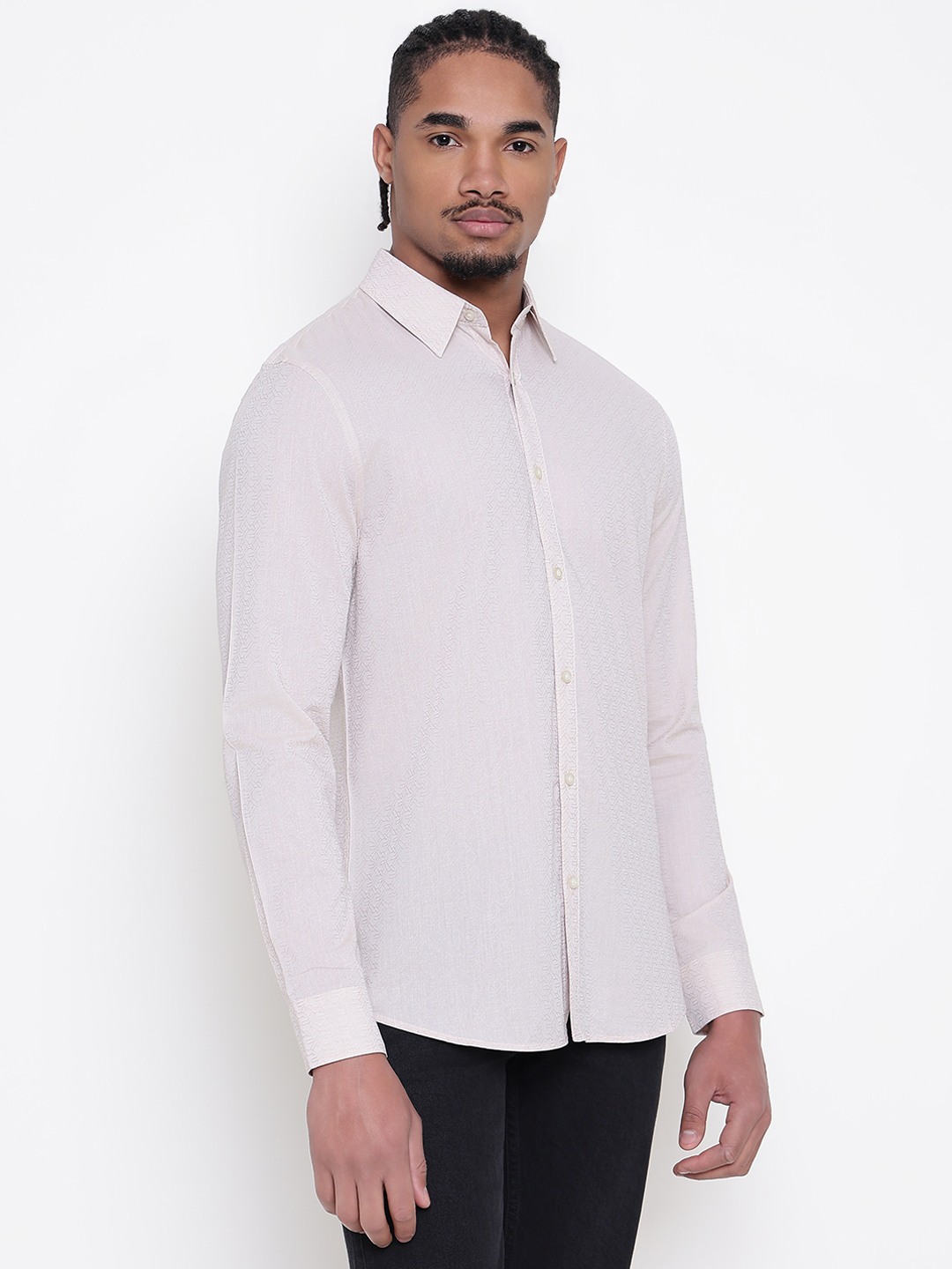 Elevate your wardrobe with our Slim Fit Geometric Print Shirt, designed for the modern man who appreciates style and comfort. This long-sleeve shirt features a striking geometric pattern that adds a contemporary edge to any outfit. Crafted from a premium blend of 53% cotton, 42% modal, and 5% elastane/spandex, it offers a soft, breathable feel with just the right amount of stretch for all-day comfort. The spread collar adds a touch of sophistication, making it perfect for both professional and casual settings. With a classic button closure, this shirt ensures a tailored fit that flatters your physique. Whether you're heading to the office or out for a night on the town, this versatile piece pairs effortlessly with trousers or jeans. Experience the perfect fusion of style and functionality with our Slim Fit Geometric Print Shirt, a must-have addition to any fashion-forward man's collection.