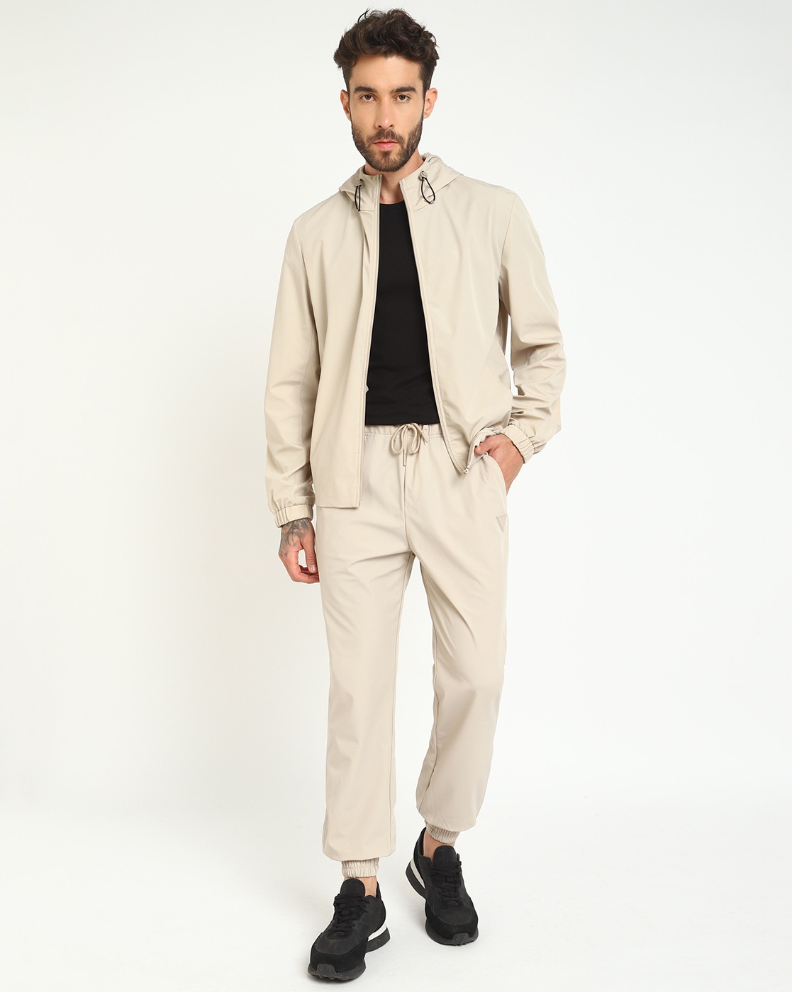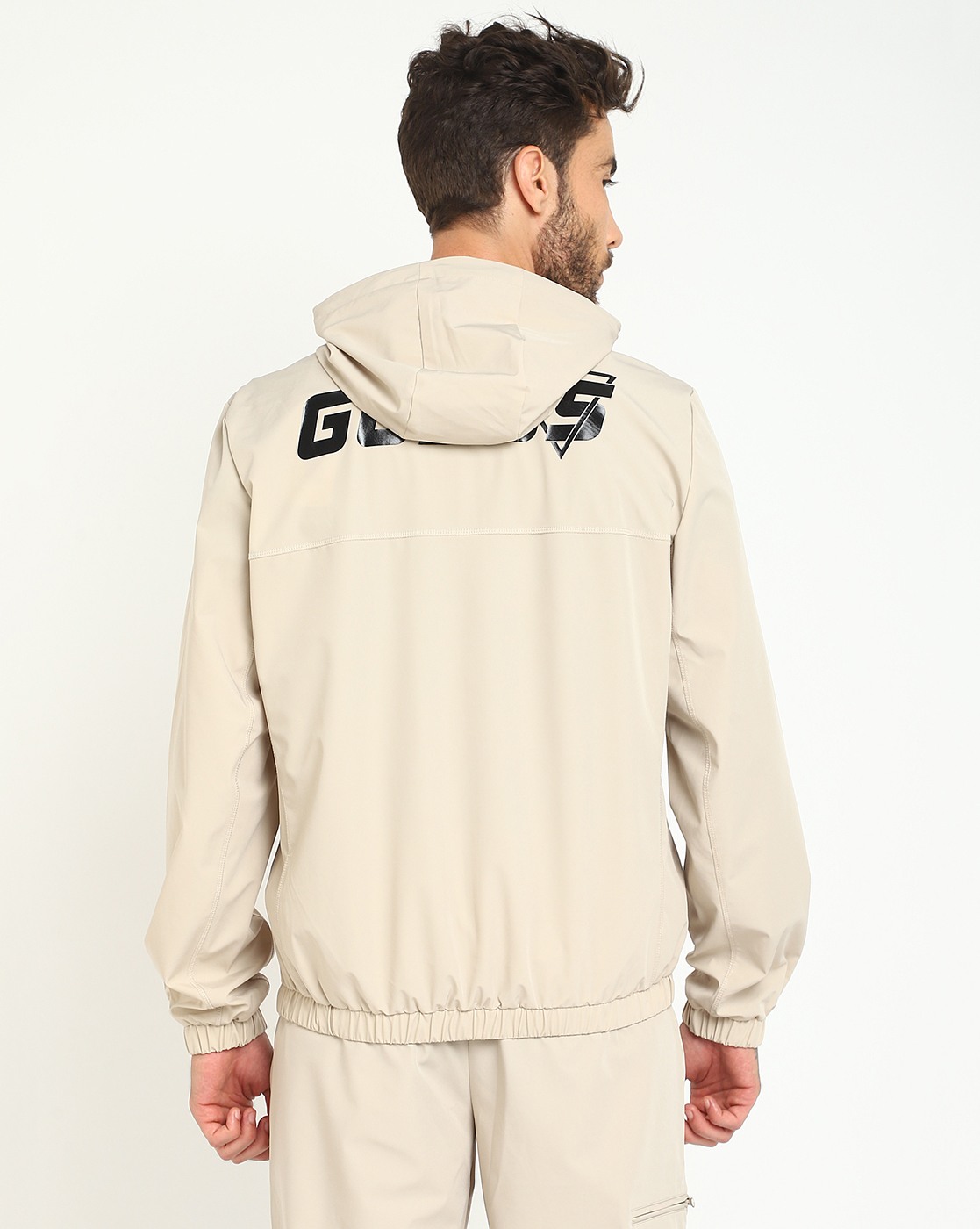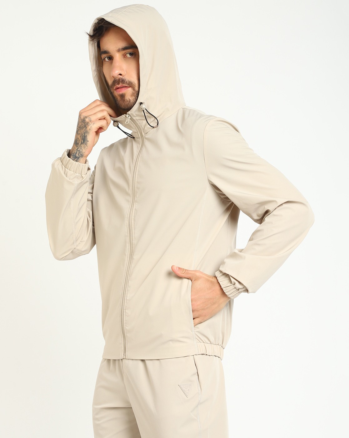 • Guess Men's Beige Polyamide Solid Regular Fit Hooded Neck Full Sleeve Jacket