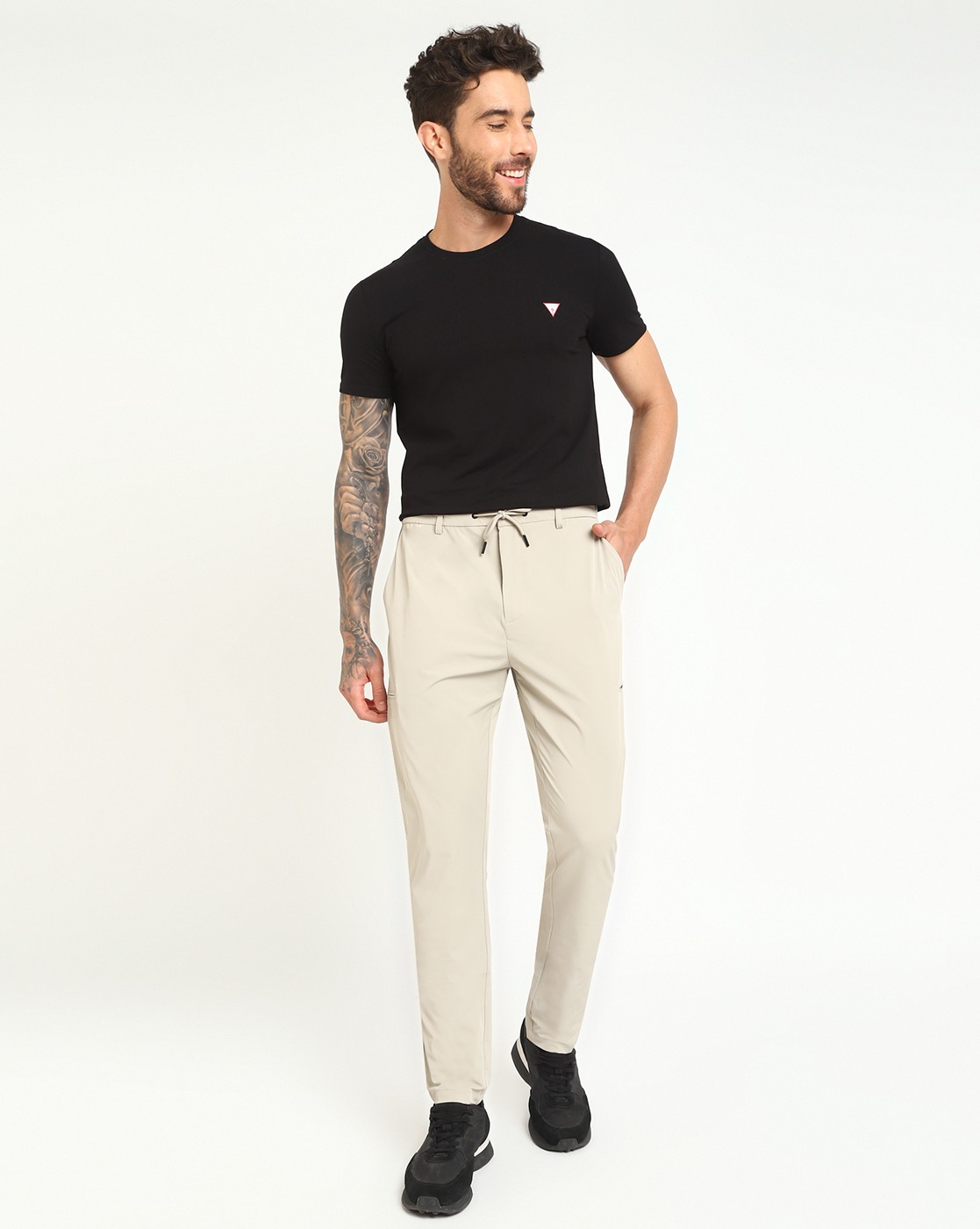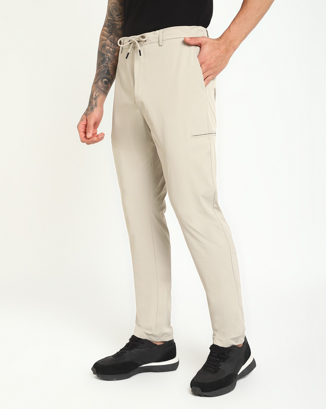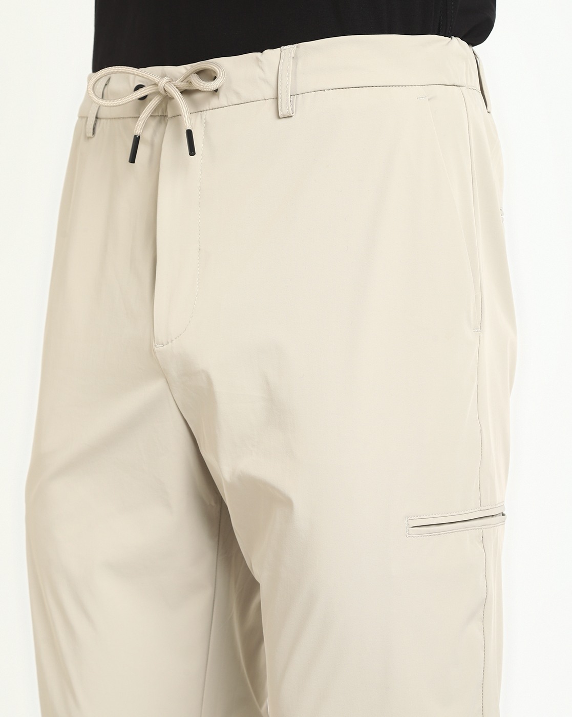 • Guess Men's Beige Polyamide Solid Slim Fit Trouser