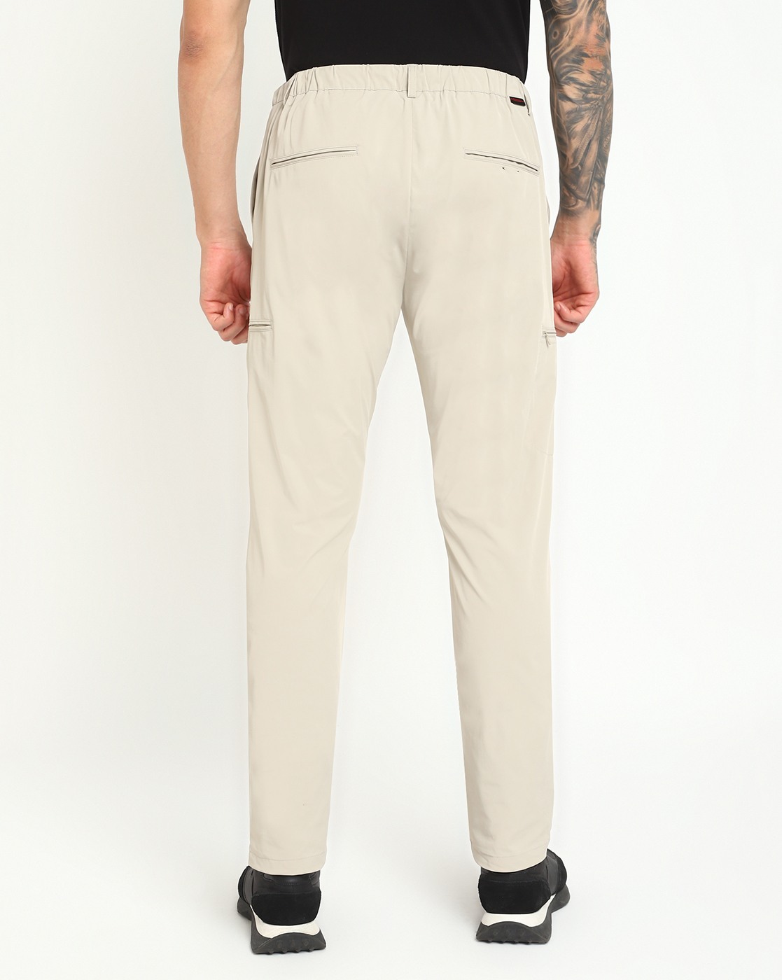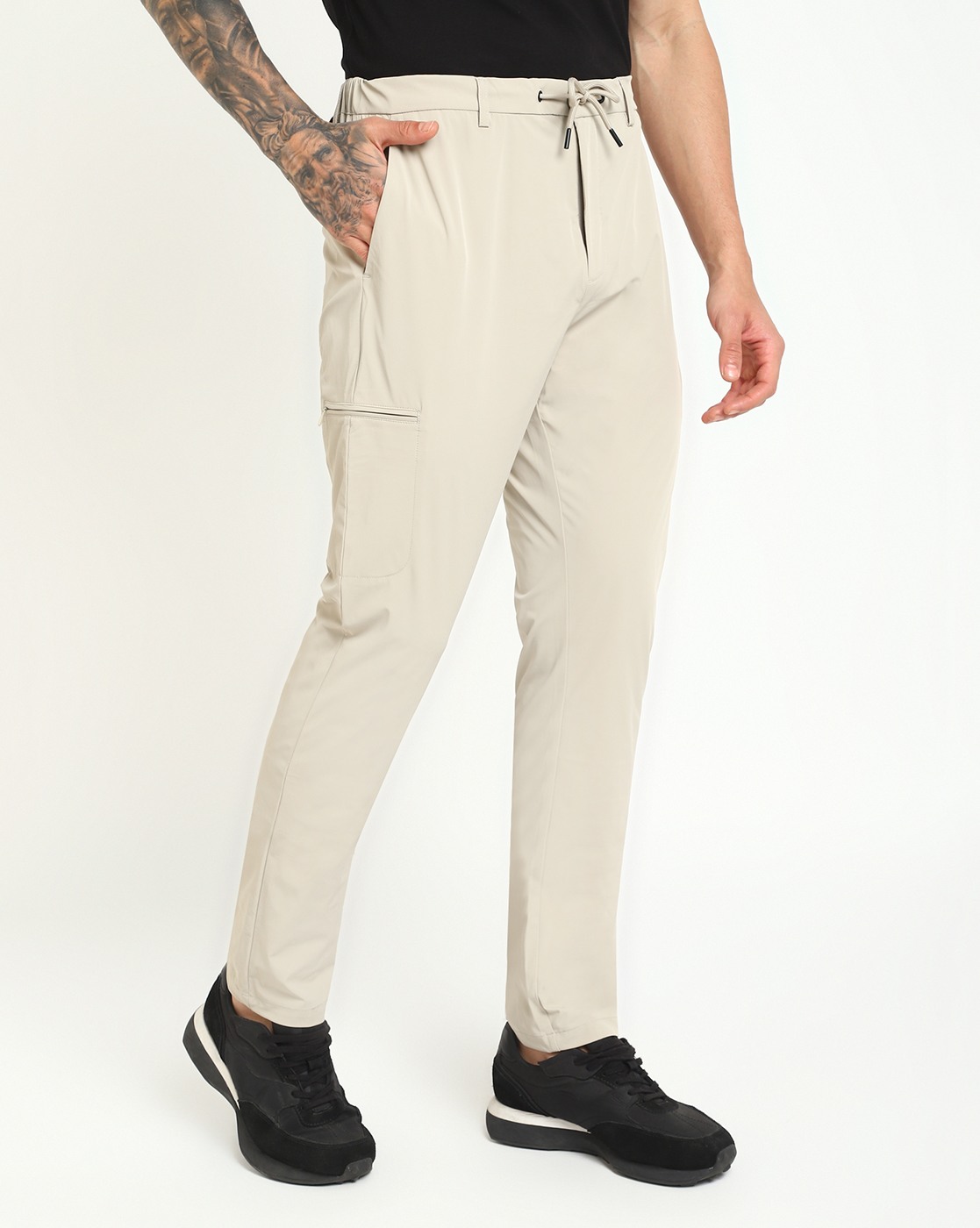 Beige Polyamide Solid Slim Fit Trouser