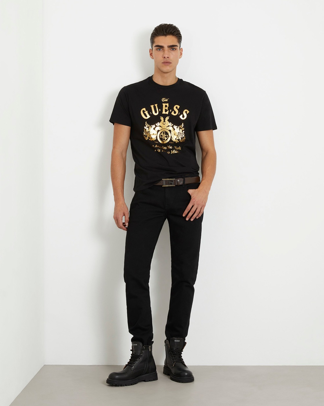 • Guess Men's Black Cotton Printed Regular Fit T-shirt