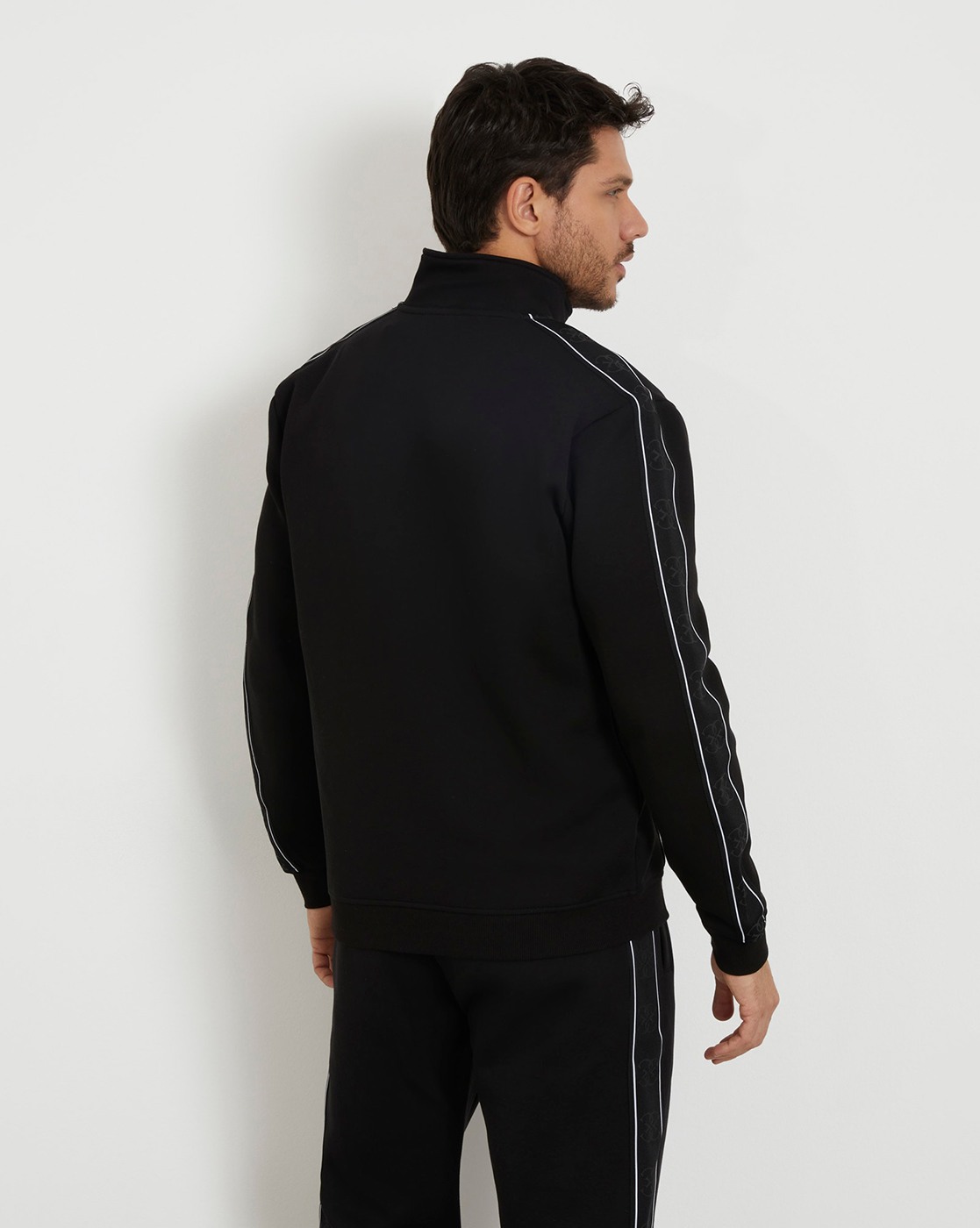 Elevate your casual wardrobe with our sleek black zipped sweatshirt, designed for the modern man. Crafted from a premium cotton blend, this sweatshirt offers unparalleled comfort and durability. The solid pattern exudes timeless style, while the full sleeves and high neck provide warmth and versatility for any season. Featuring a convenient zip closure, this piece is perfect for layering or wearing on its own. Whether you're heading to the gym or a casual outing, this sweatshirt is your go-to choice for effortless style.