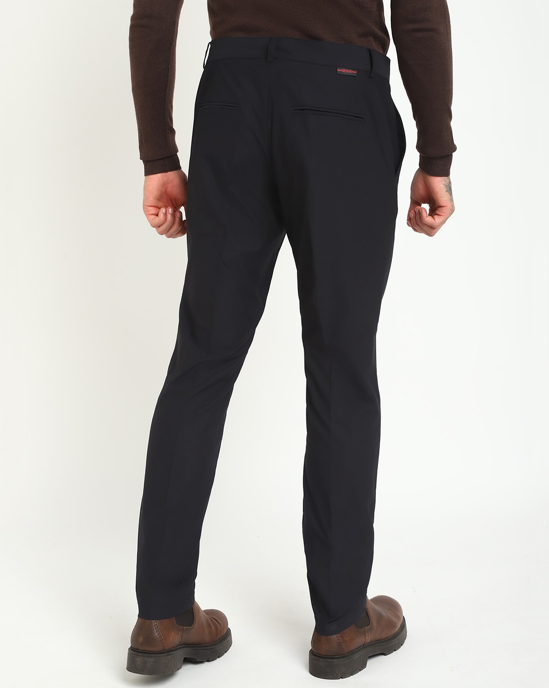 • Guess Men's Black Polyester Solid Regular Fit Trouser