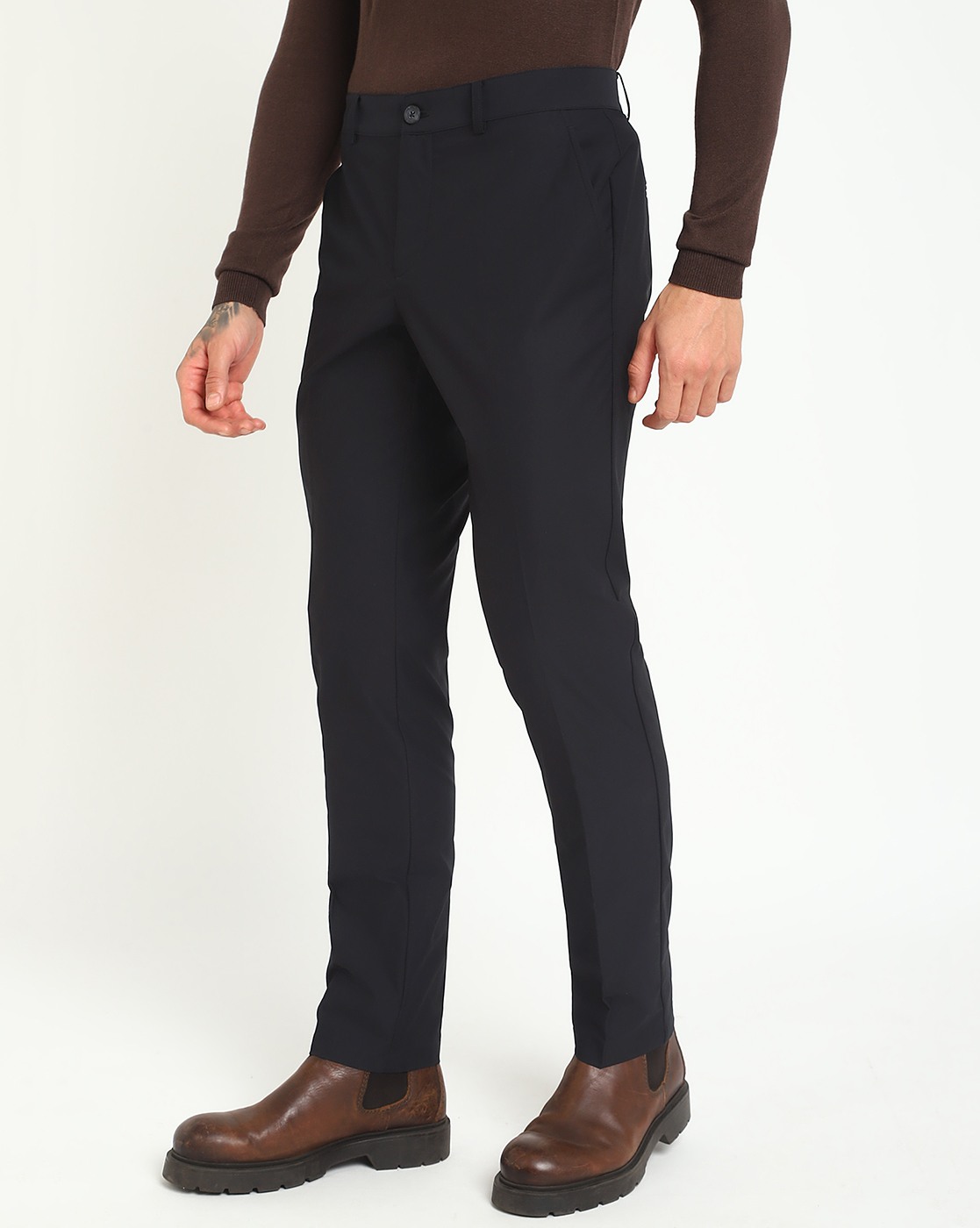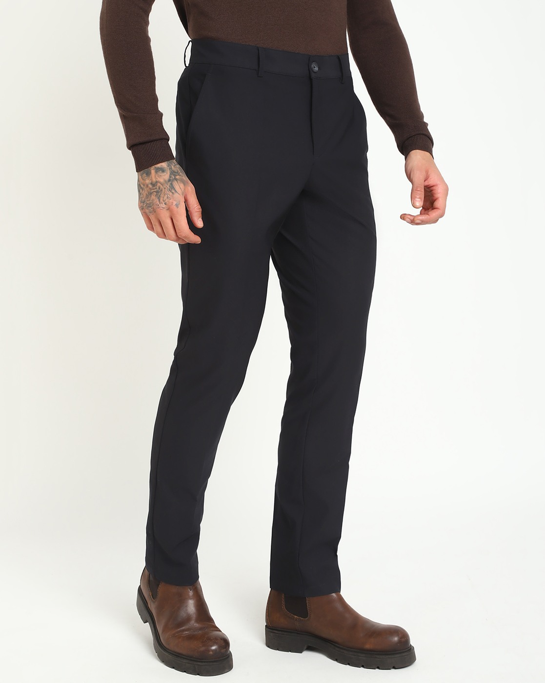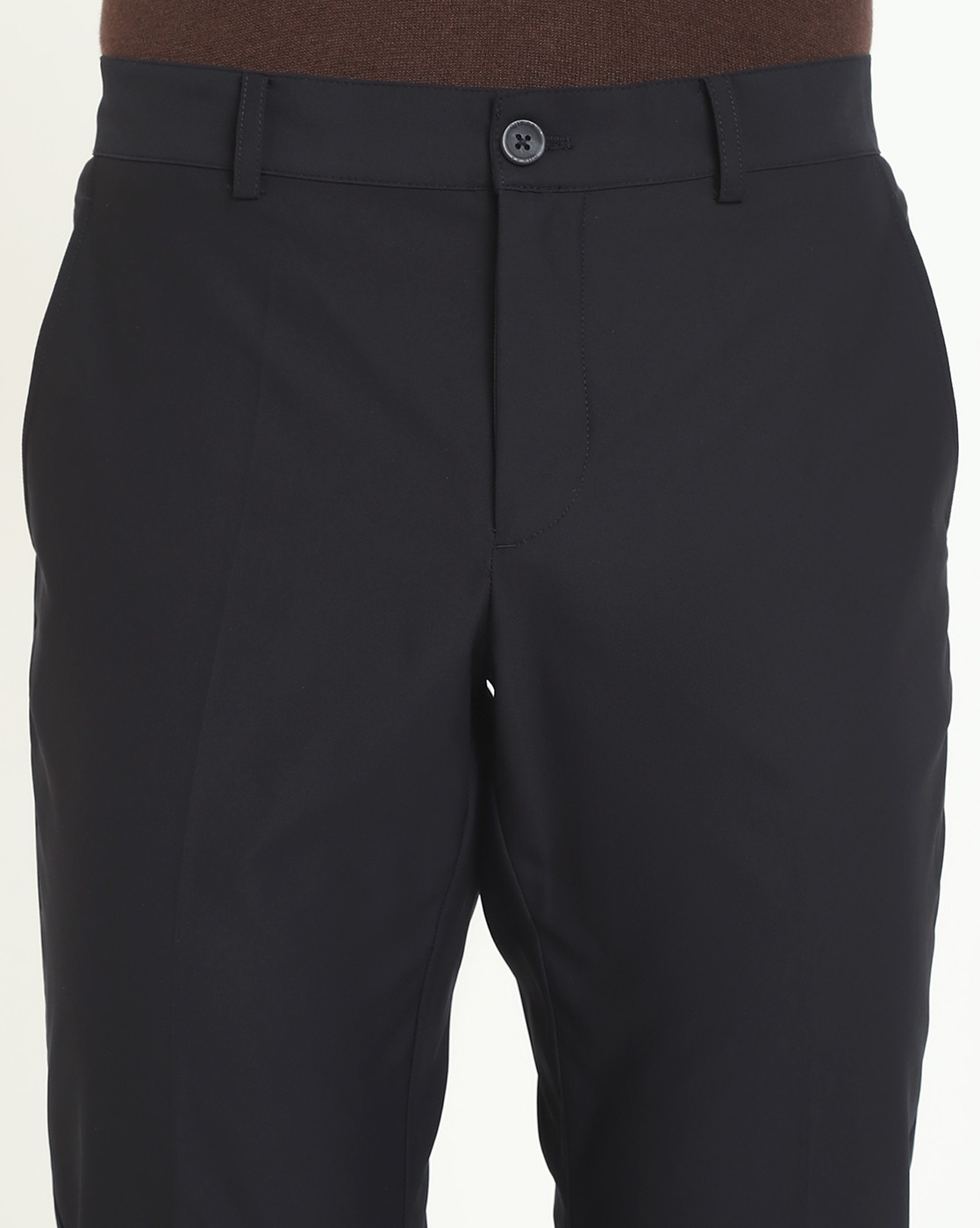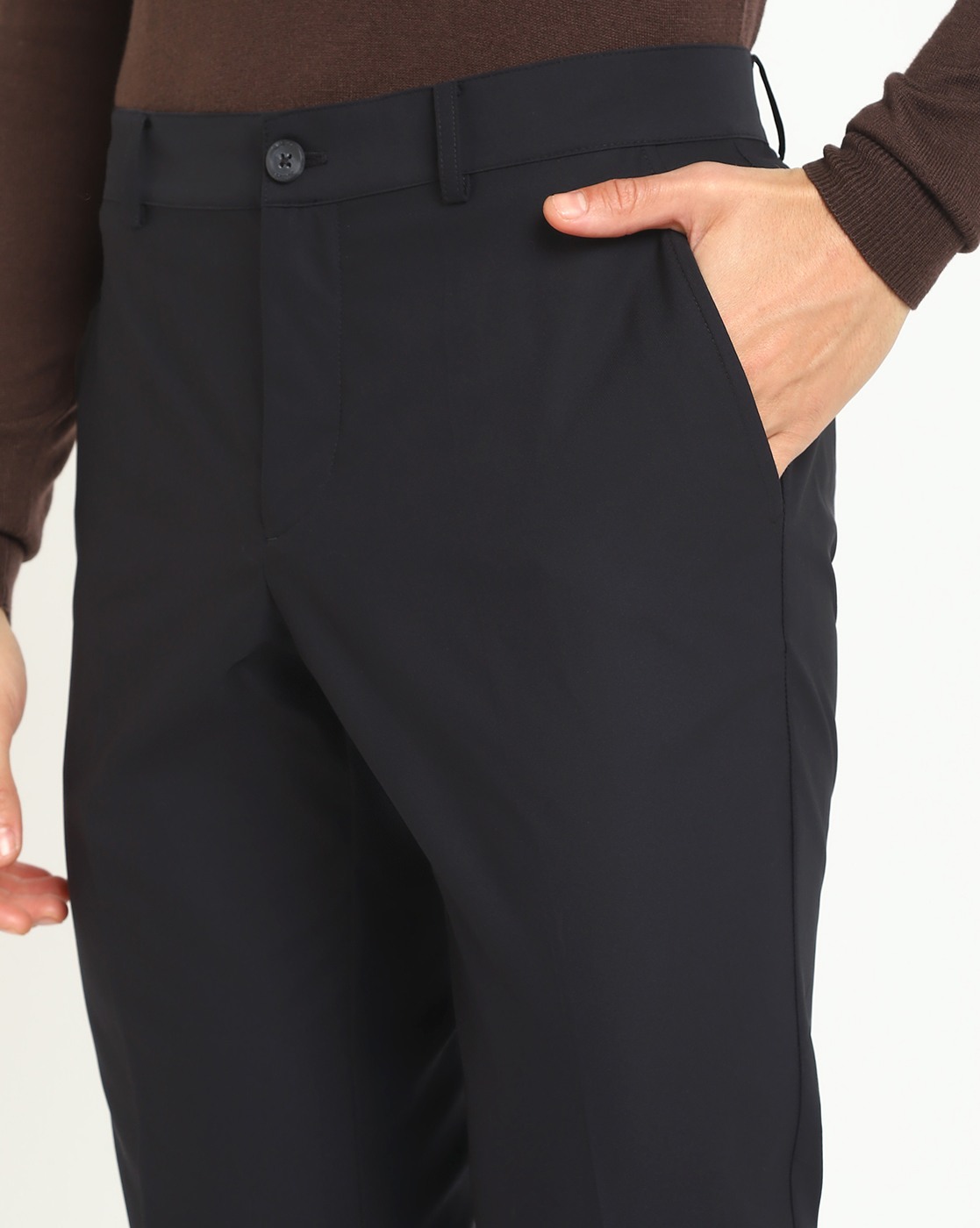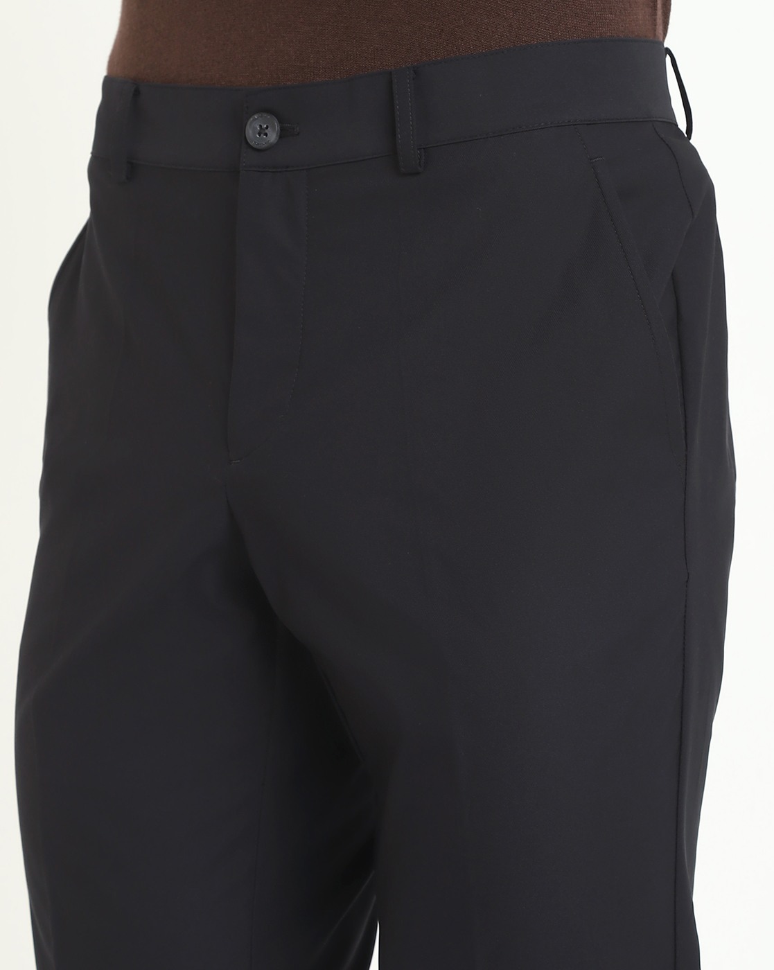 Men's Black Polyester Solid Regular Fit Trouser