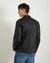 Men's Black Polyurethane Textured Regular Fit Jacket