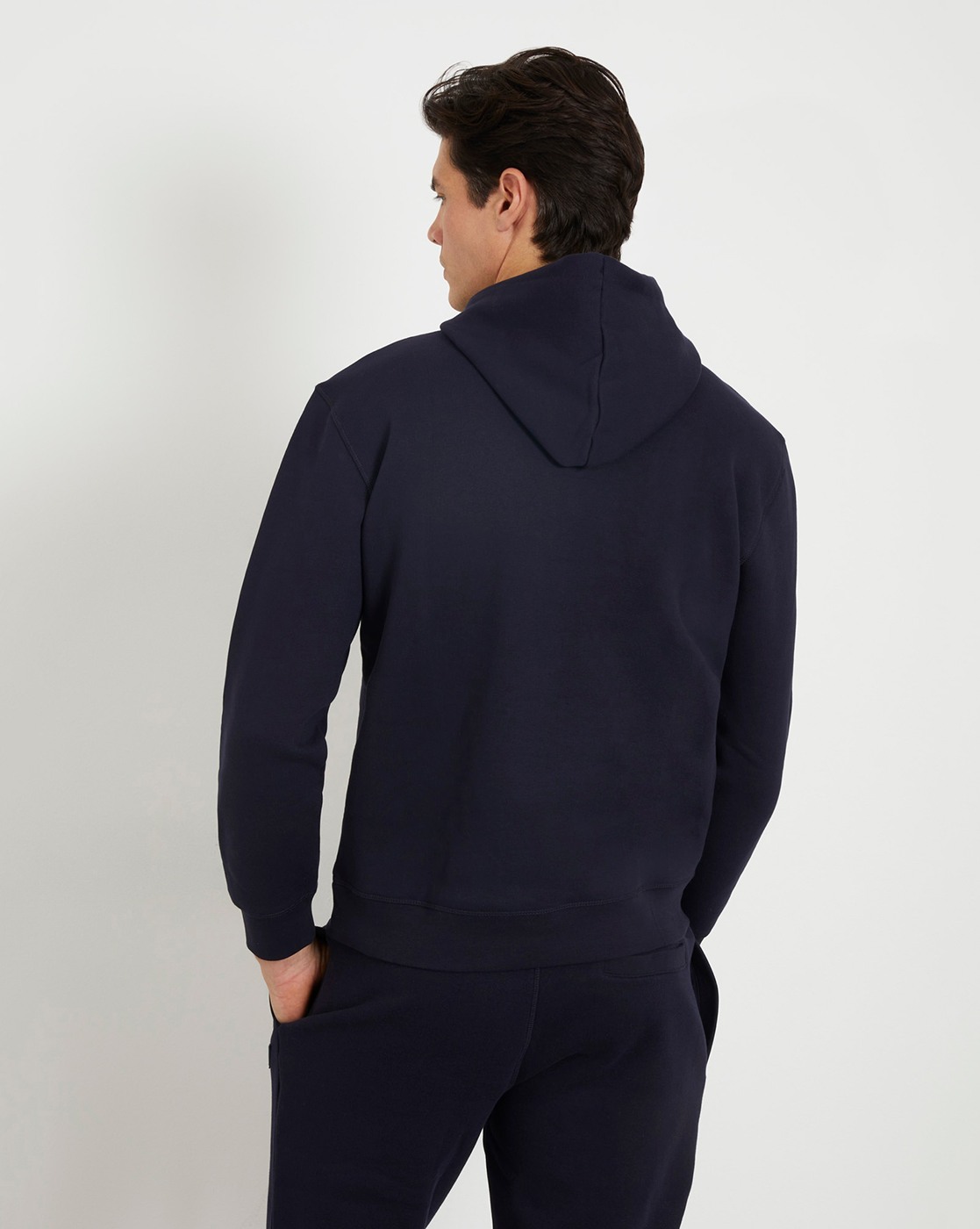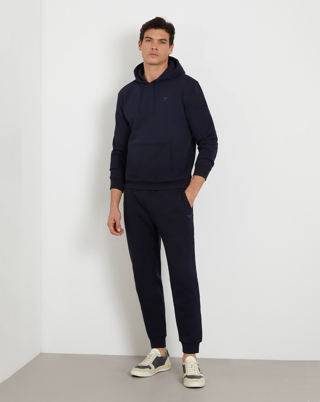• Guess Men's Blue Polycotton Solid Regular Fit Hooded Neck Full Sleeve Sweatshirt