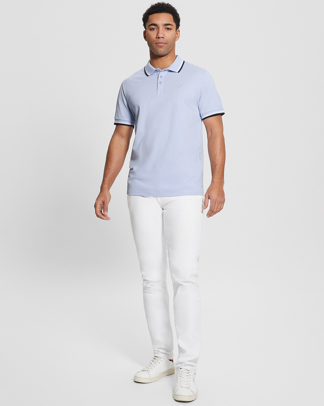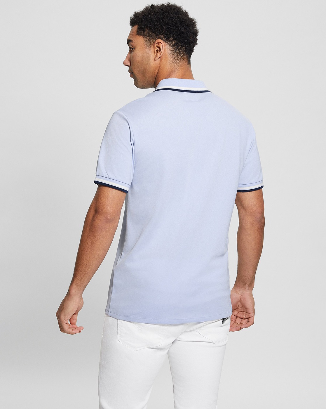 • Guess Men's Blue Polycotton Solid Regular Fit Spread Collar Short Sleeve Polo T-shirt