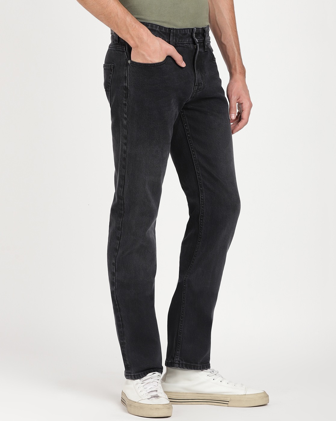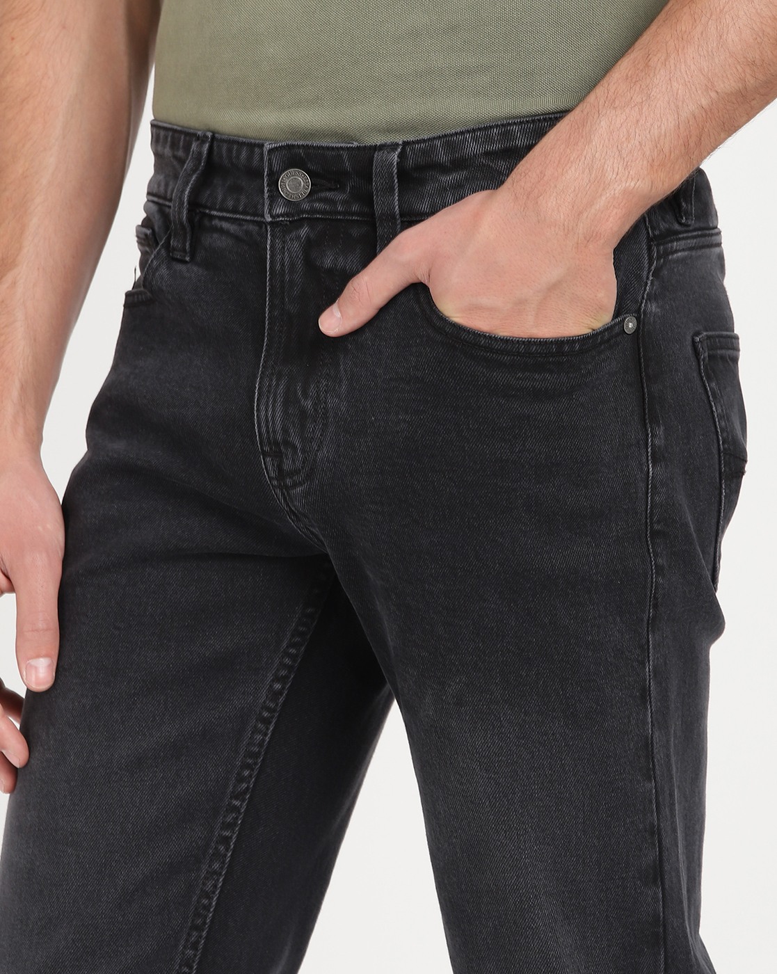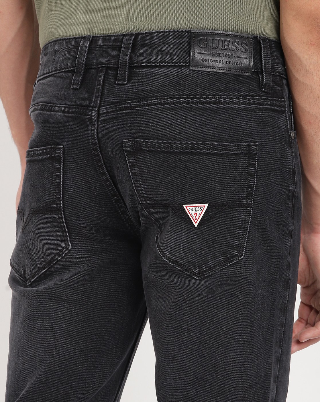 • Guess Men's Charcoal Grey Cotton Blend Solid Regular Fit Jeans