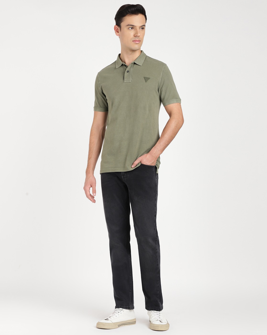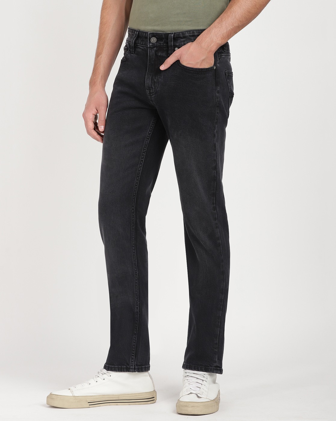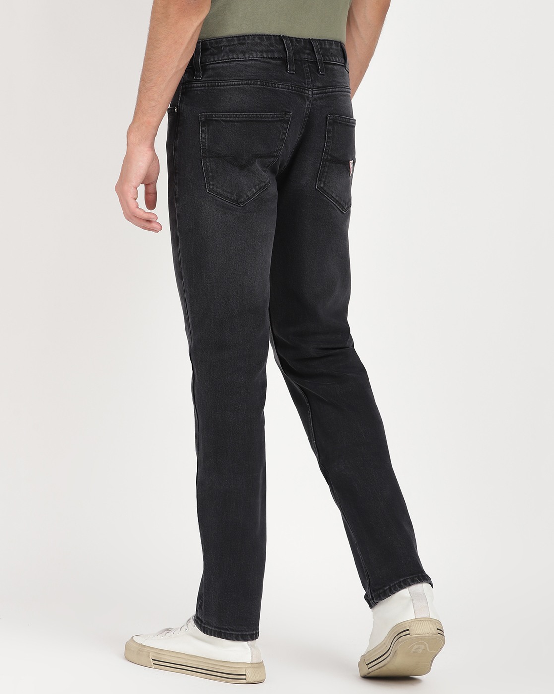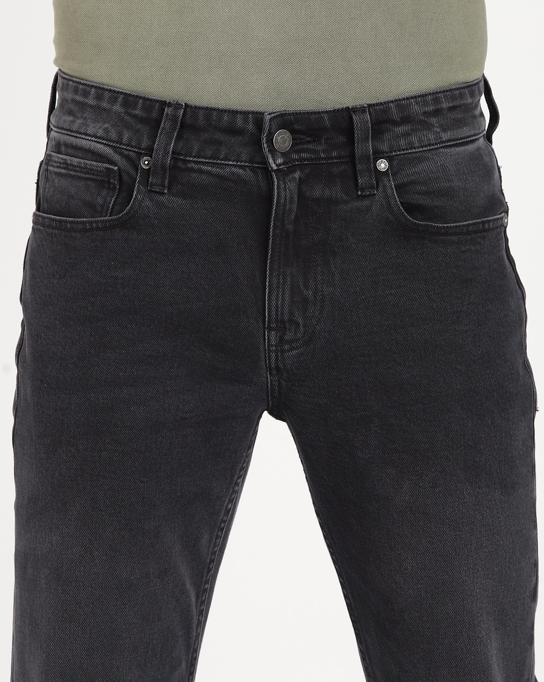 • Guess Men's Charcoal Grey Cotton Blend Solid Regular Fit Jeans