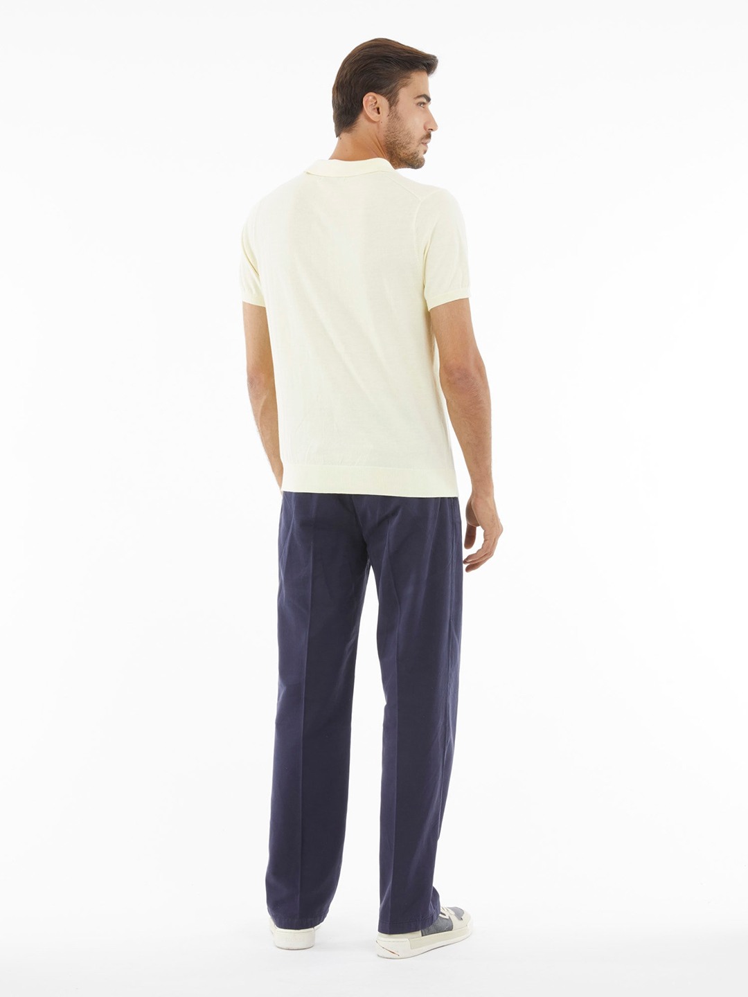 Men's Cream Cotton Blend Solid Regular Fit Spread Collar Short Sleeve Sweater