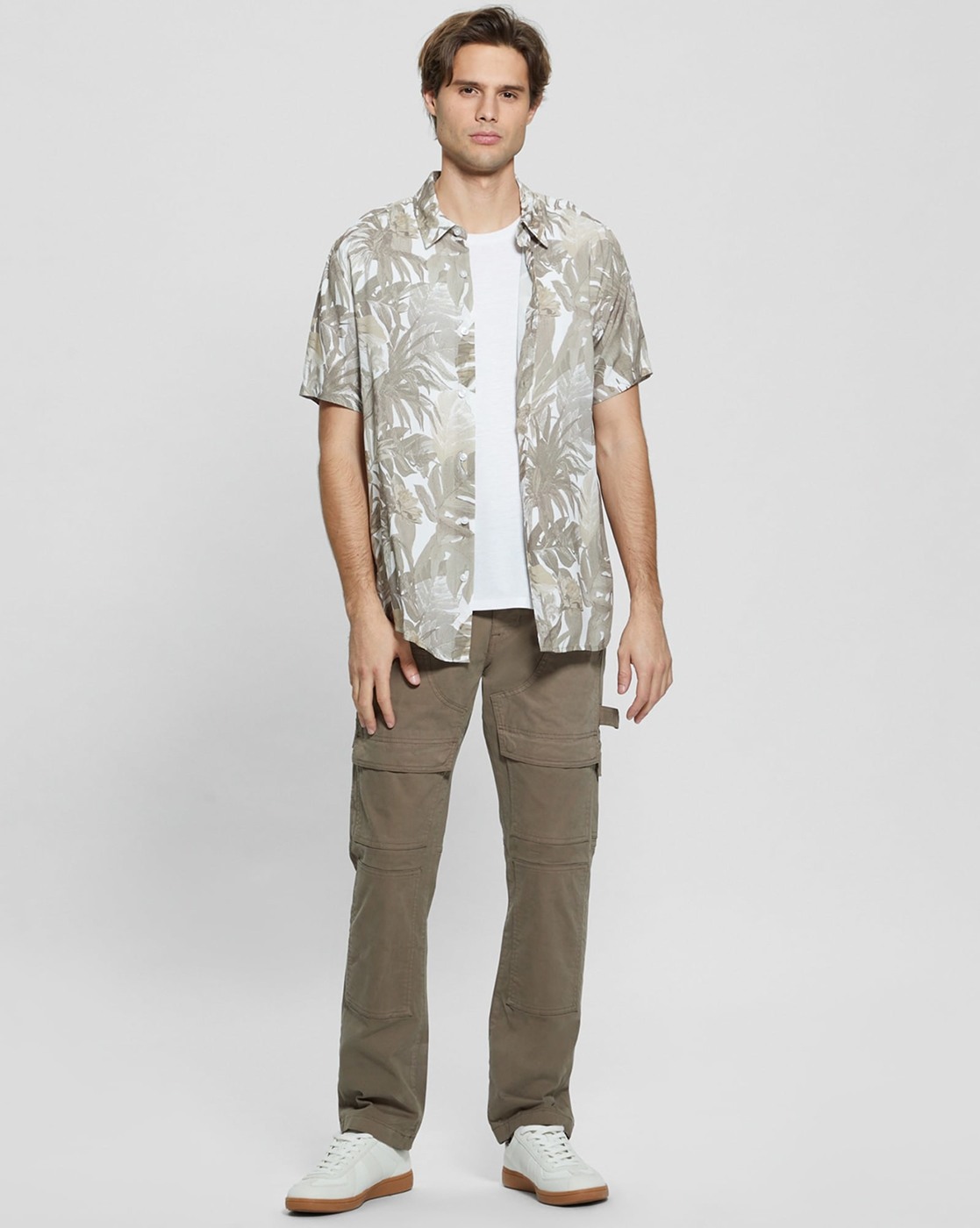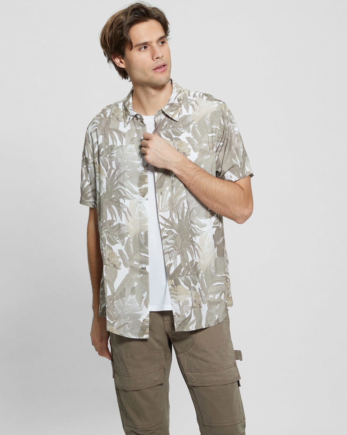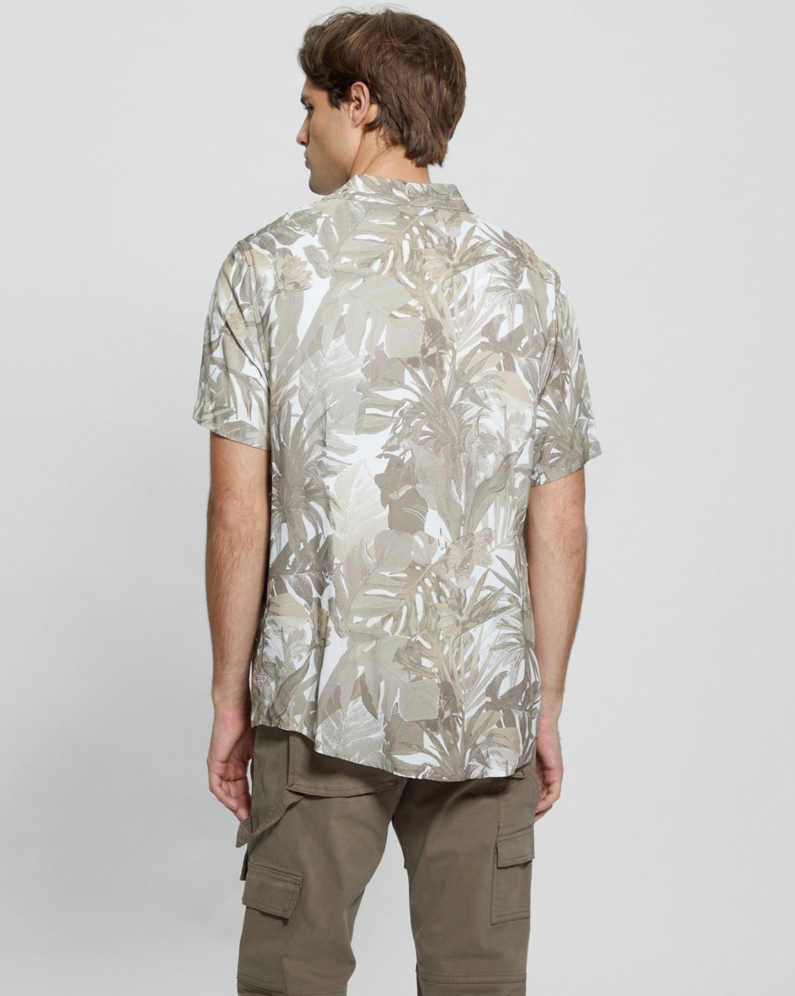 • Guess Men's Green Viscose Printed Slim Fit Spread Collar Short Sleeve Shirts