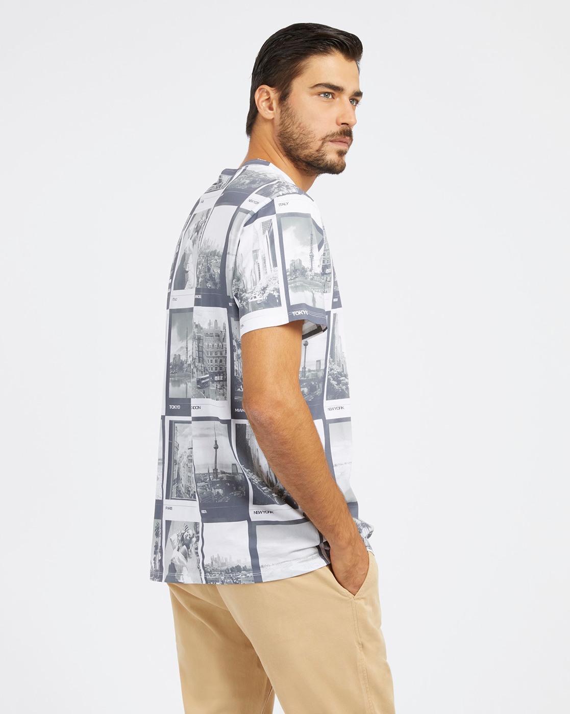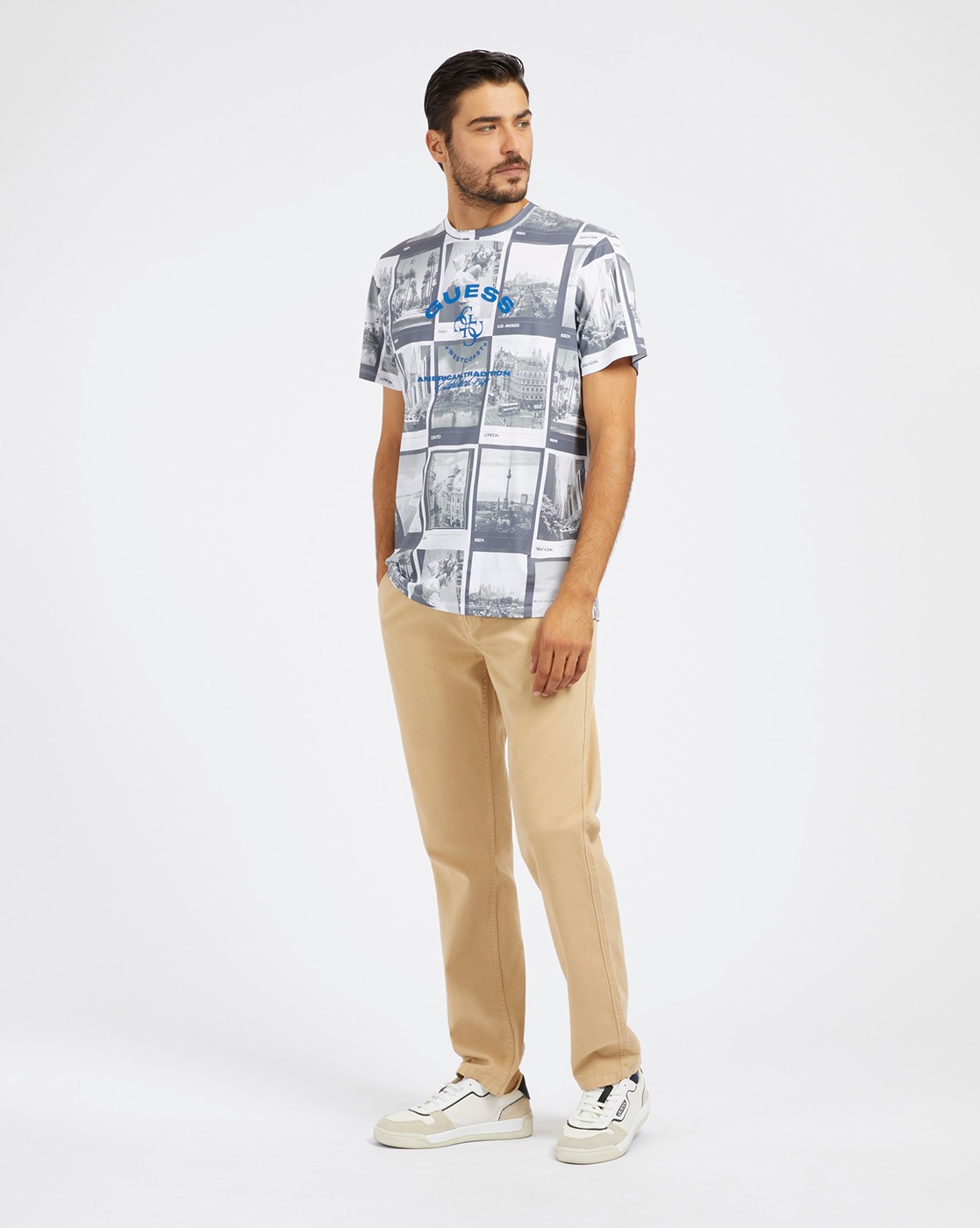 • Guess Men's Grey Cotton Graphic Slim Fit T-shirt