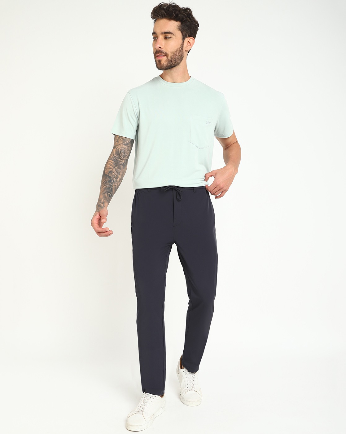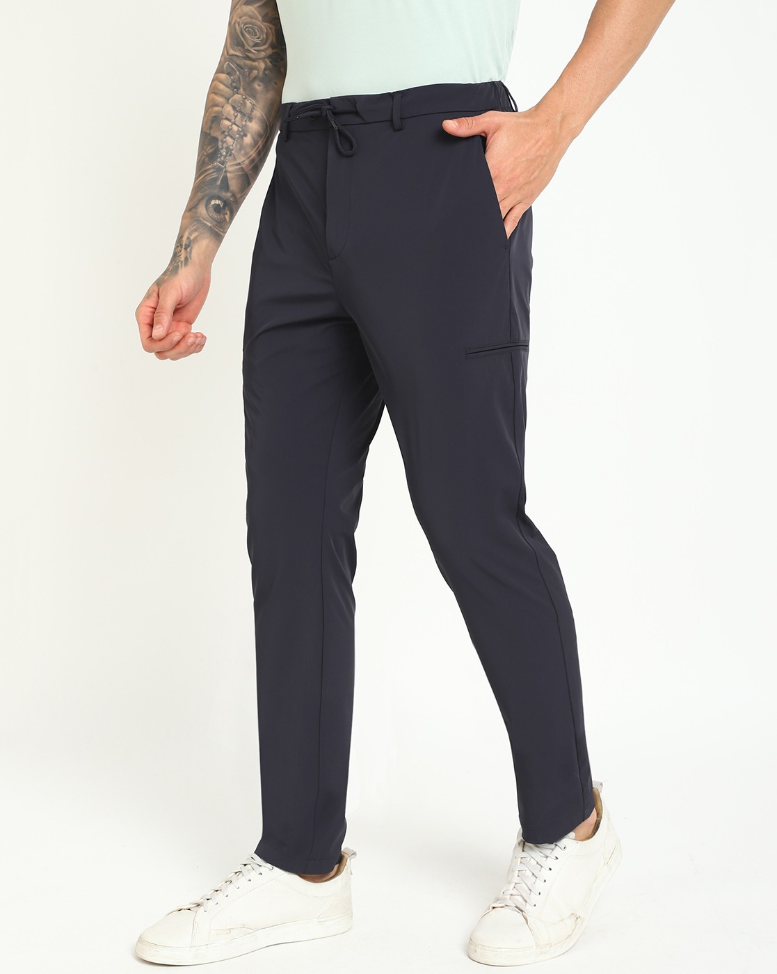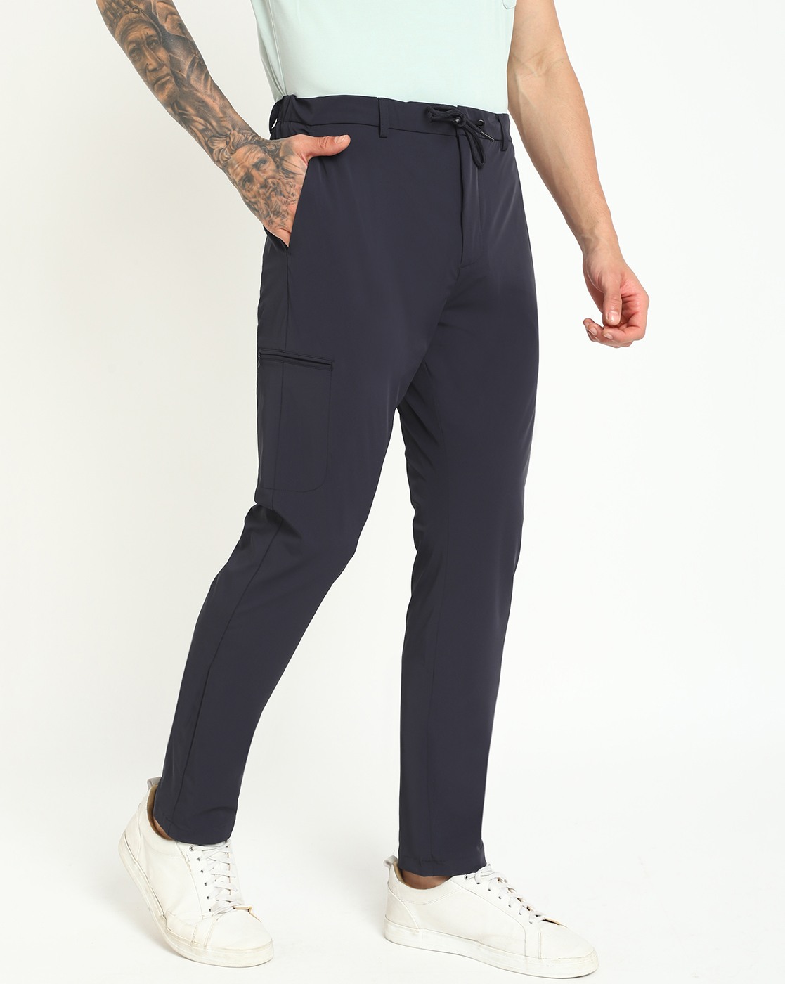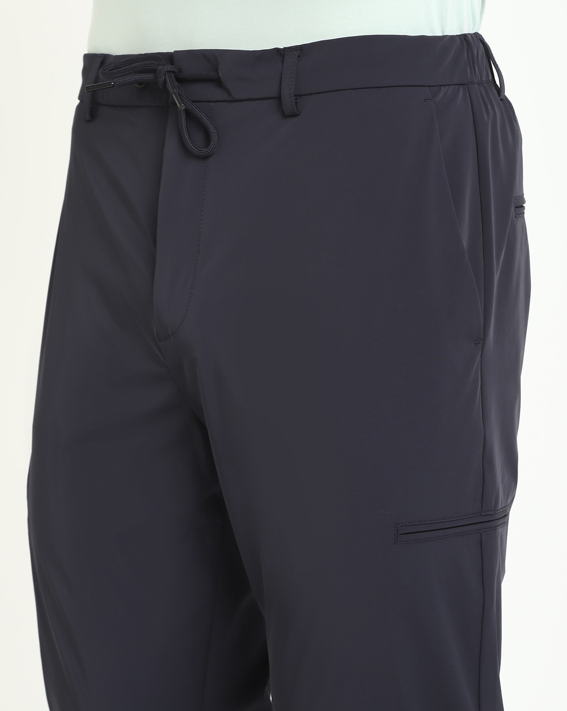• Guess Men's Navy Blue Polyamide Solid Slim Fit Trouser
