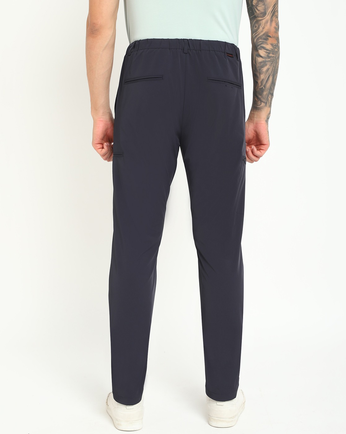Navy Blue Polyamide Solid Slim Fit Trouser