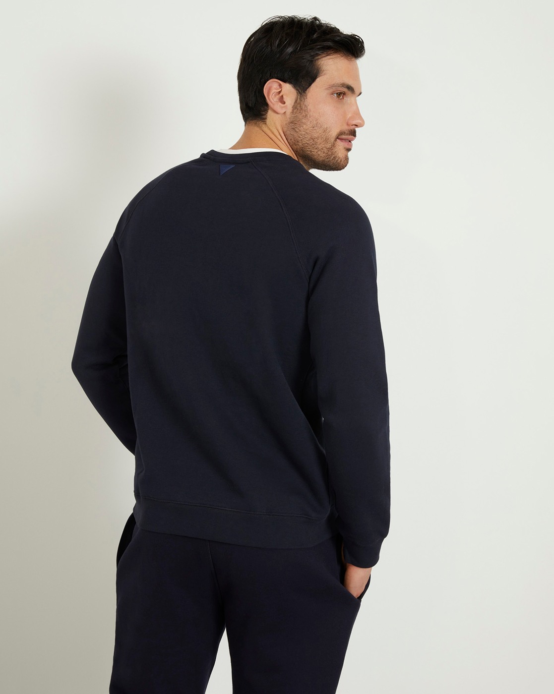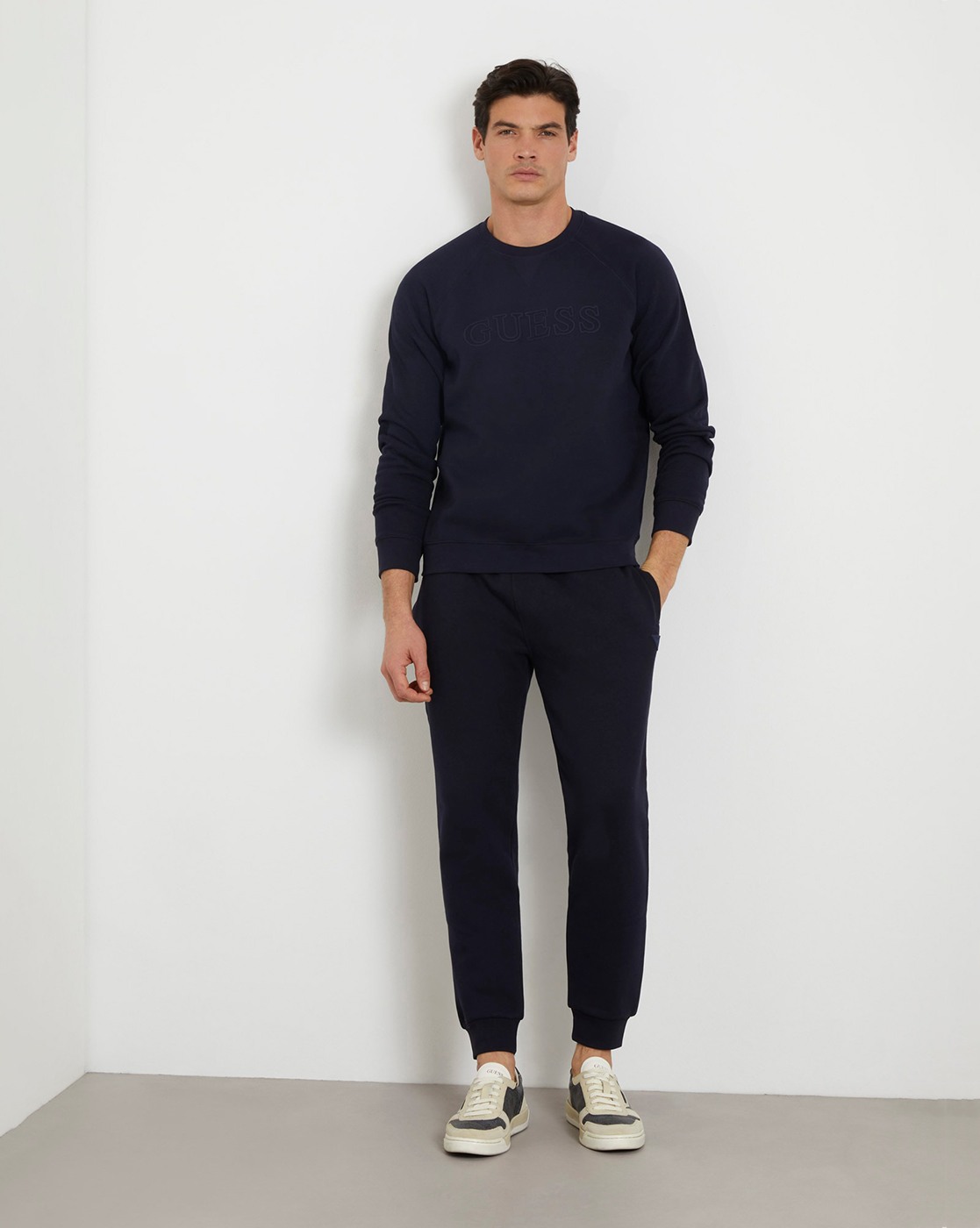 • Guess Men's Navy Blue Polycotton Printed Regular Fit Round Neck Full Sleeve Sweatshirt