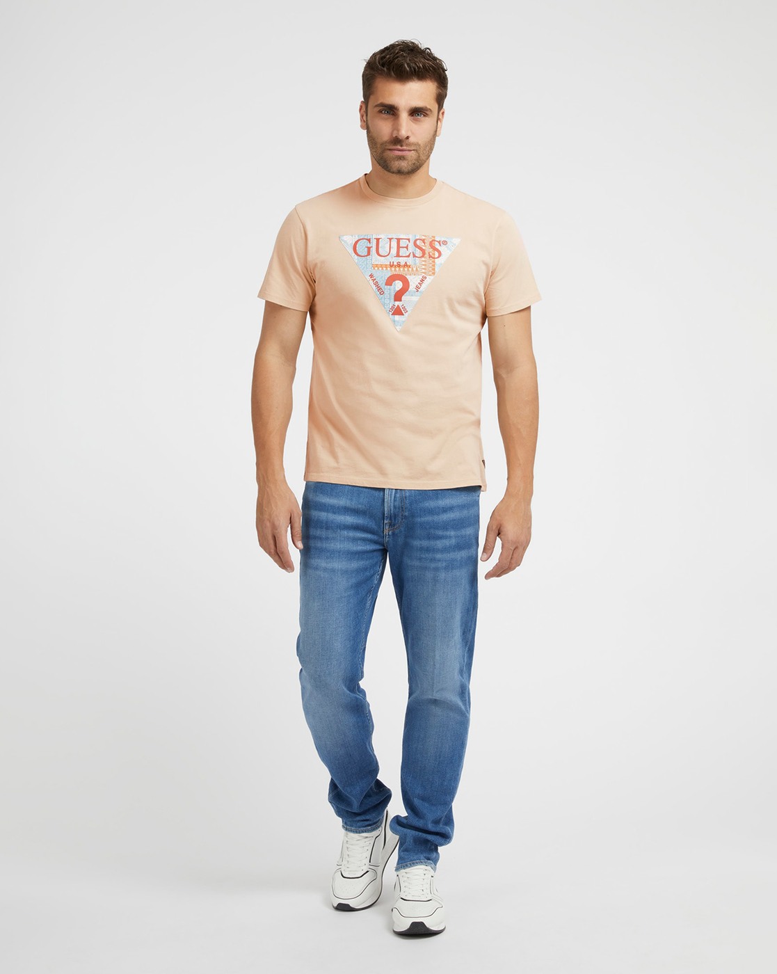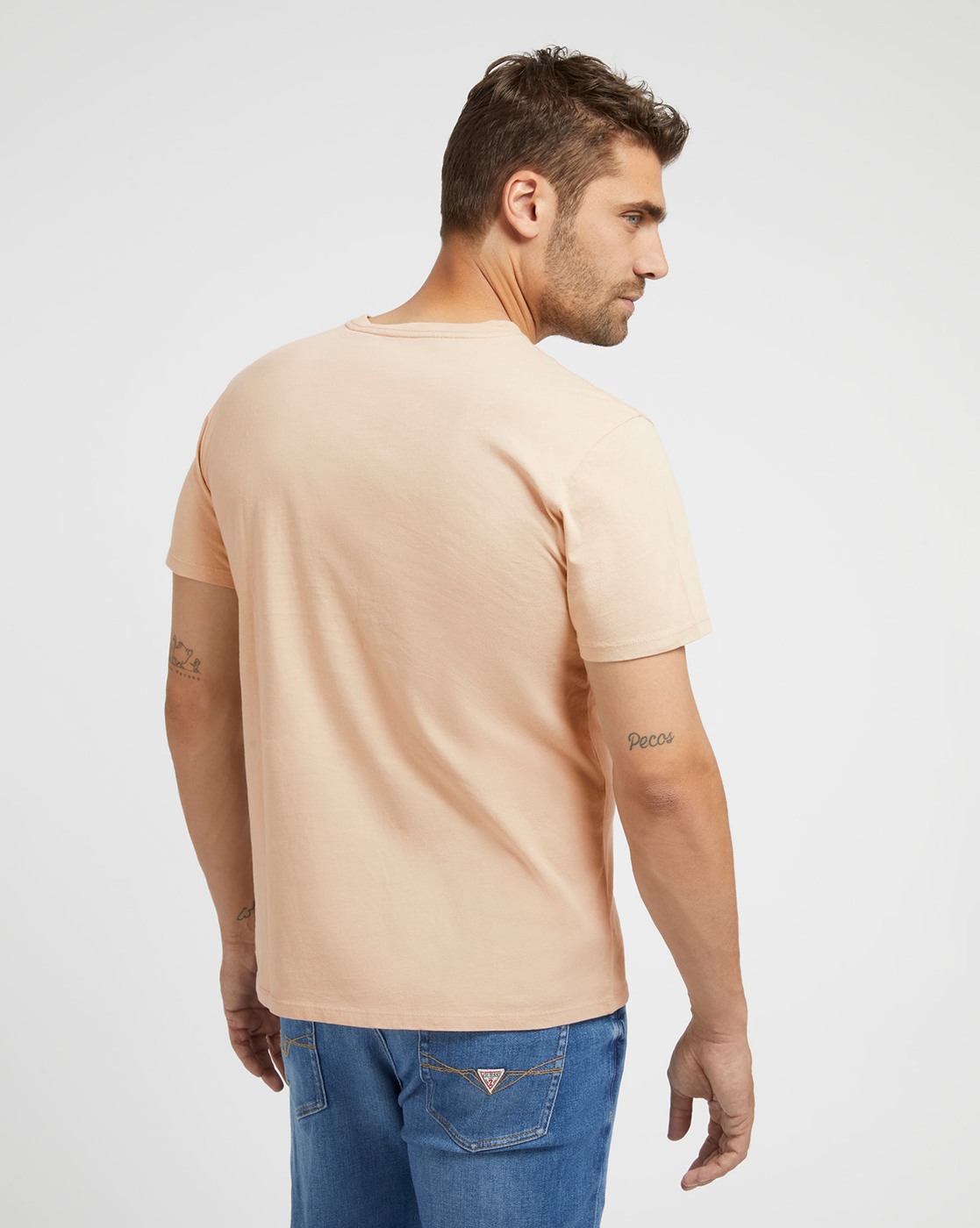 • Guess Men's Peach Cotton Printed Regular Fit Crew Neck Short Sleeve T-shirt