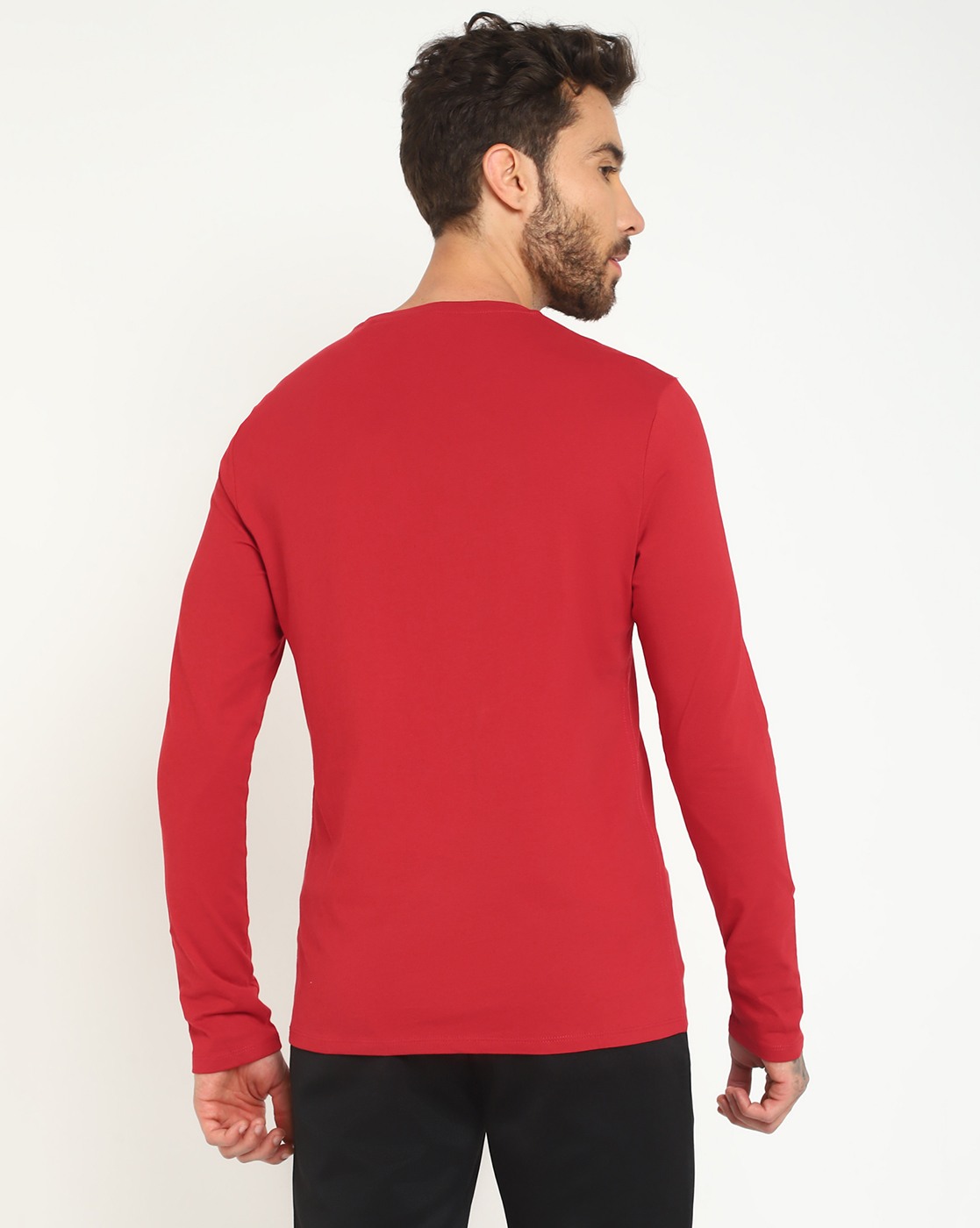 Men's Red Cotton Printed Slim Fit Round Neck Full Sleeve T-shirt