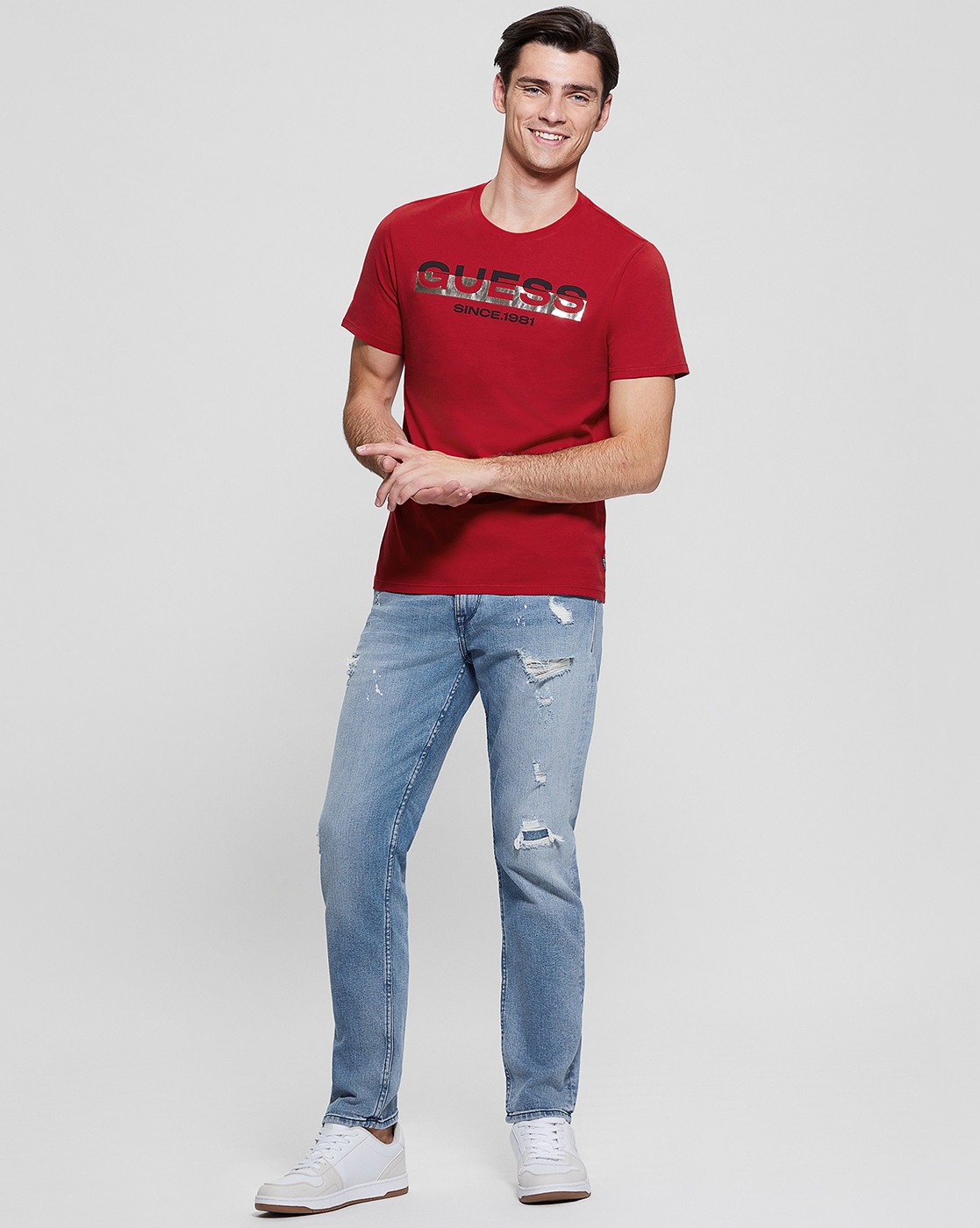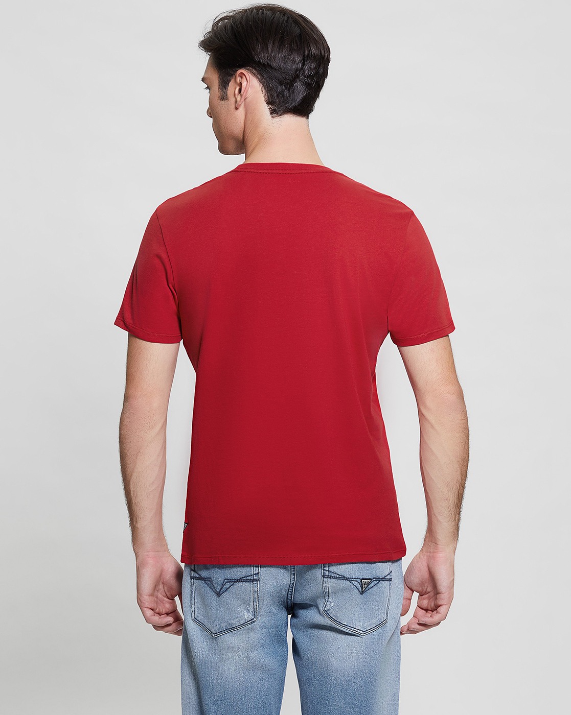 • Guess Men's Red Cotton Printed Slim Fit T-shirt