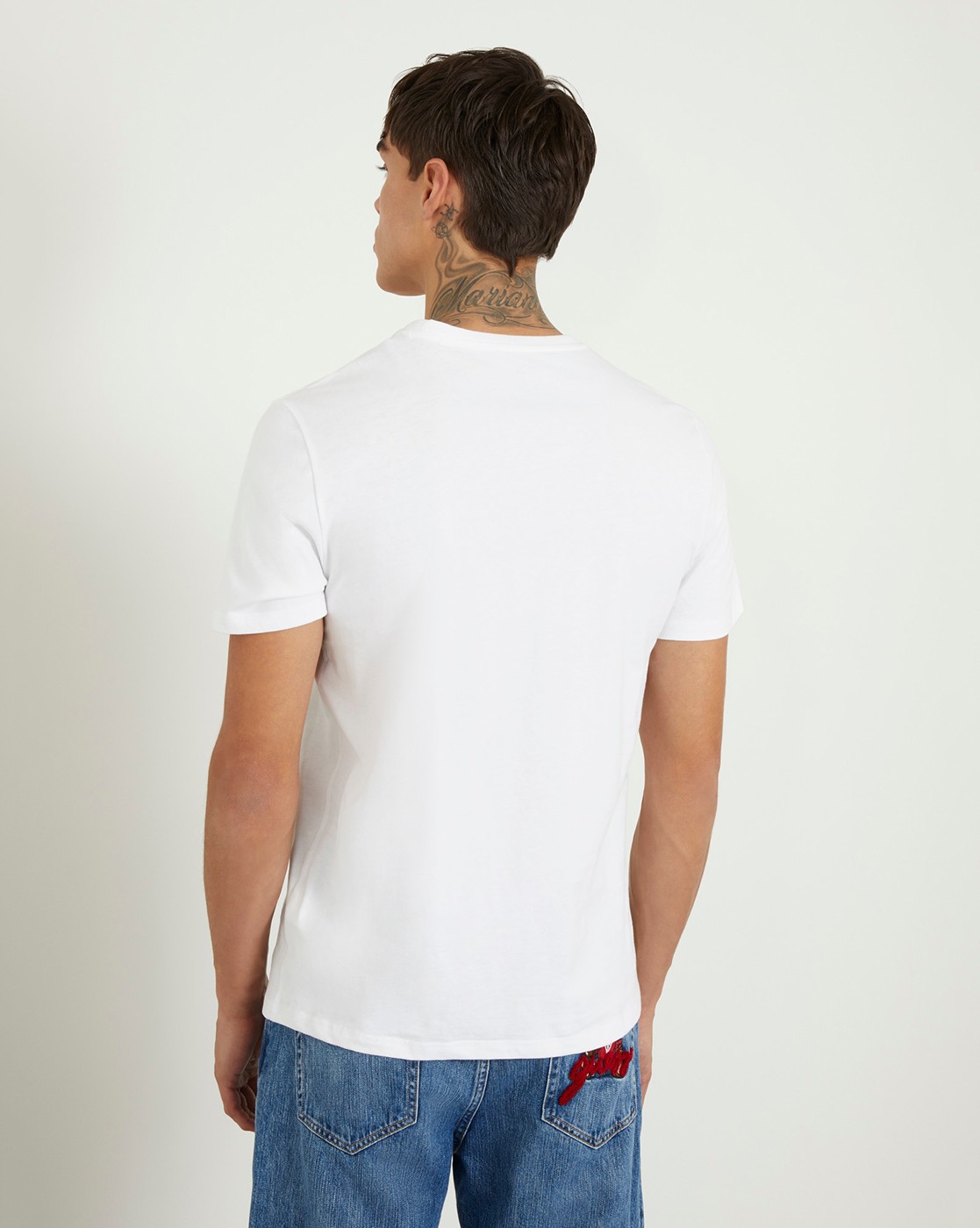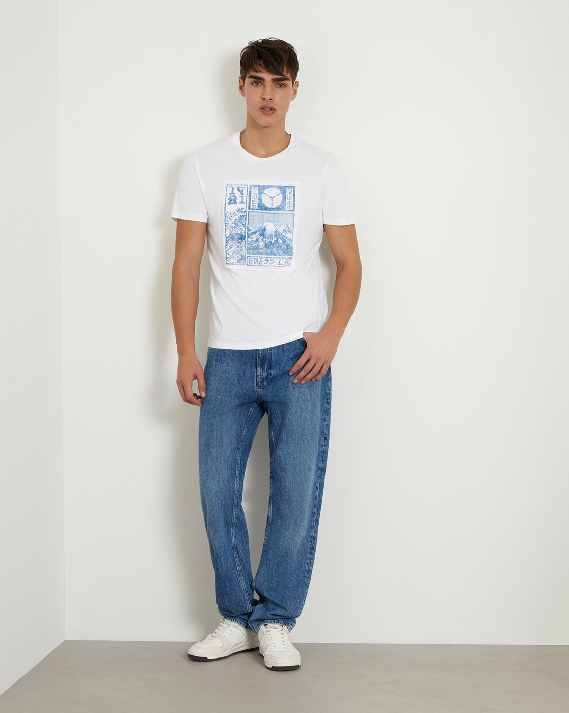 • Guess Men's White Cotton Graphic Slim Fit T-shirt