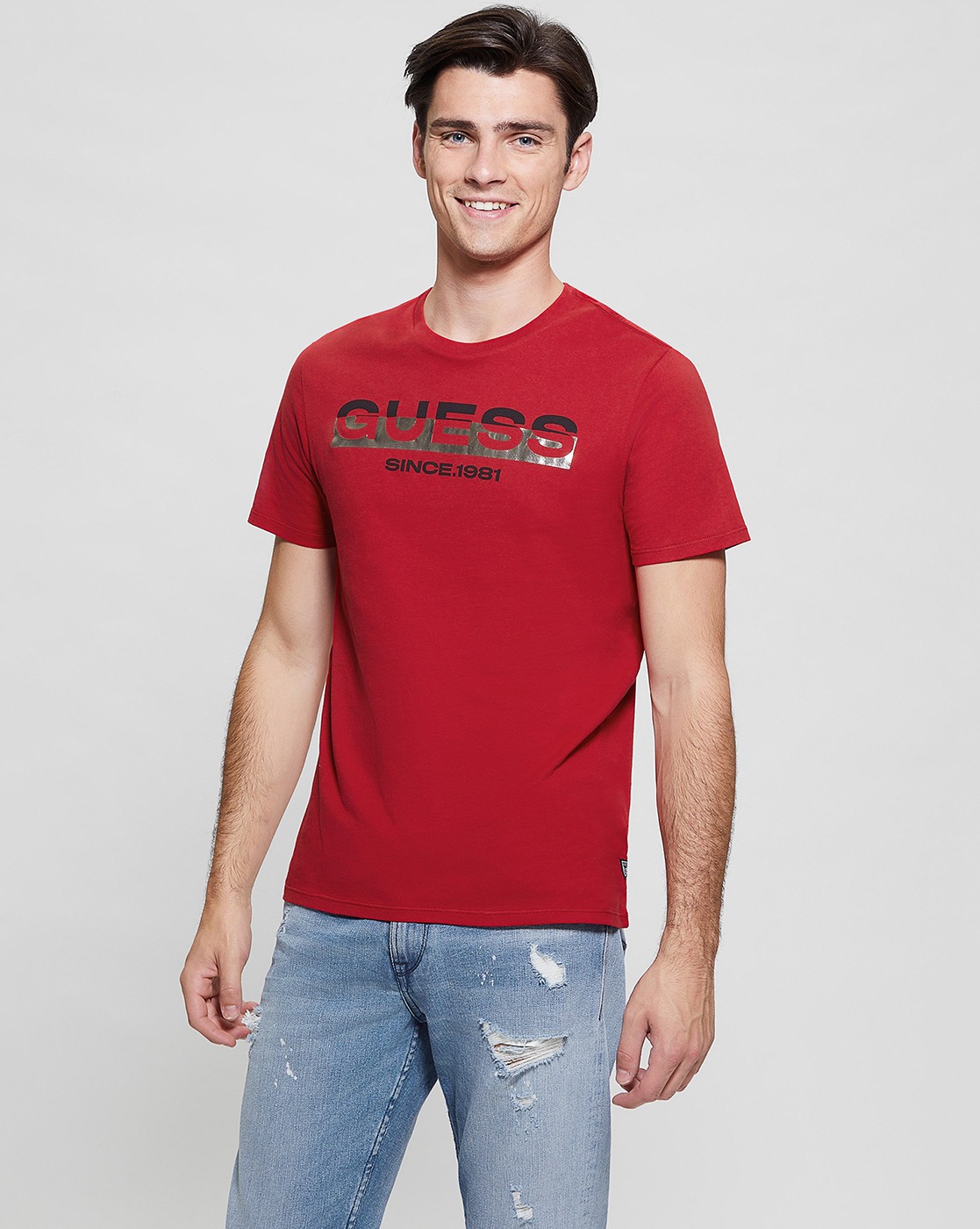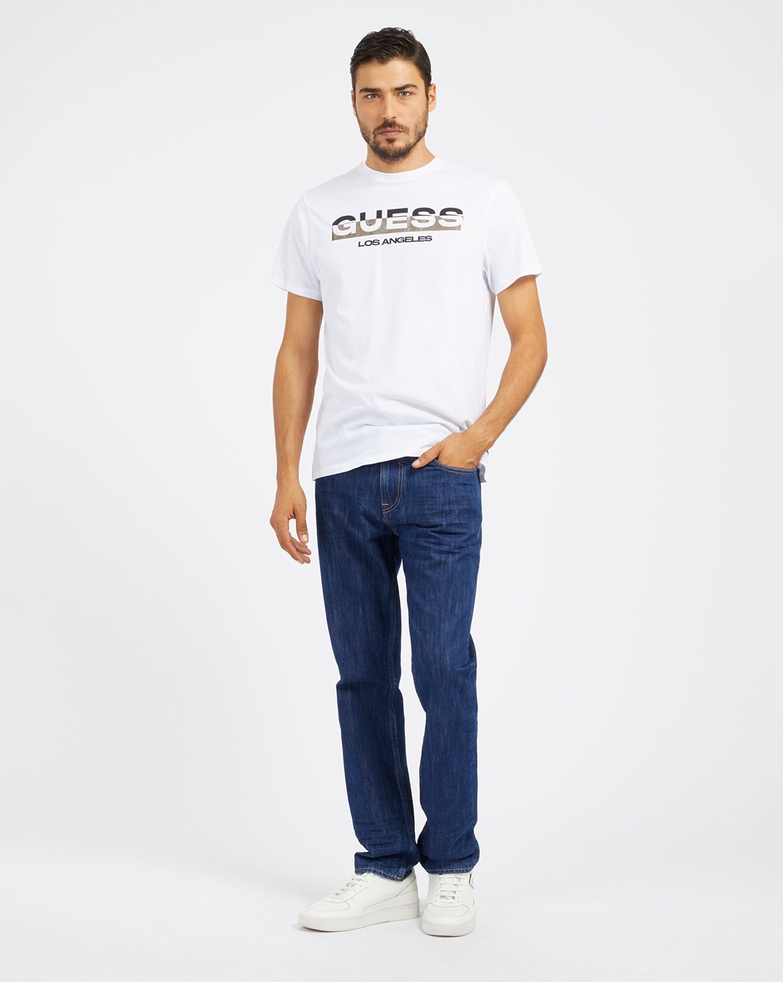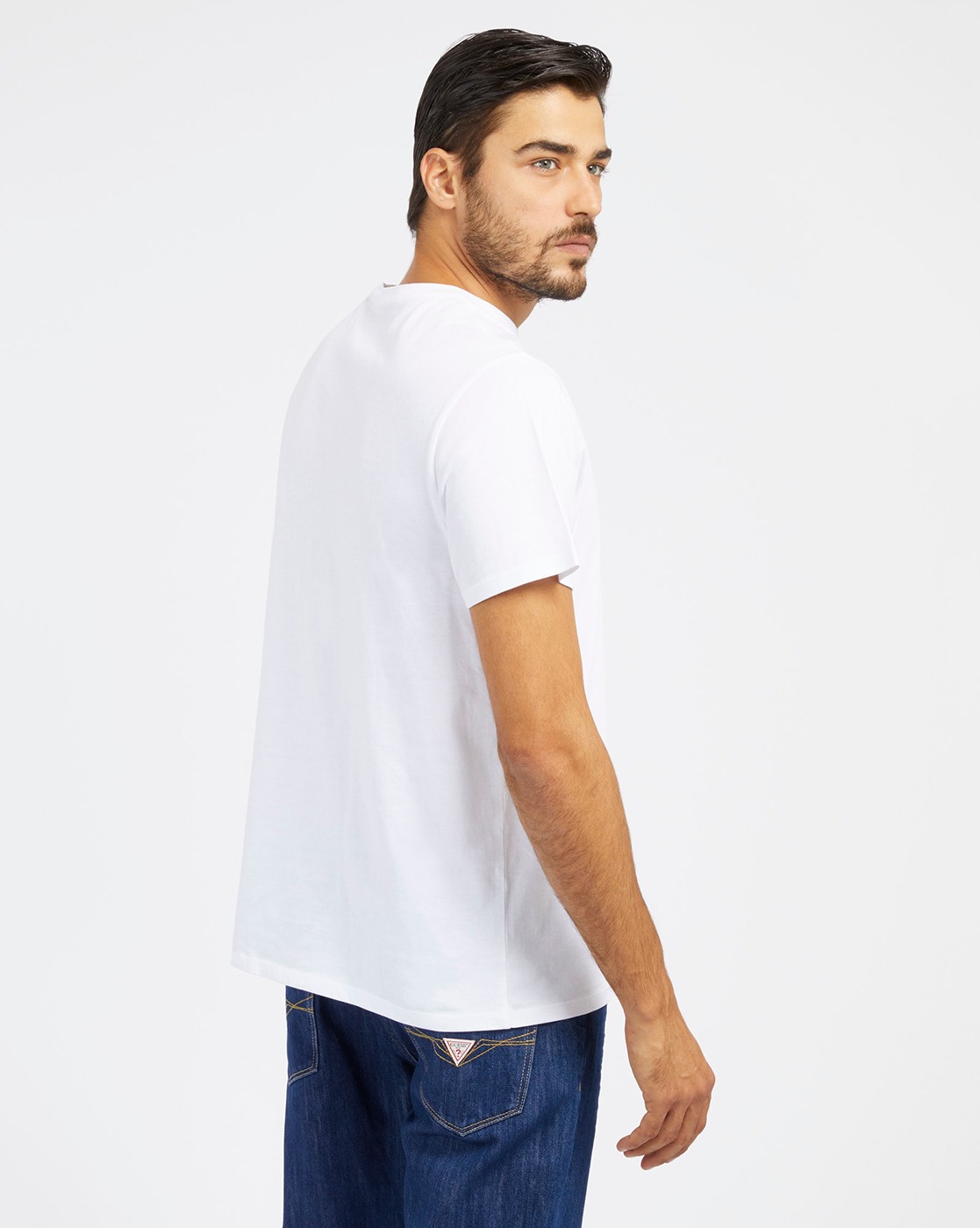 • Guess Men's White Cotton Printed Slim Fit T-shirt