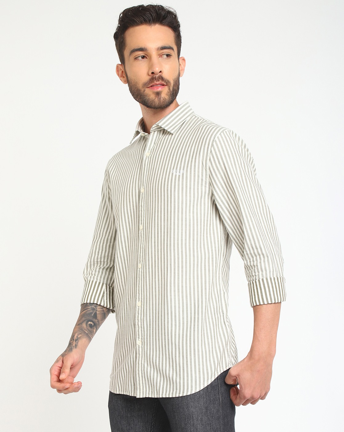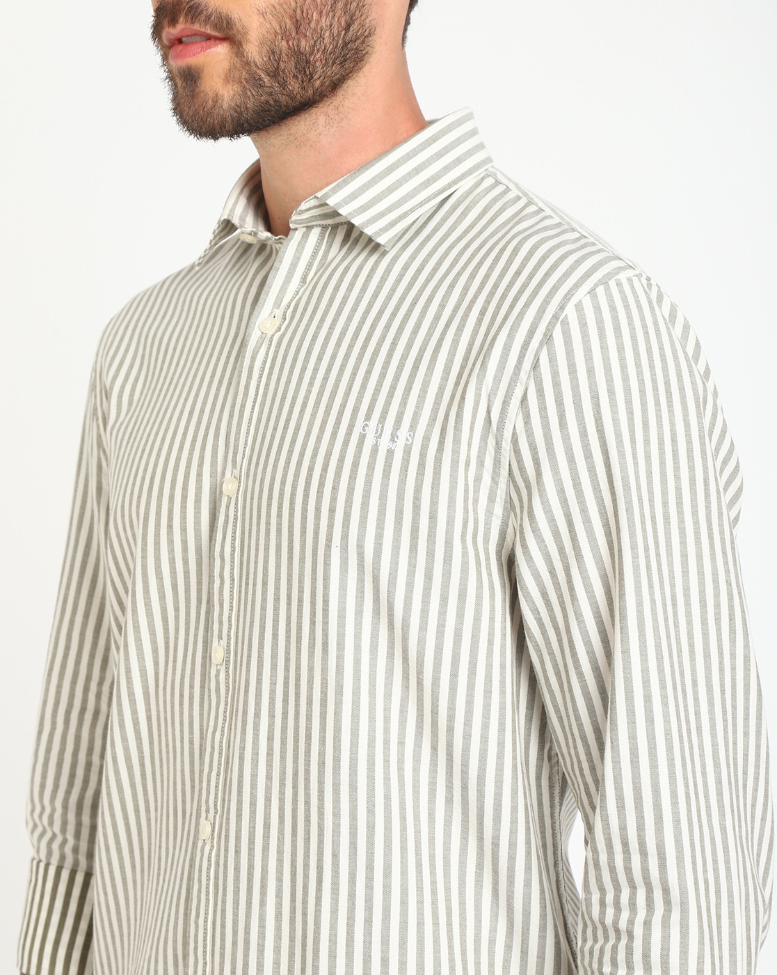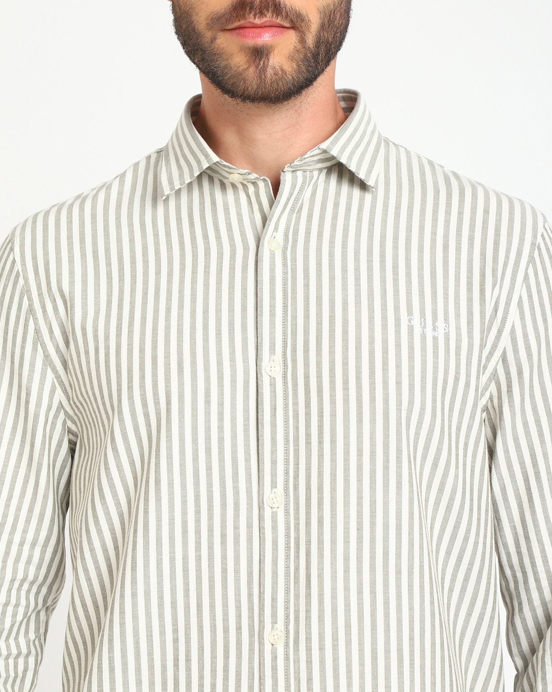 • Guess Men's White Cotton Stripes Regular Fit Full Sleeves Shirts