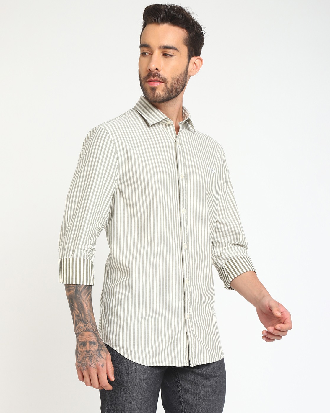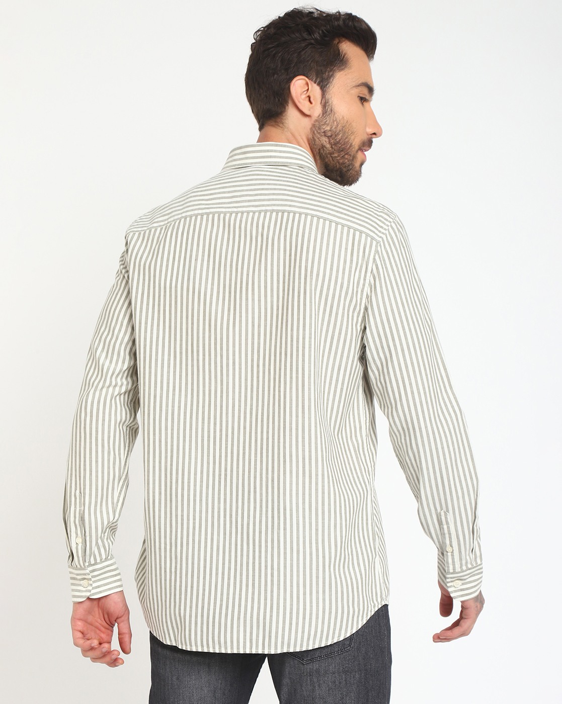 Men's White Cotton Stripes Regular Fit Full Sleeves Shirts