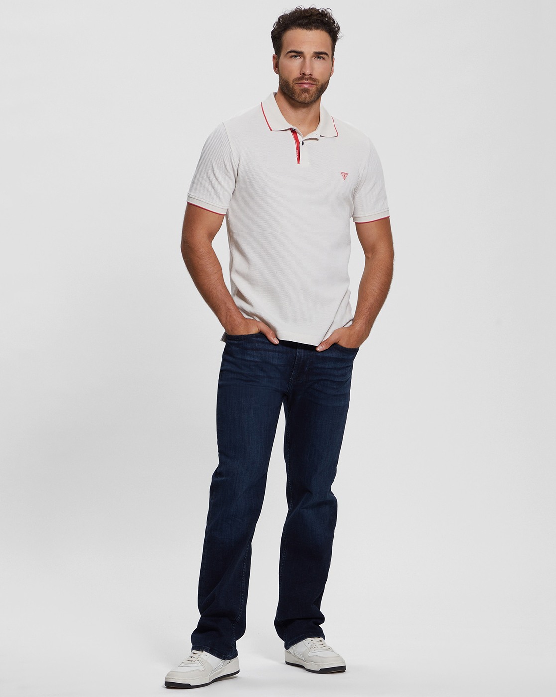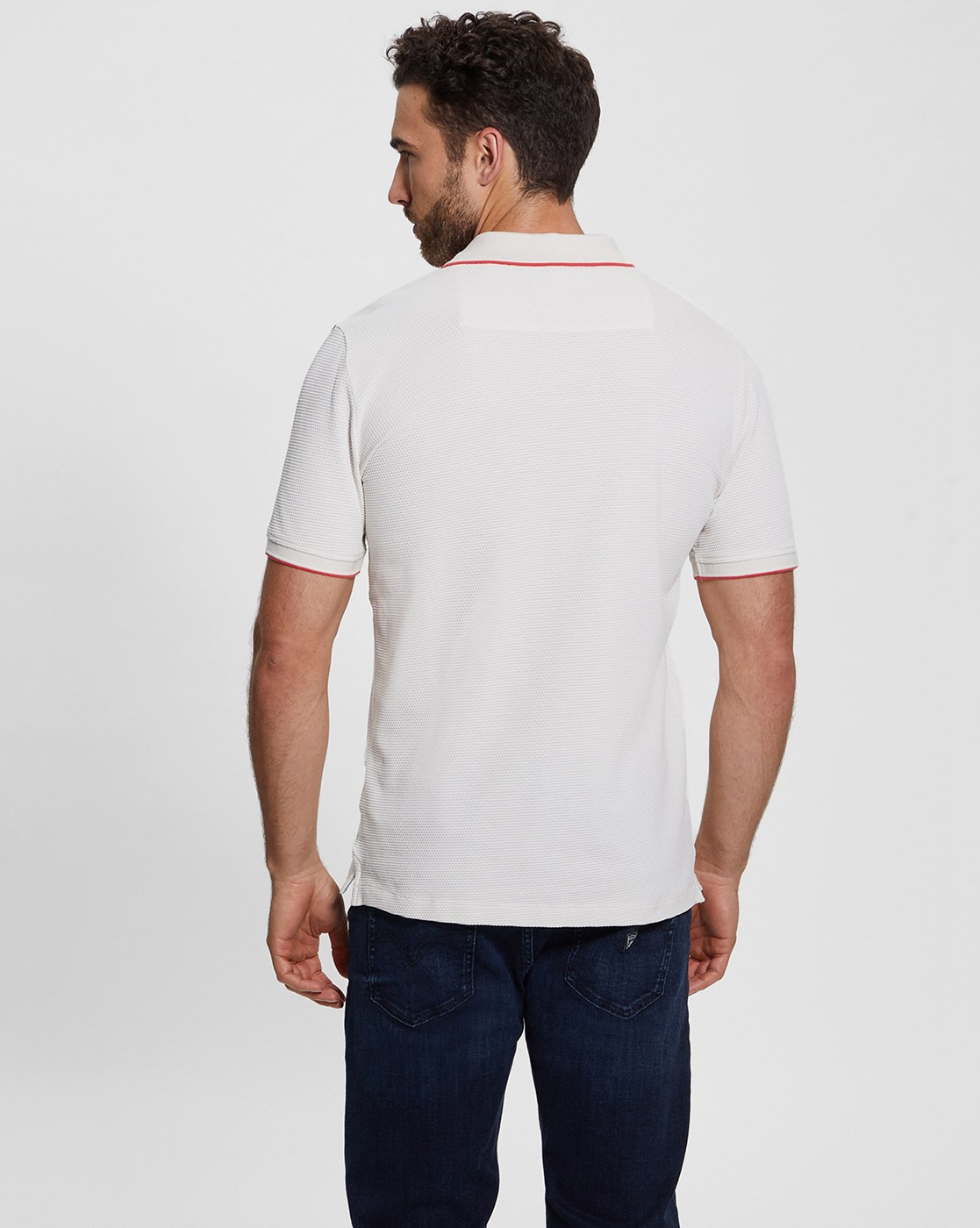 • Guess Men's White Cotton Textured Slim Fit Polo T-shirt