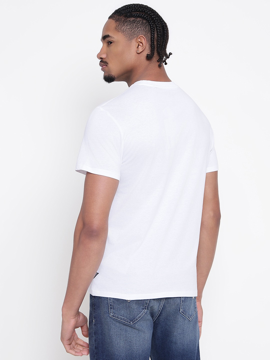 Men White Printed Round Neck T-shirt