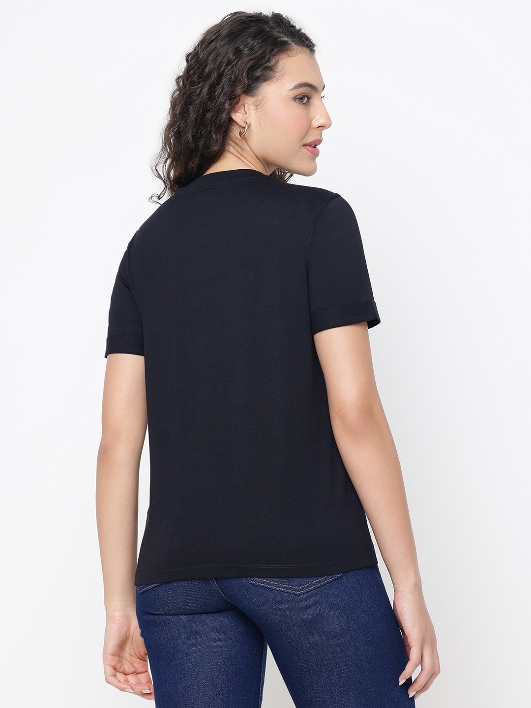Elevate your casual wardrobe with our women's regular fit typography t-shirt. Crafted from pure cotton, this tee offers ultimate comfort and breathability, perfect for everyday wear. The short sleeves and round neck design provide a classic silhouette, while the eye-catching typography pattern adds a modern twist. With a convenient pull-on closure, this t-shirt ensures easy wearability. Whether paired with jeans or shorts, this versatile piece is a must-have for effortless style and comfort.