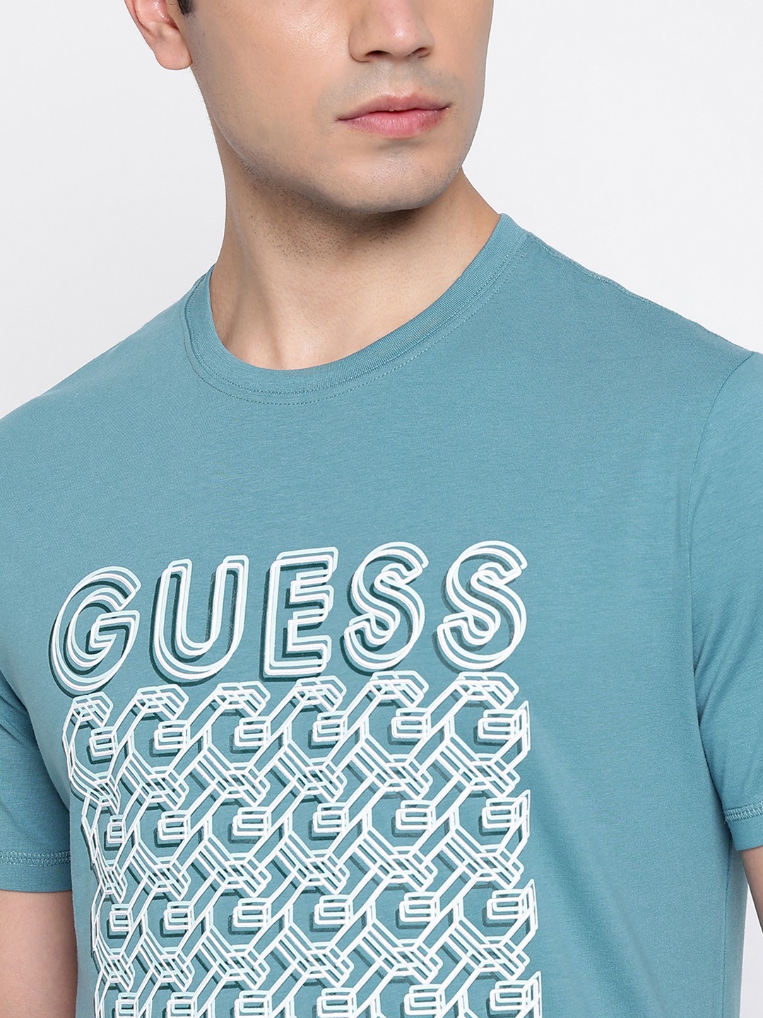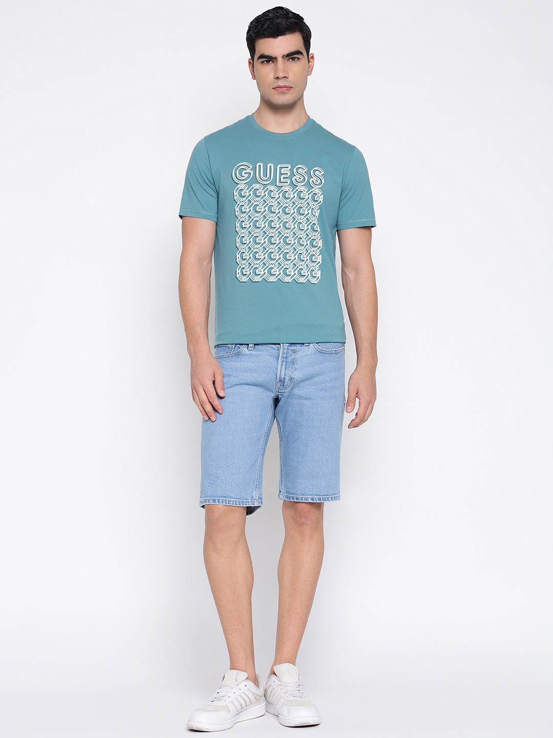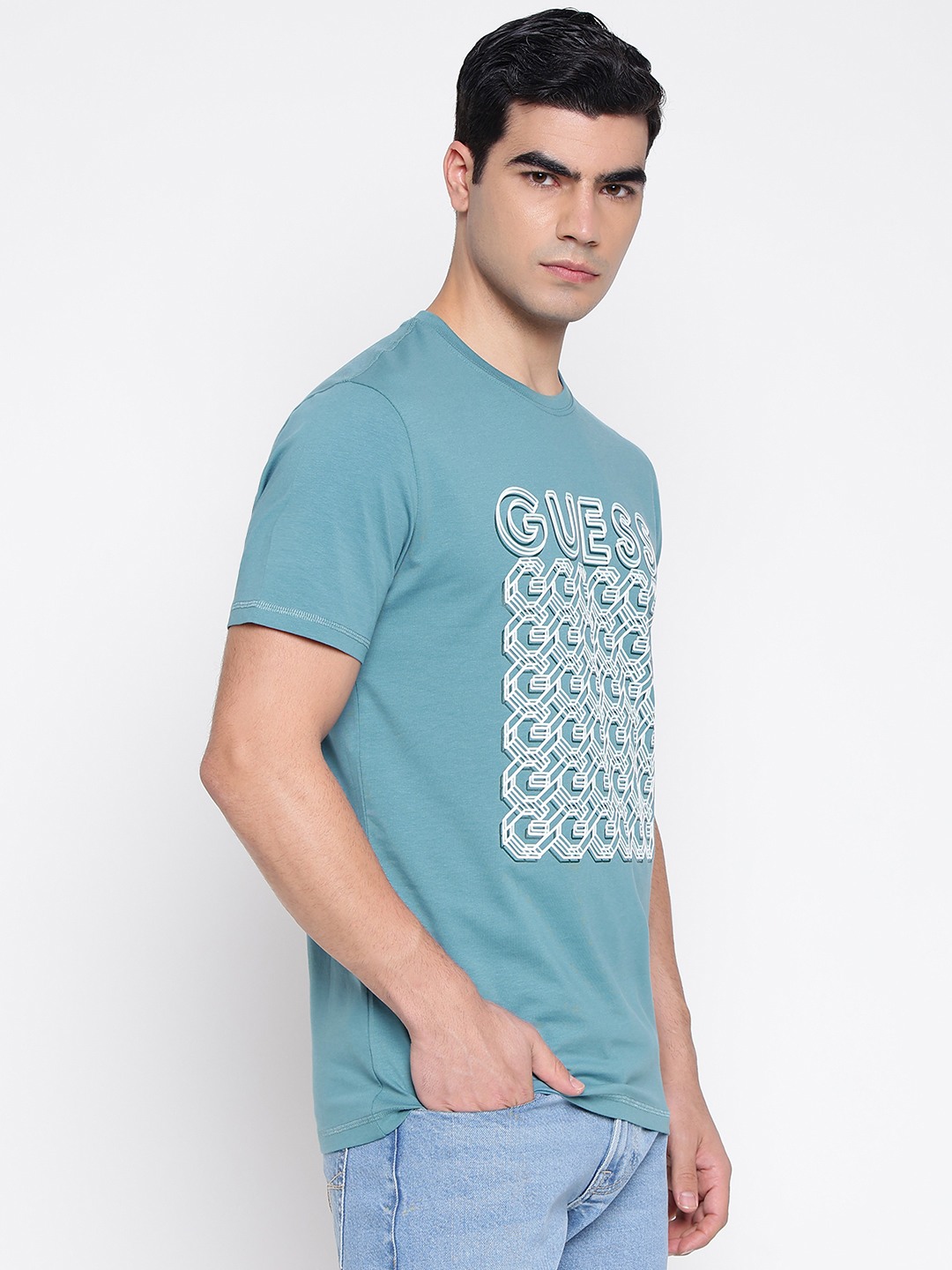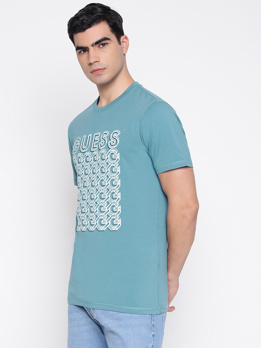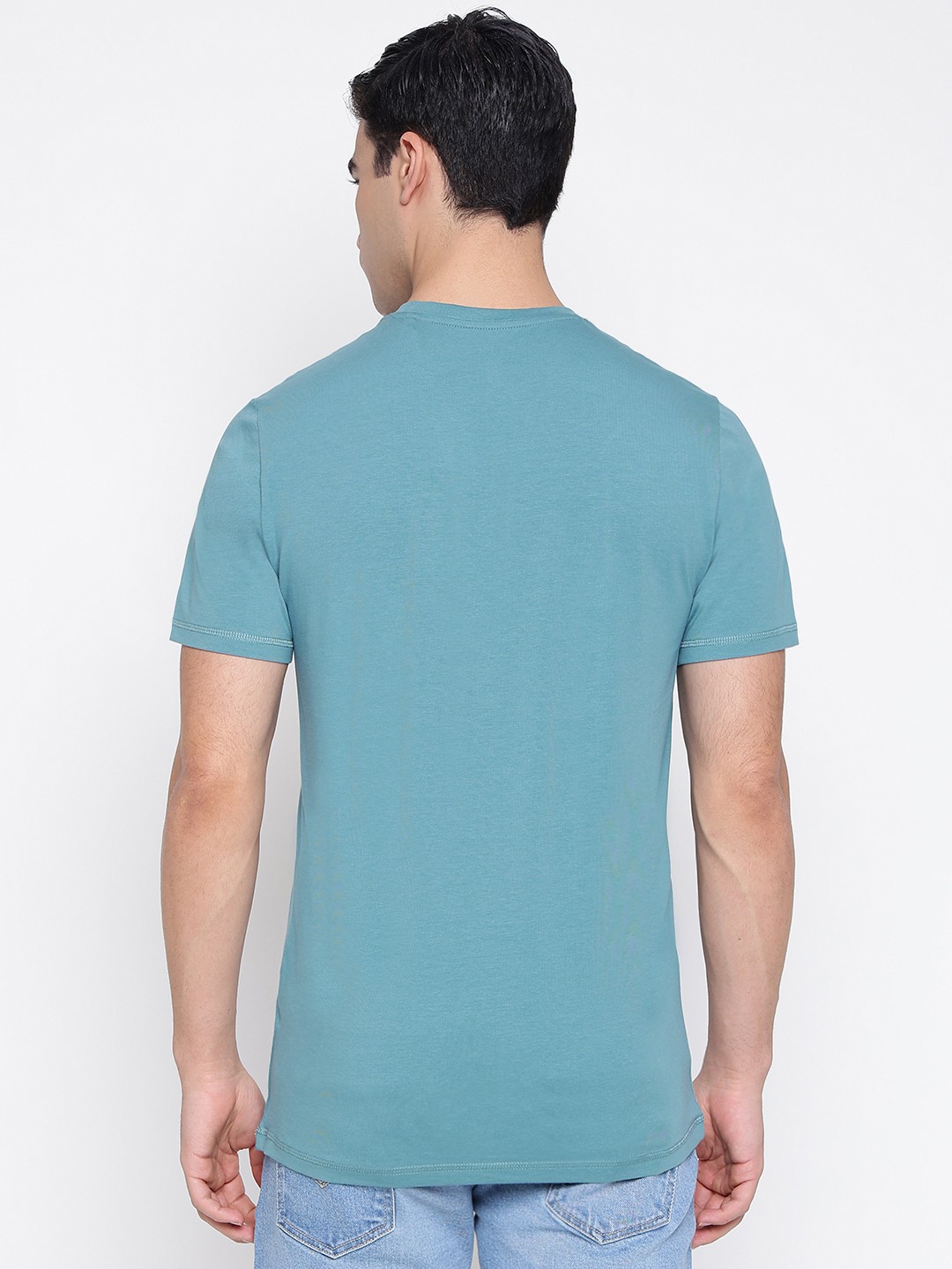 Mid Organic Stretch Soft Teal G Chain/ Geometric Round Neck Slim Fit T-Shirt