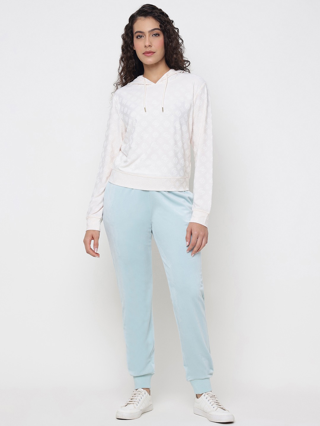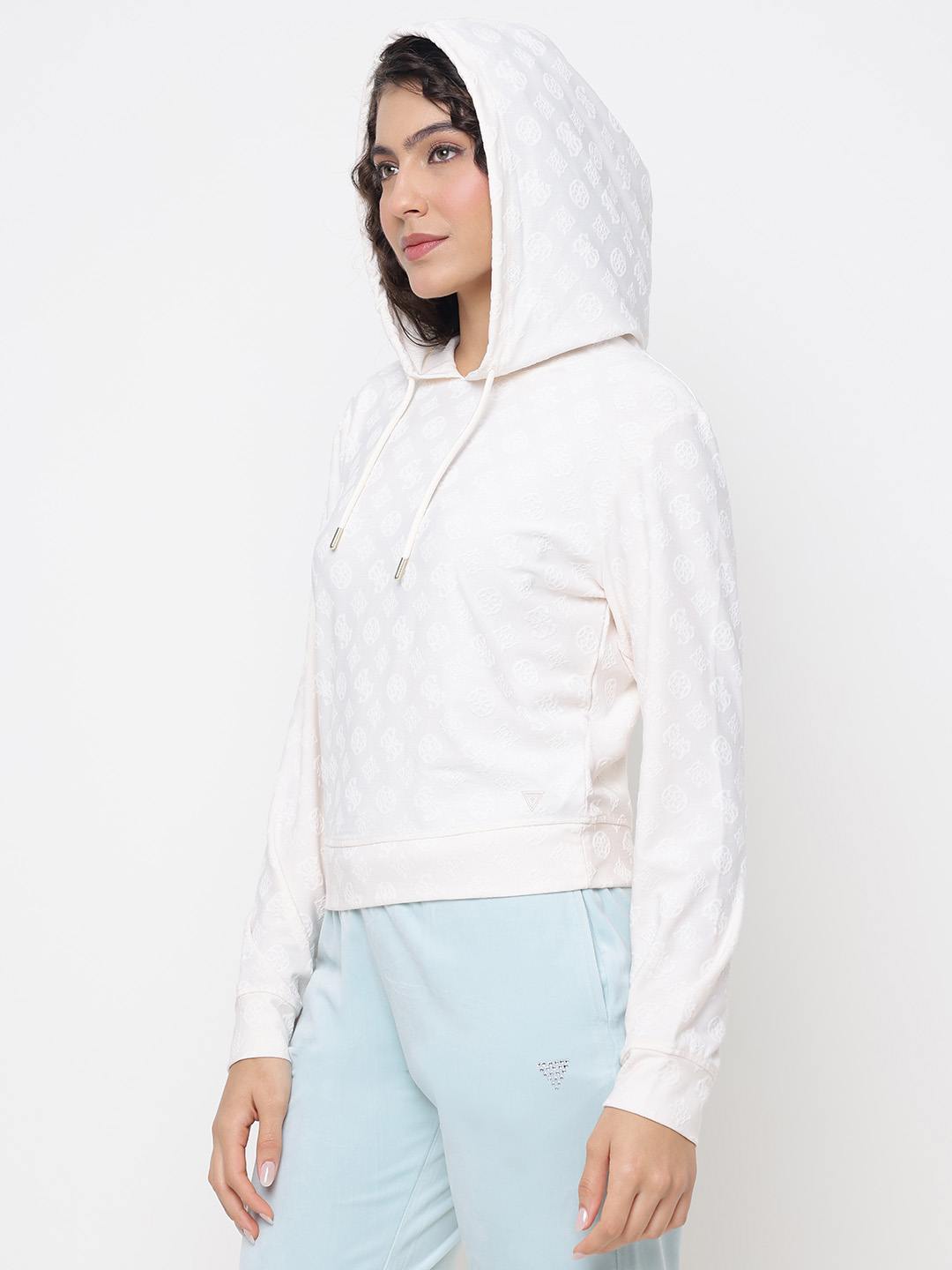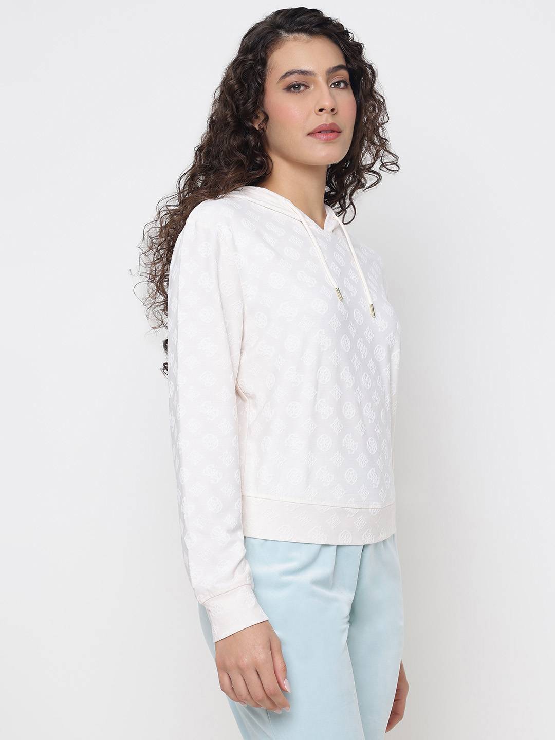 Elevate your casual wardrobe with our stylish women's sweatshirt, designed in a regular fit for ultimate comfort. Featuring a chic textured logo pattern, this sweatshirt adds a touch of modern flair to any outfit. Crafted from high-quality polyester fabric, it ensures durability and a soft feel against the skin. The full sleeves and hooded neck provide extra warmth and versatility, making it perfect for any season. With a convenient pull-on closure, this sweatshirt is easy to wear, offering both style and practicality for your everyday adventures.
