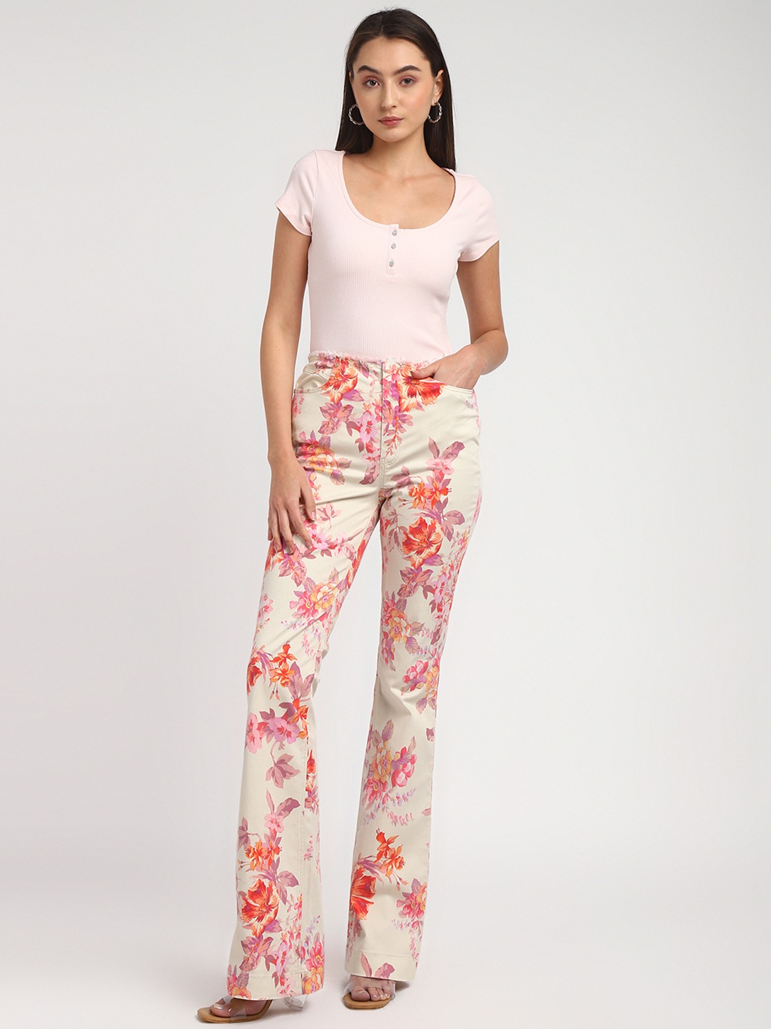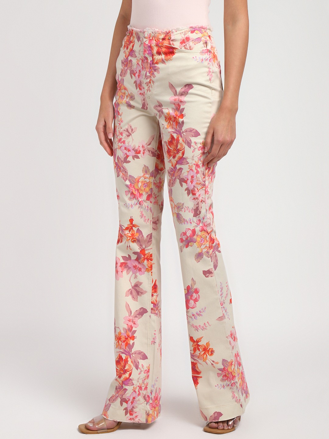Multi-Color Printed High-Rise Regular Length Flared Leg Trouser
