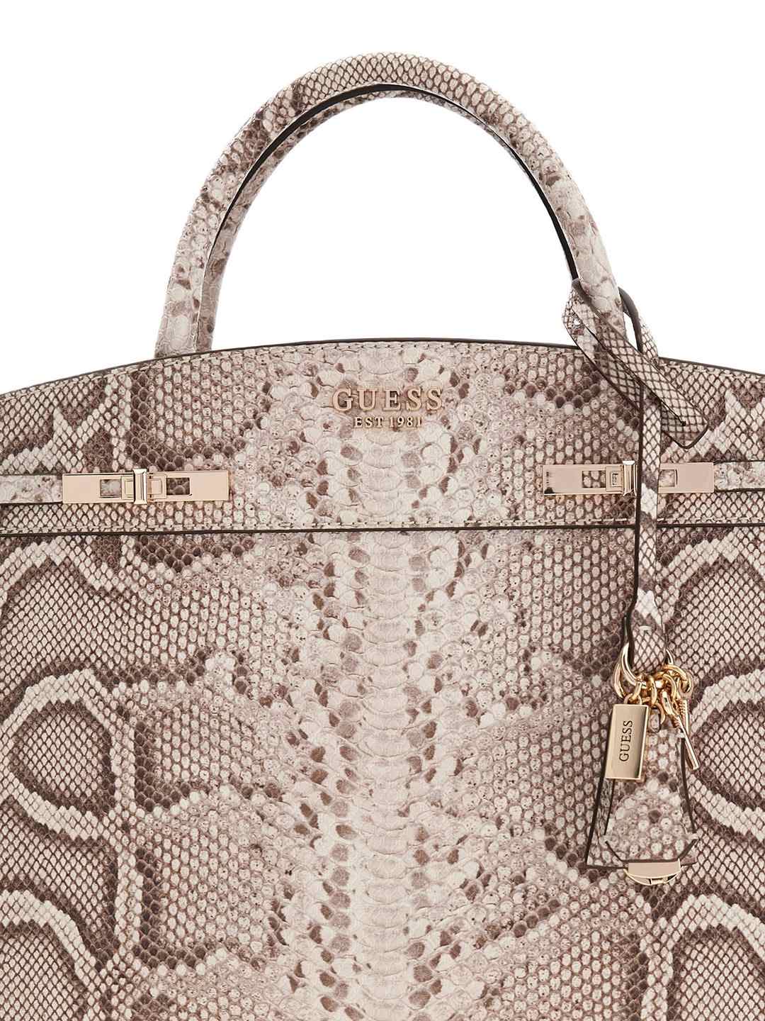 Natural Printed Zipper Melinda Triple Comp Satchel Bag