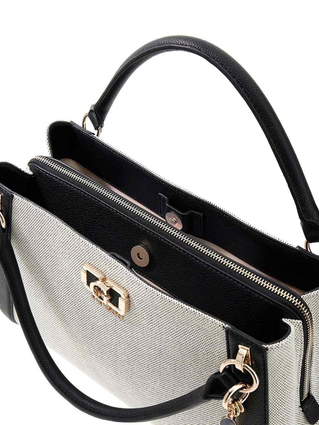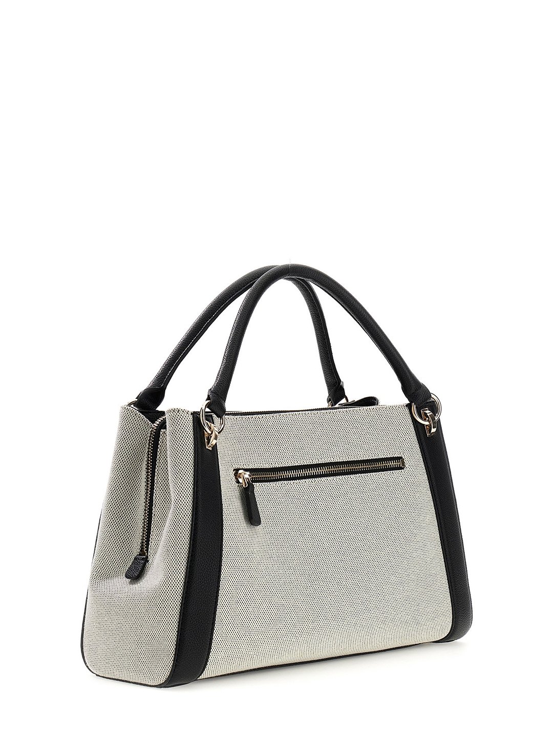 Discover the perfect blend of style and functionality with our satchel bag in off white black. Crafted from premium cotton fabric, this bag features a unique textured pattern that adds a touch of sophistication to any outfit. Designed for the modern woman, it offers ample space for your essentials while maintaining a sleek silhouette. The versatile color palette ensures it complements any wardrobe, making it an ideal choice for both casual outings and professional settings. Elevate your accessory game with this chic and practical satchel bag.