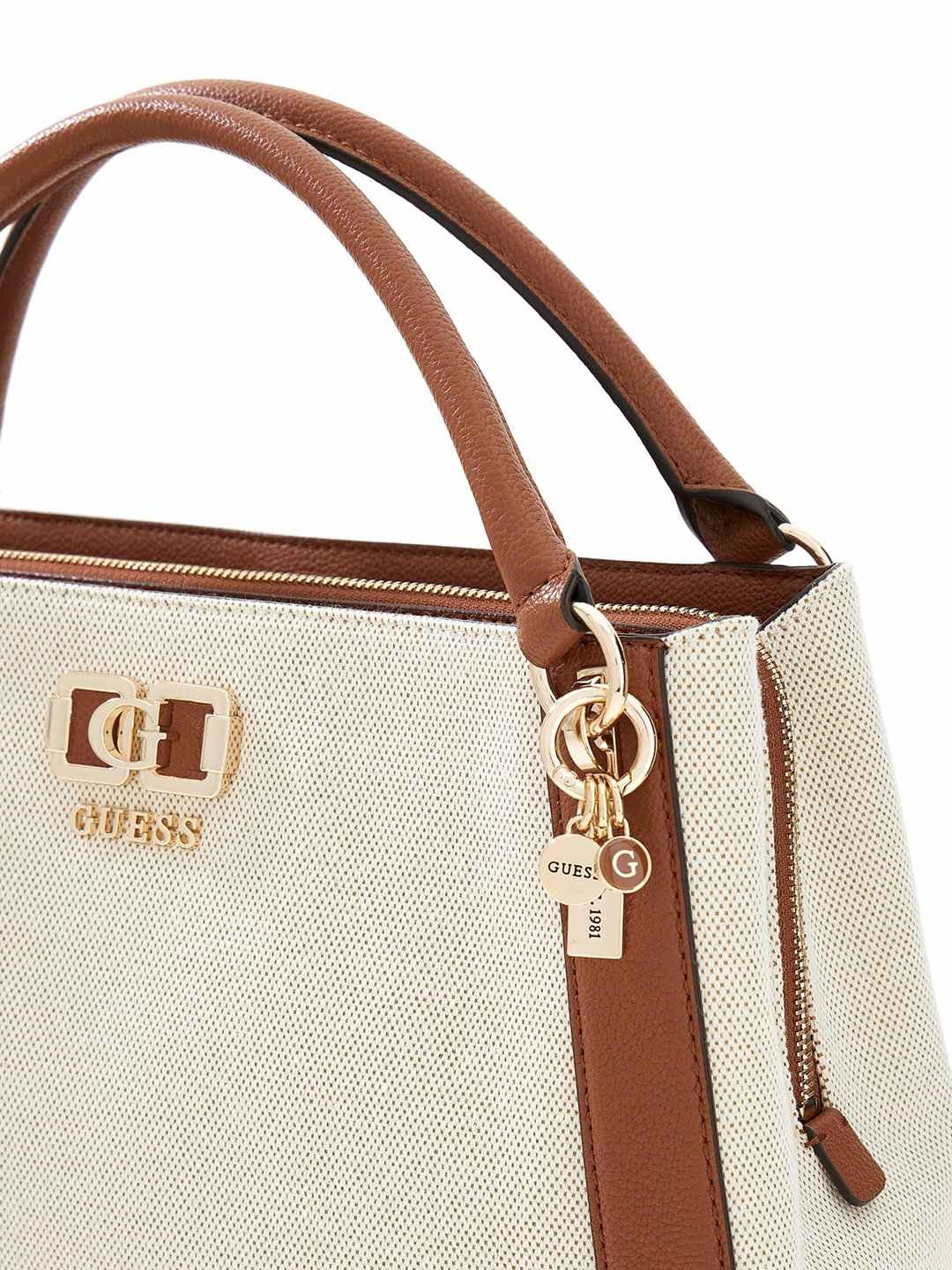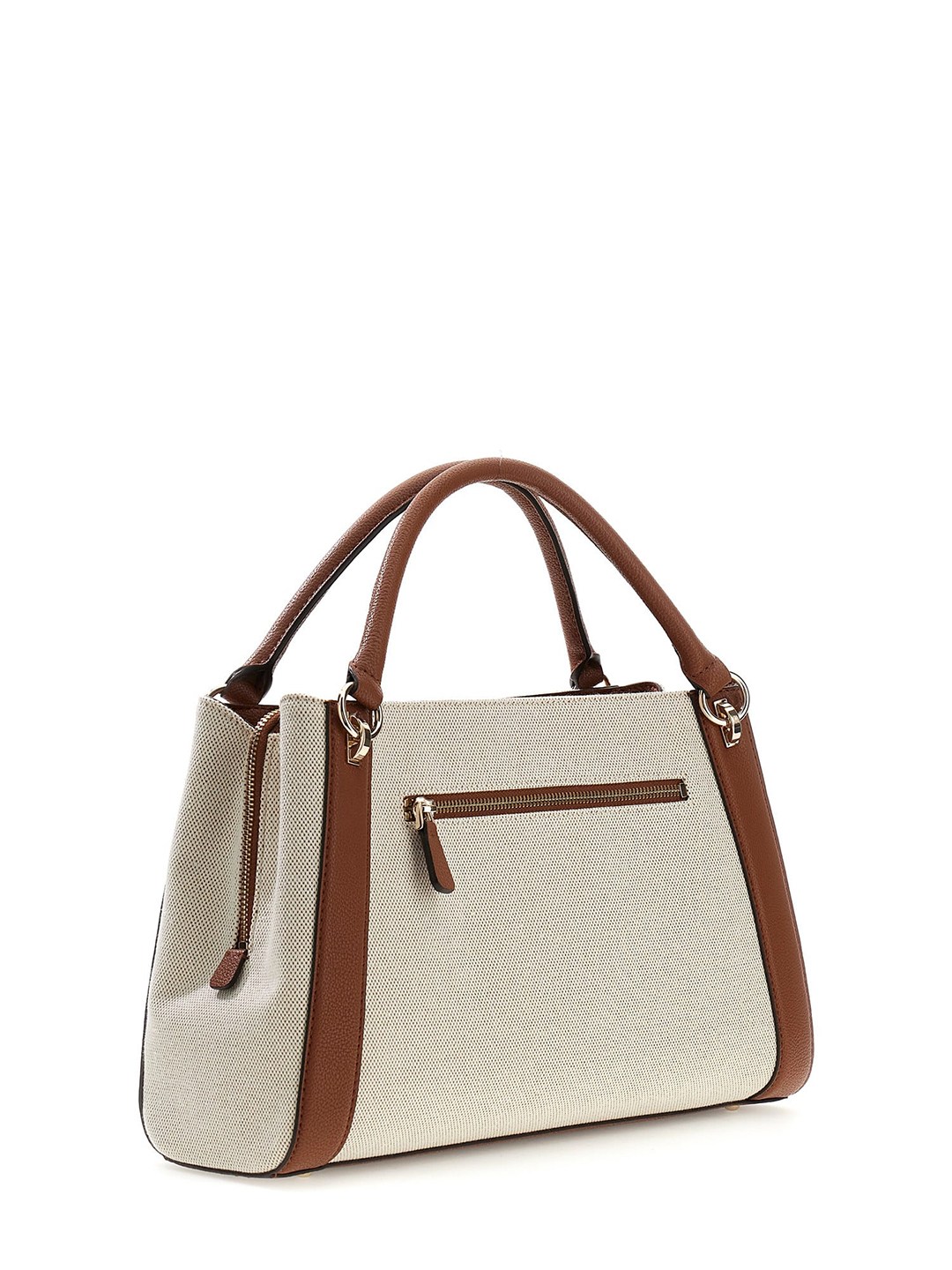 Discover the perfect blend of style and functionality with our satchel bag in off white brown. Crafted from premium cotton fabric, this bag features a unique textured pattern that adds a touch of elegance to any outfit. Designed for the modern woman, it offers ample space for your essentials while maintaining a sleek silhouette. The adjustable strap ensures comfort, whether you're heading to work or a weekend getaway. Its versatile color palette complements any wardrobe, making it a must-have accessory for every occasion.