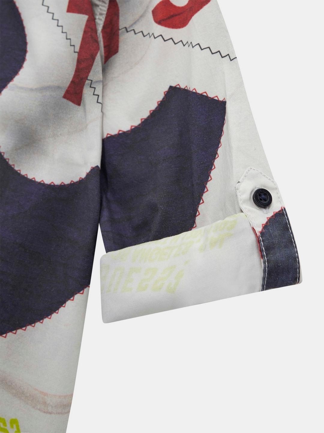 Navy Boats Cotton Blend Printed Poplin Shirt