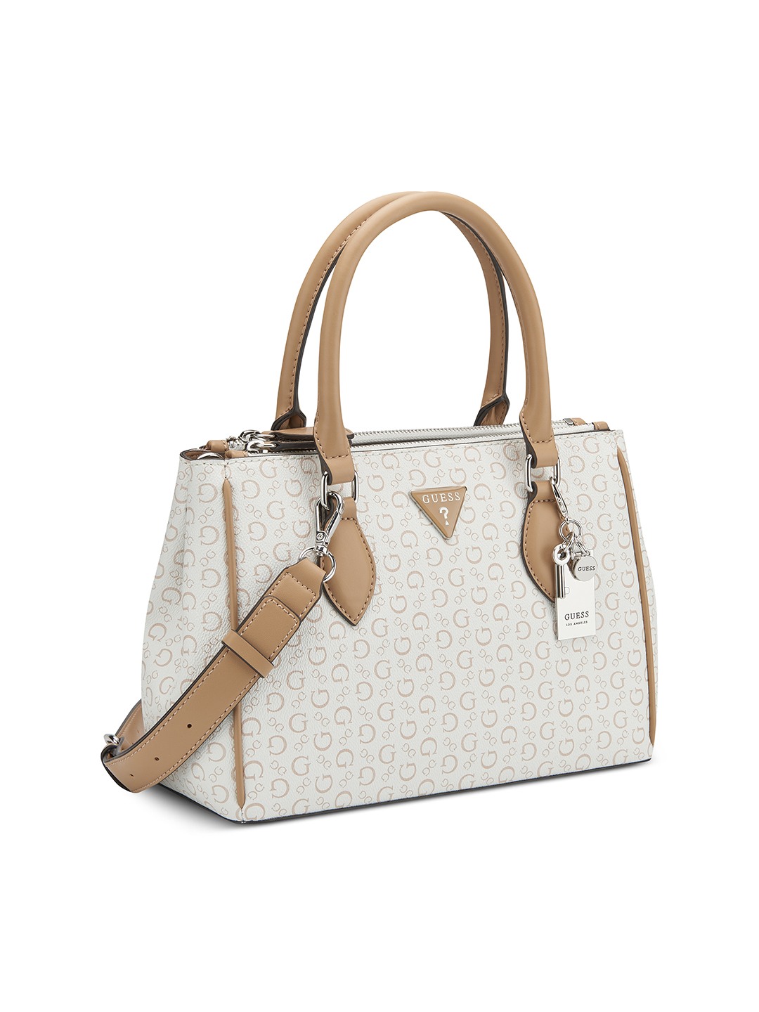 Discover elegance with our off white satchel bag crafted from durable PVC fabric. Featuring a chic monogram logo pattern, this versatile accessory is perfect for any occasion. Its spacious interior and stylish design make it an ideal choice for the modern woman seeking both functionality and fashion in one stunning piece.