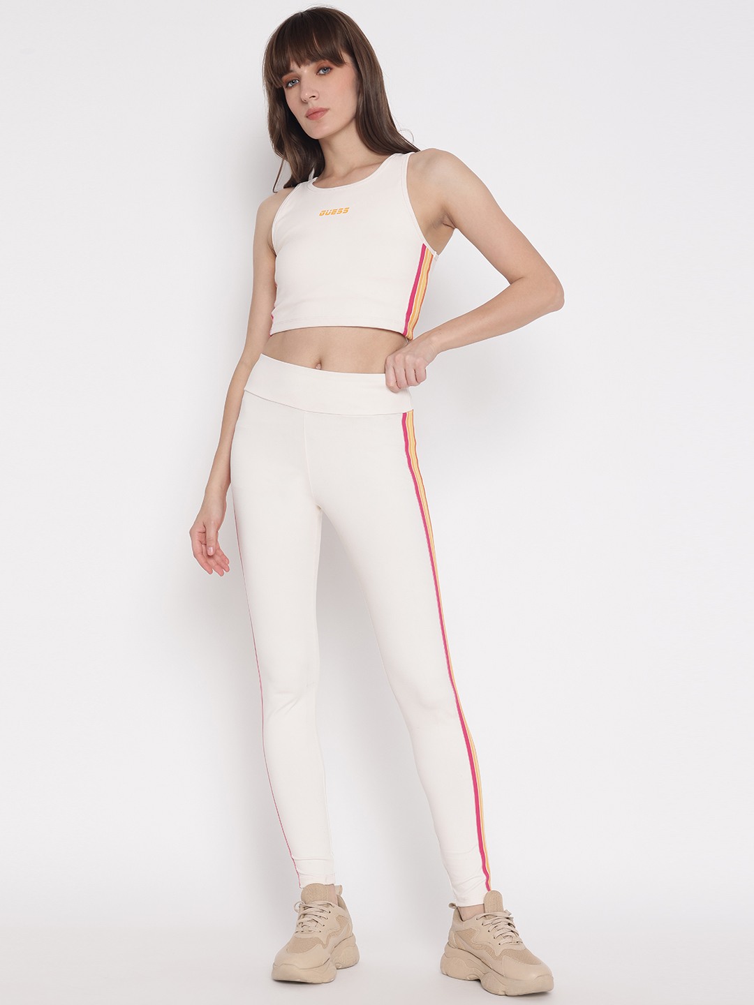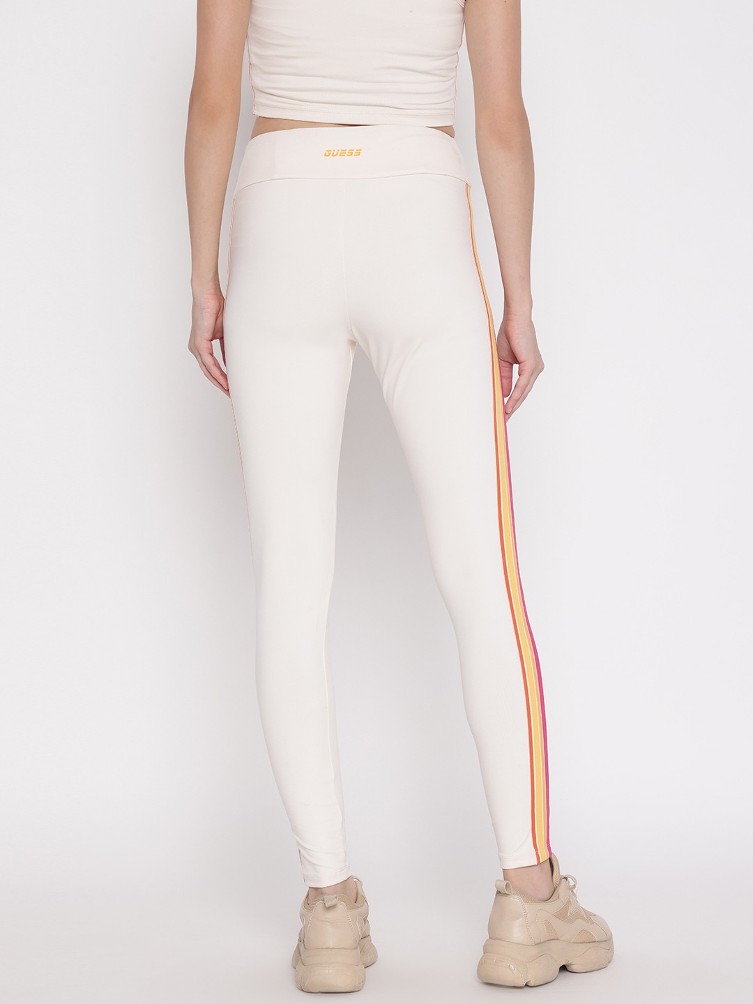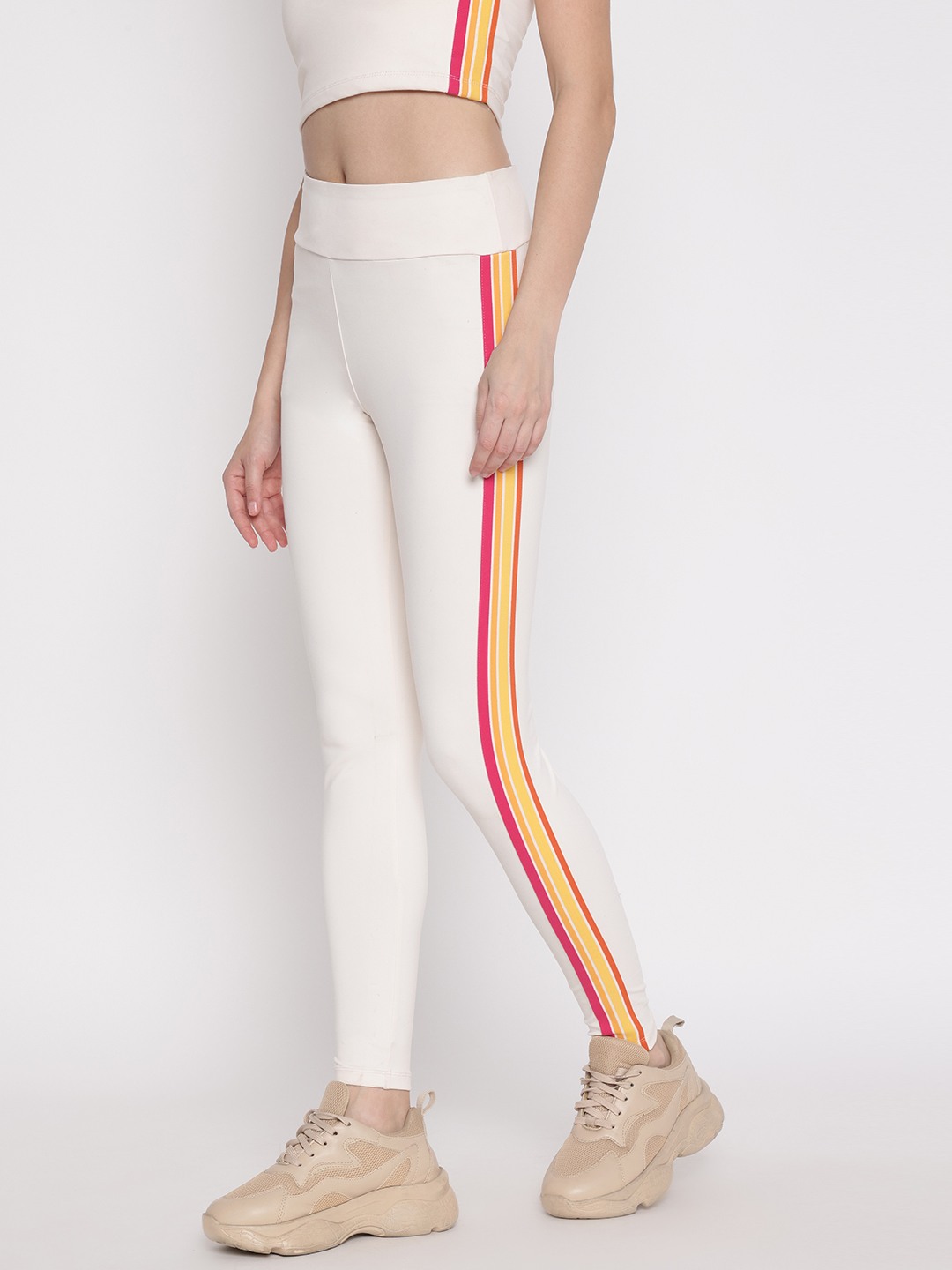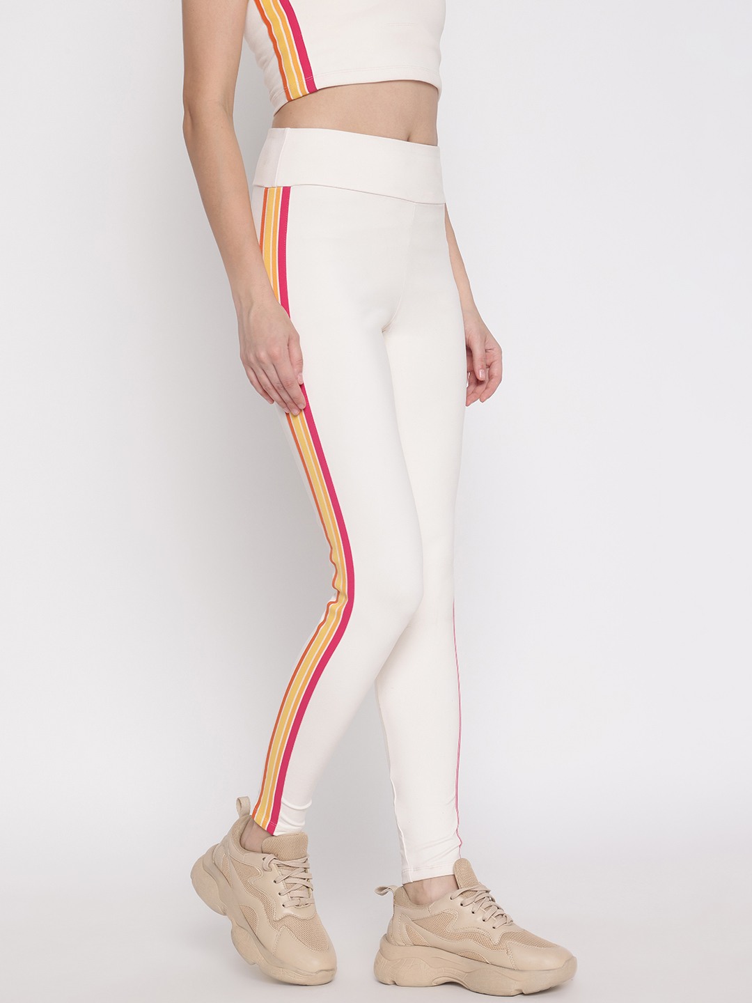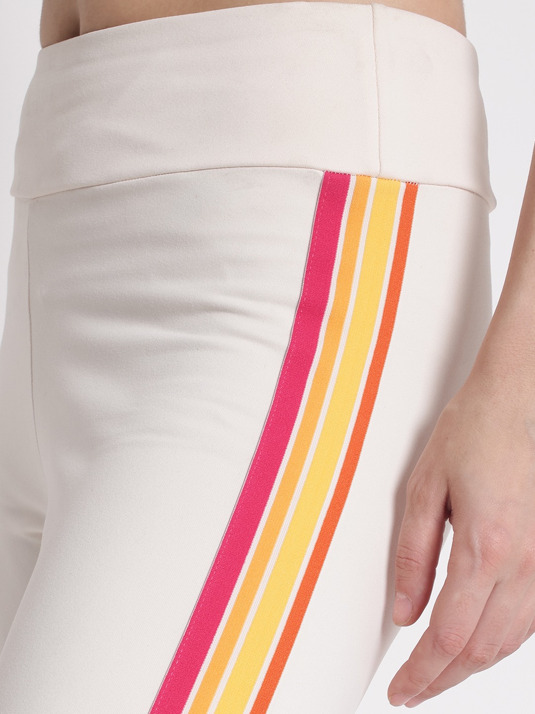 Discover the perfect blend of style and comfort with our off-white skinny fit leggings. Designed for the modern woman, these leggings feature a chic striped pattern that adds a touch of elegance to any outfit. The mid-rise waist ensures a flattering fit, while the elastic closure provides ease and flexibility for all-day wear. Crafted from a premium blend of 81% polyamide and 19% elastane, these leggings offer a soft, stretchy feel that moves with you. Ideal for both casual outings and active days, they are a versatile addition to your wardrobe.