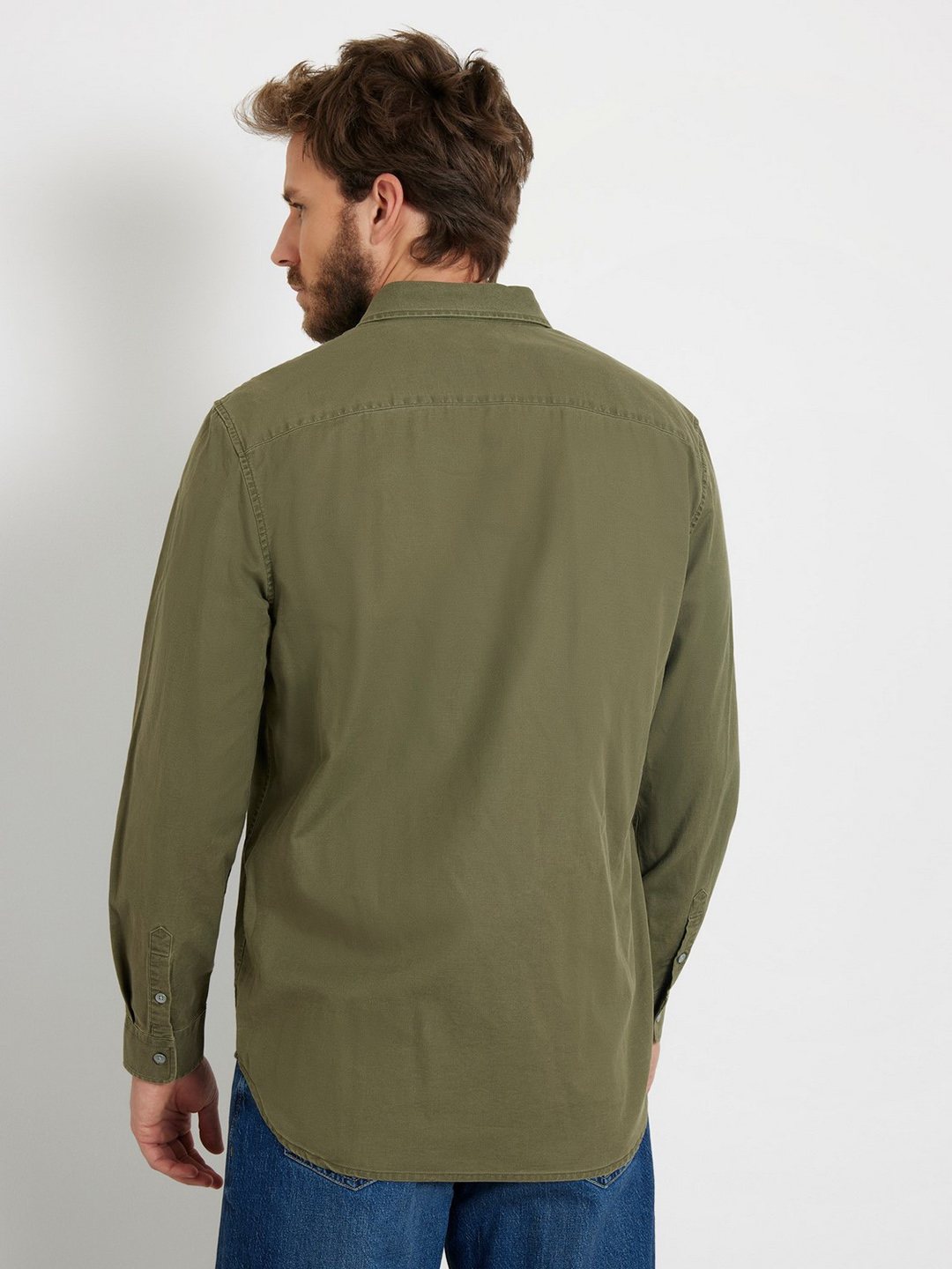Elevate your wardrobe with our twill pigment coated shirt in a sophisticated olive hue. Designed for the modern man, this comfort fit shirt offers a perfect blend of style and ease. Crafted from a premium cotton blend fabric, it ensures breathability and durability. The solid pattern adds a touch of elegance, while the full sleeves and spread collar provide a classic look. Featuring a button closure, this shirt is versatile for both casual and formal occasions. Experience unmatched comfort and timeless style with this essential piece.