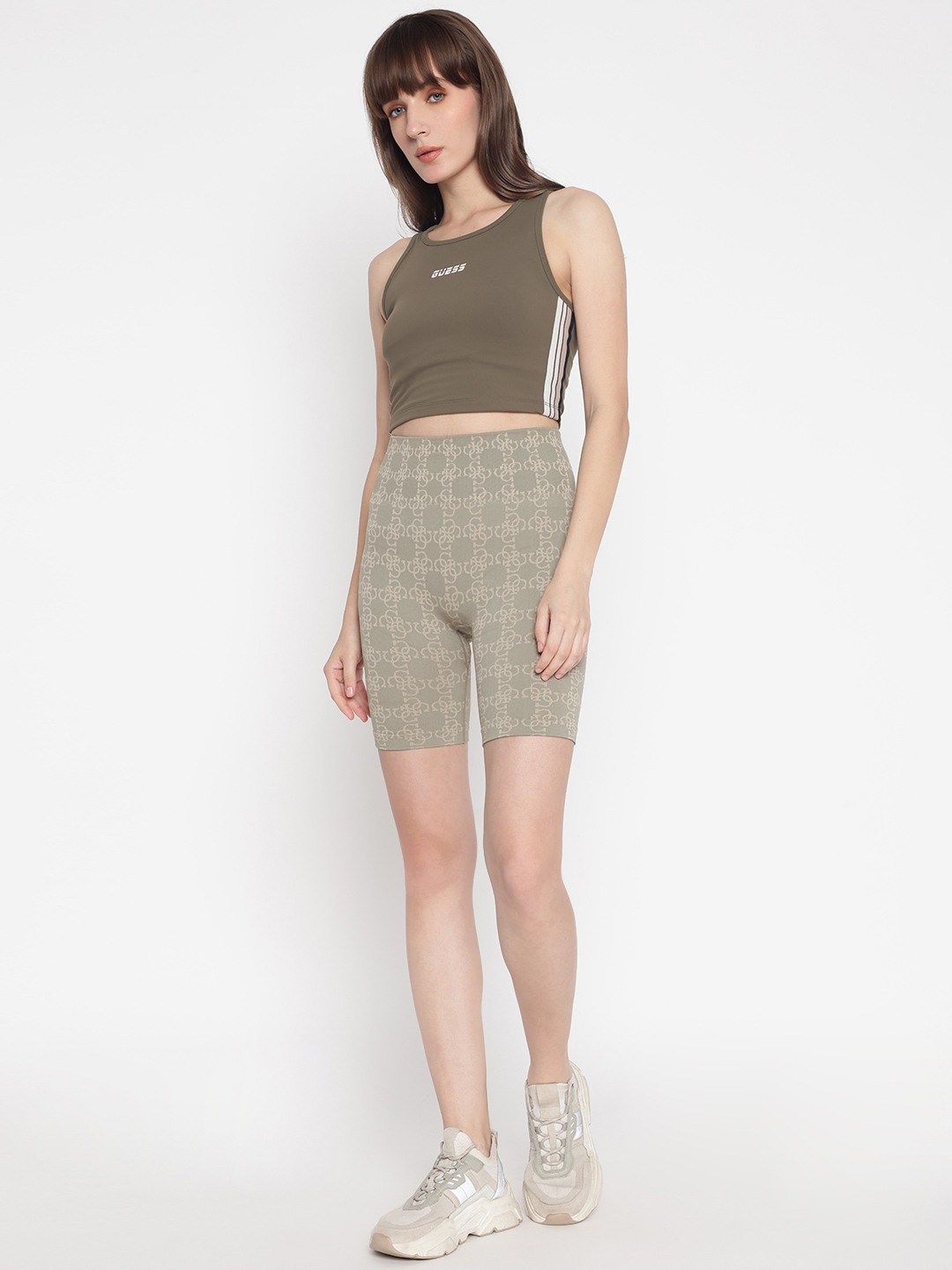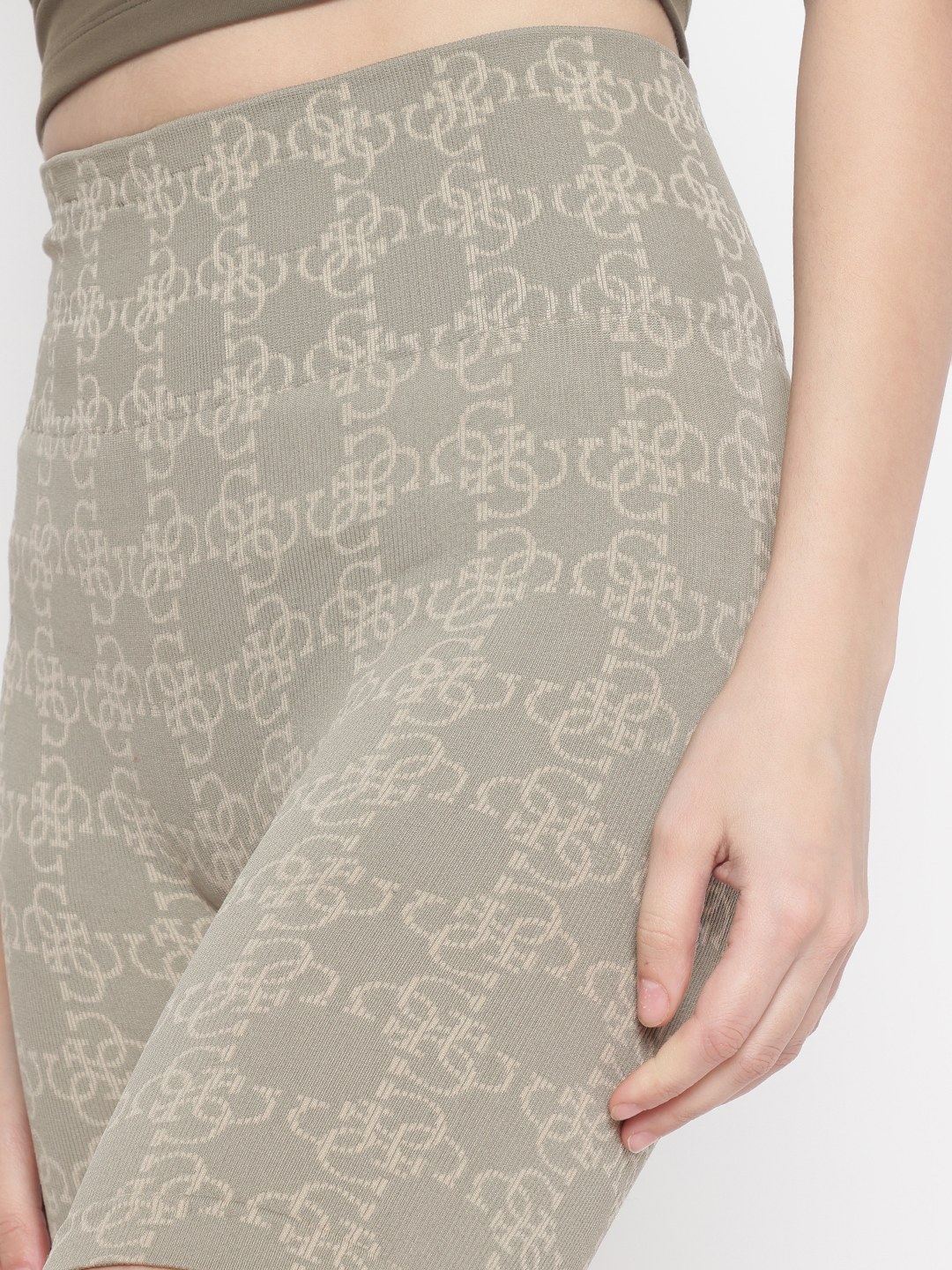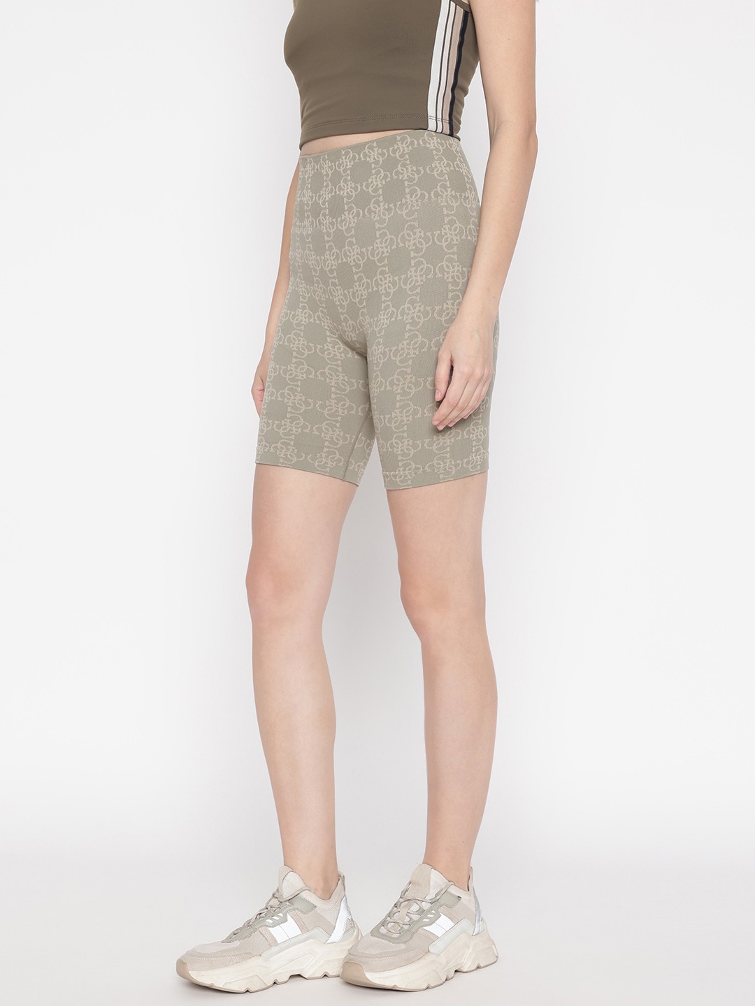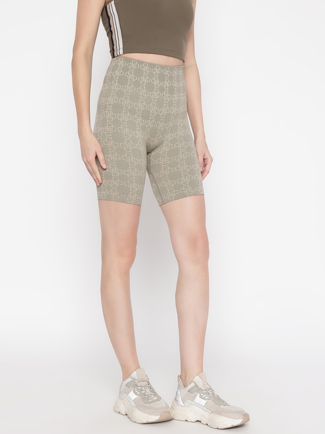 Olive Printed Above Knee Shorts